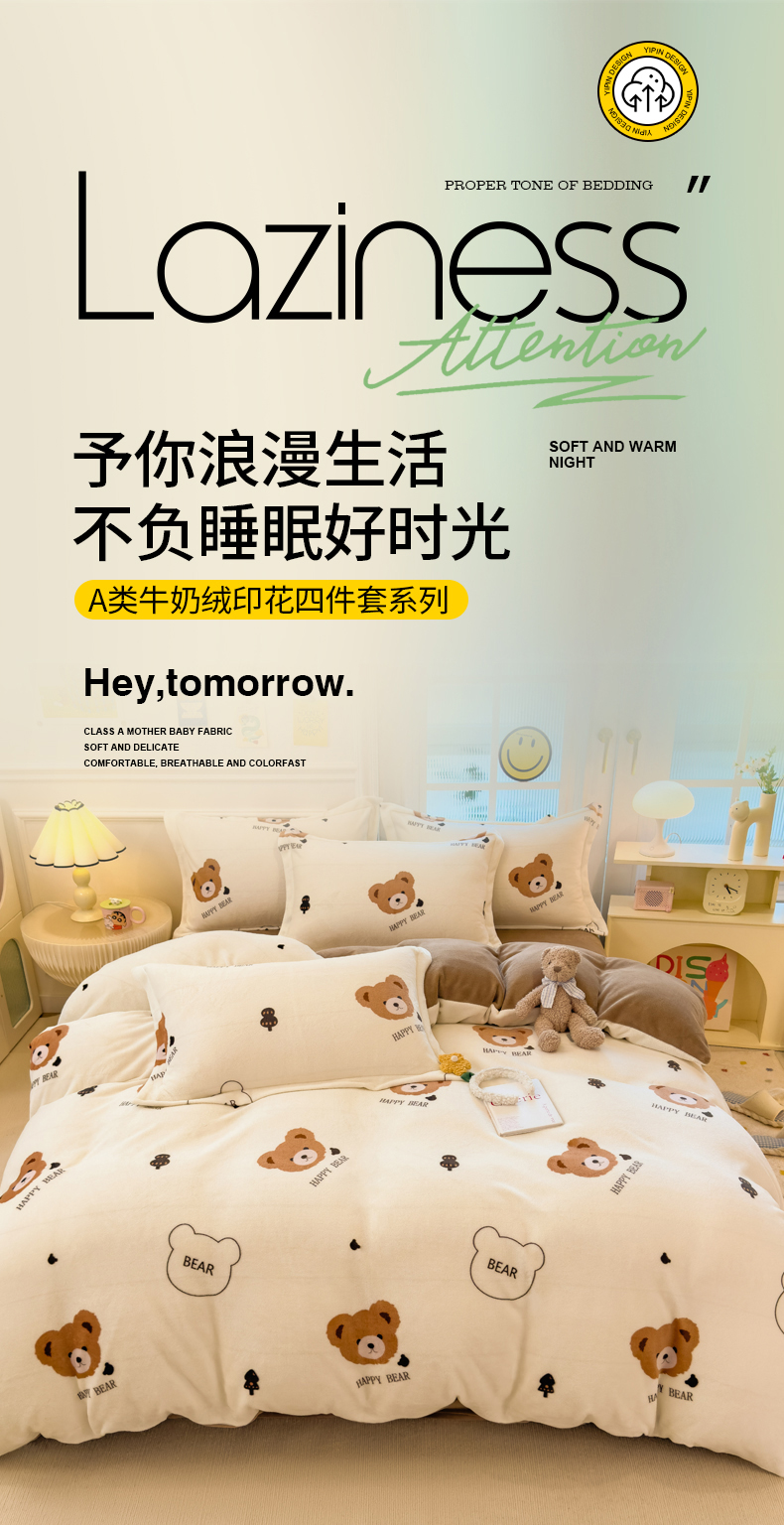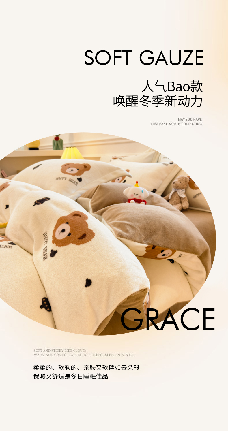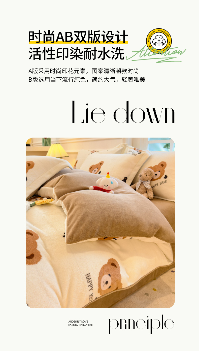 当前位置: 91家纺网 > 商品网购 > 床品套件 > 四件套 > 牛奶绒四件套 > 丝羽坊 2025新款200克加厚小清新牛奶绒床单款 床笠款四件套 被套 呆萌熊