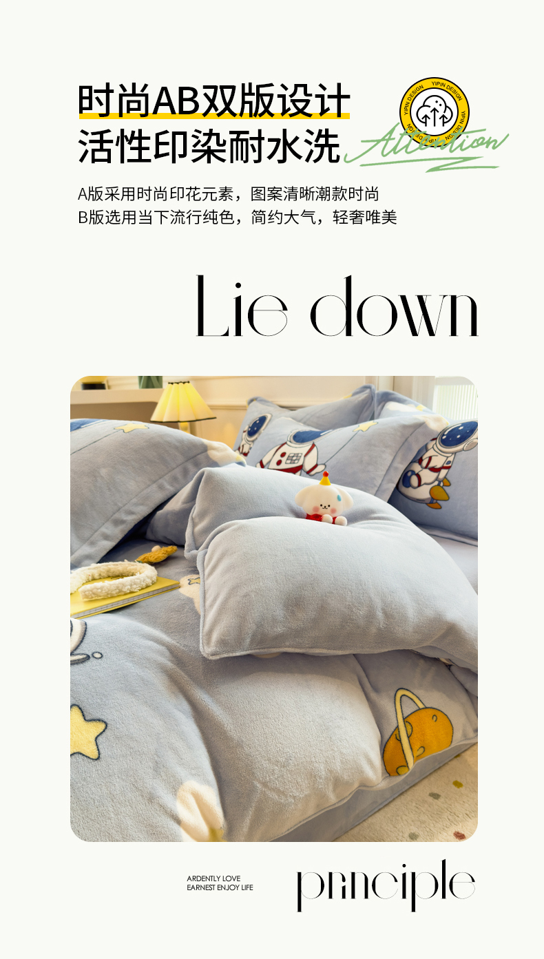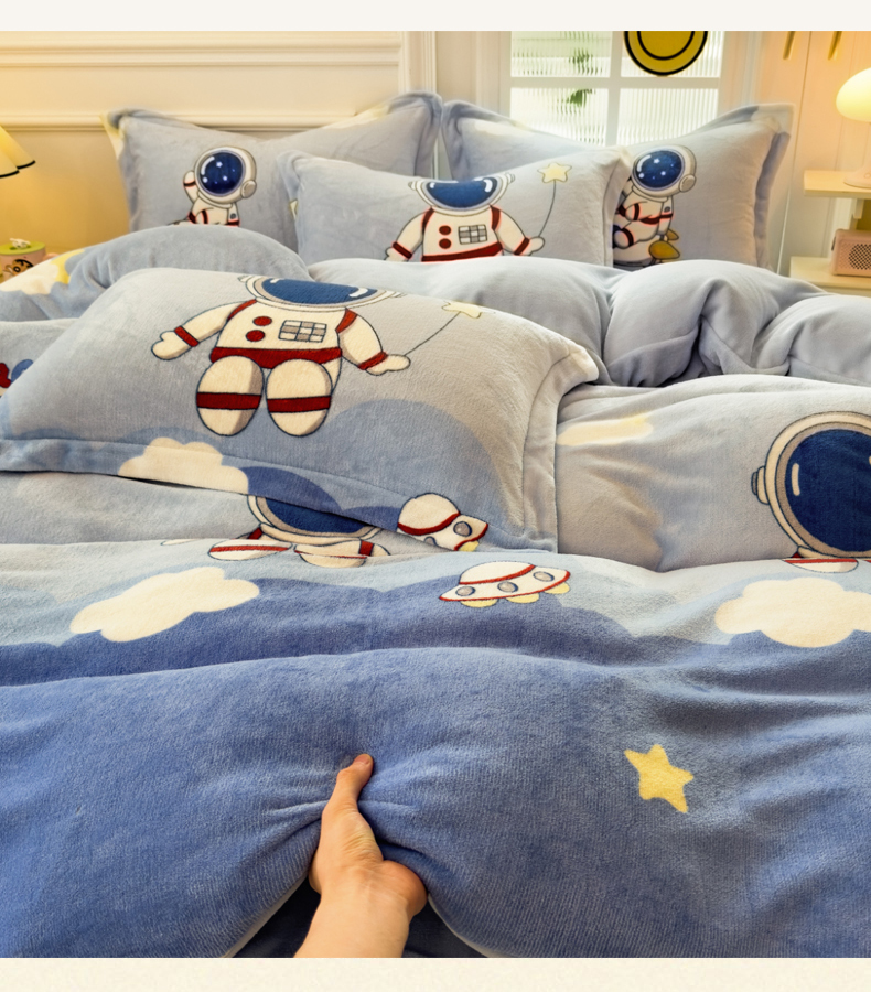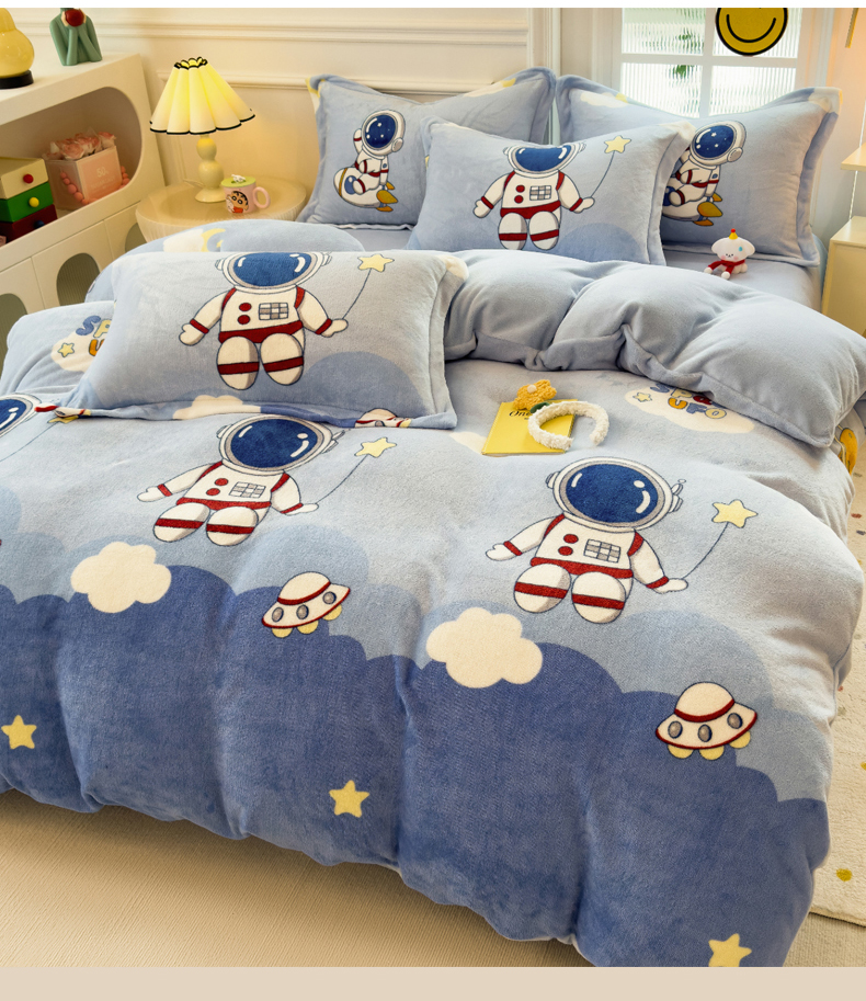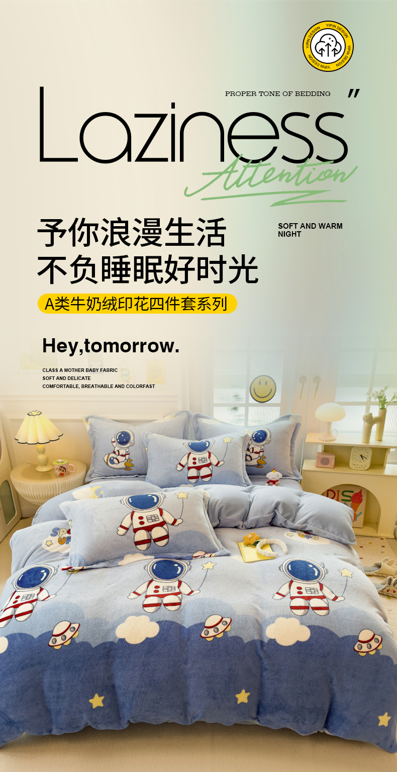 当前位置: 91家纺网 > 商品网购 > 床品套件 > 四件套 > 牛奶绒四件套 > 丝羽坊 2025新款200克加厚小清新牛奶绒床单款 床笠款四件套 被套 太空漫步