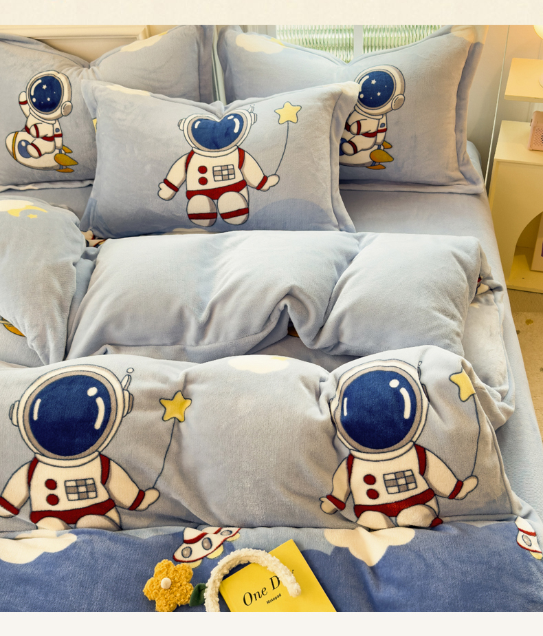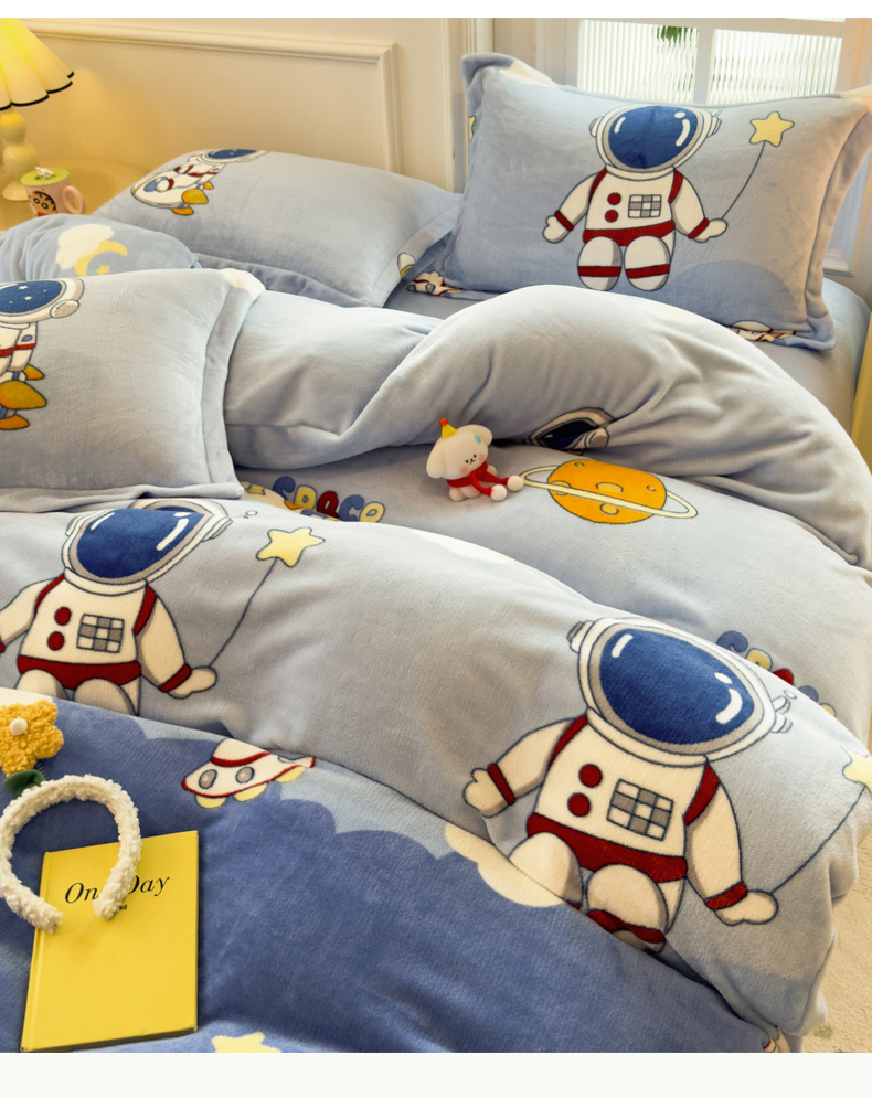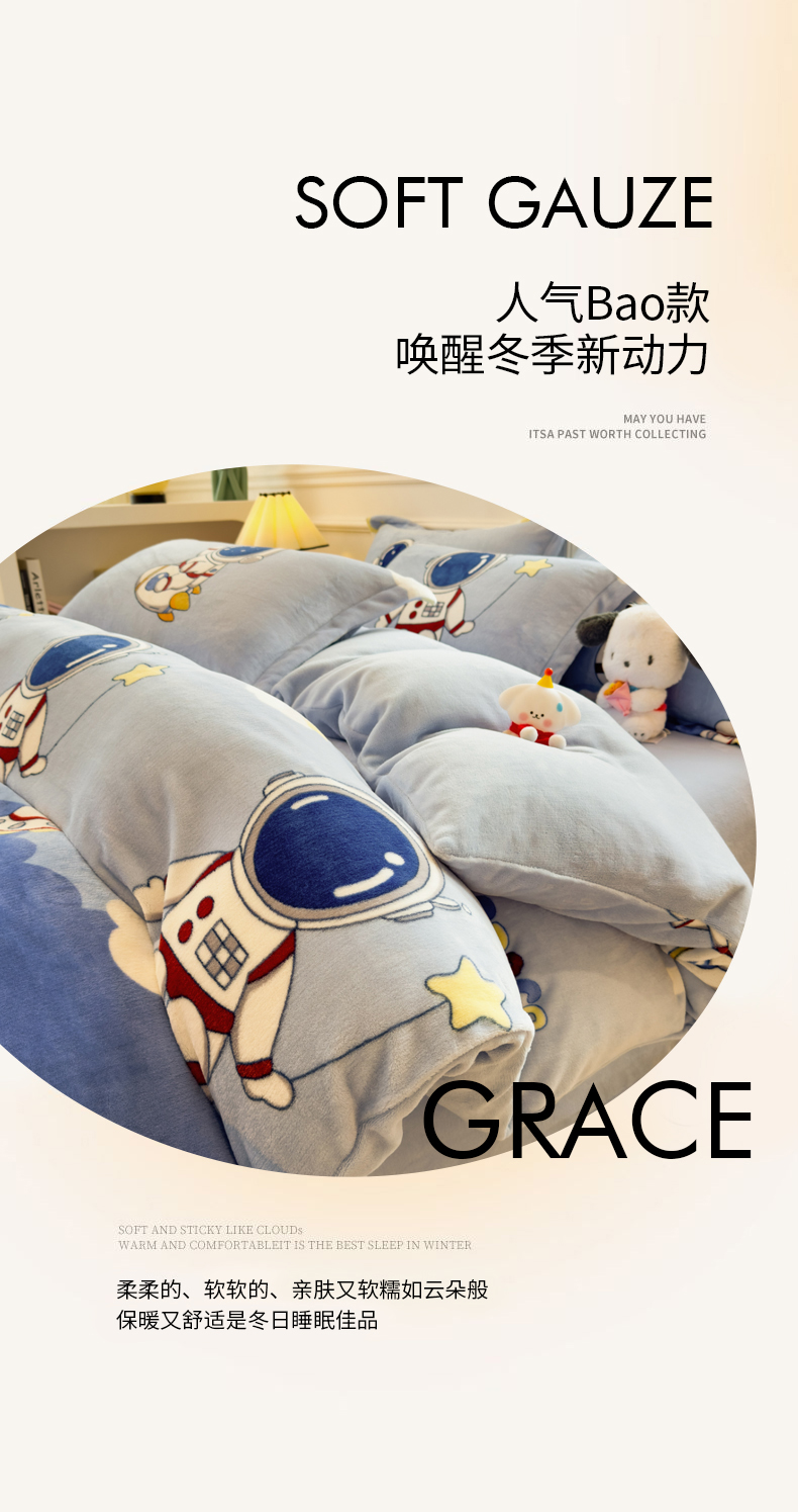 当前位置: 91家纺网 > 商品网购 > 床品套件 > 四件套 > 牛奶绒四件套 > 丝羽坊 2025新款200克加厚小清新牛奶绒床单款 床笠款四件套 被套 太空漫步