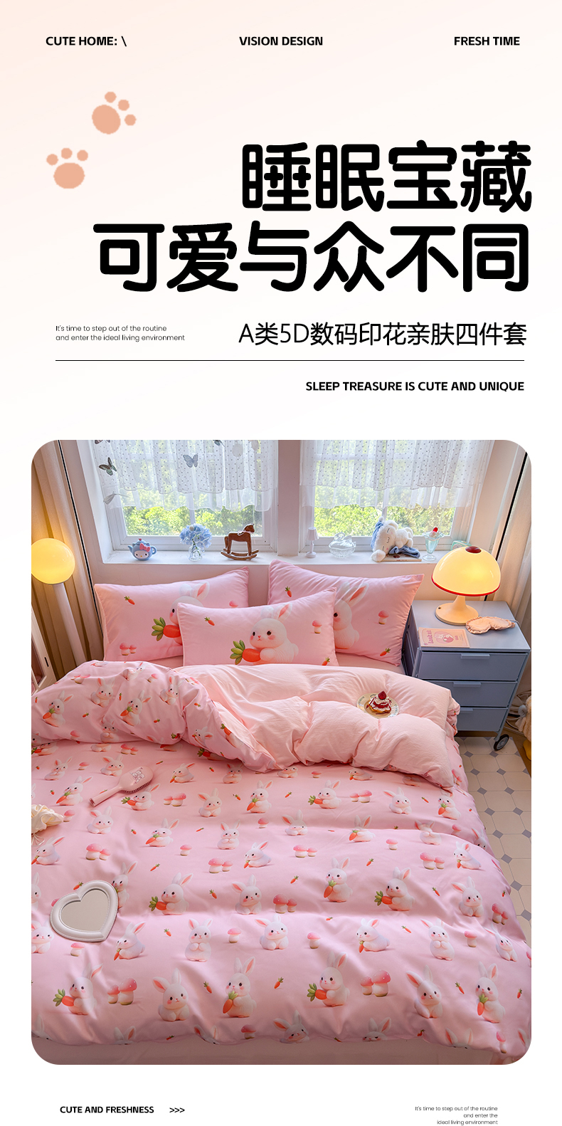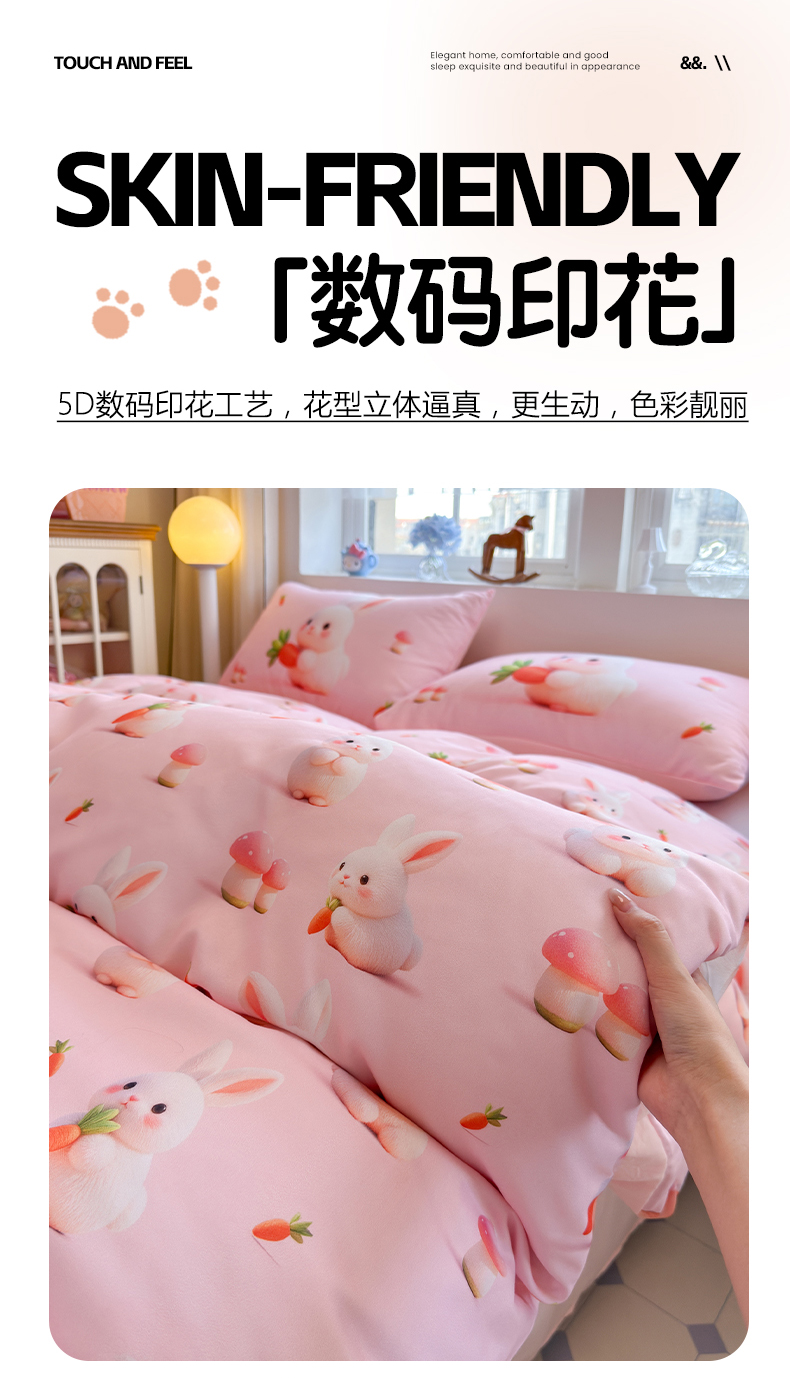 当前位置: 91家纺网 > 商品网购 > 床品套件 > 四件套 > 其它四件套 > 优卡迪家纺馆 2025新款110克5D数码印花四件套 萝卜小兔