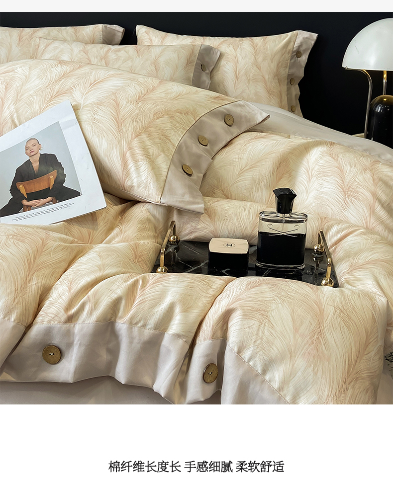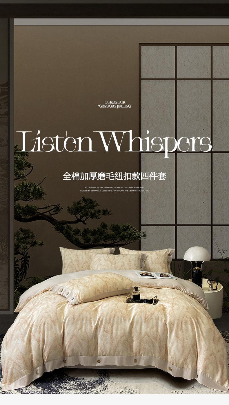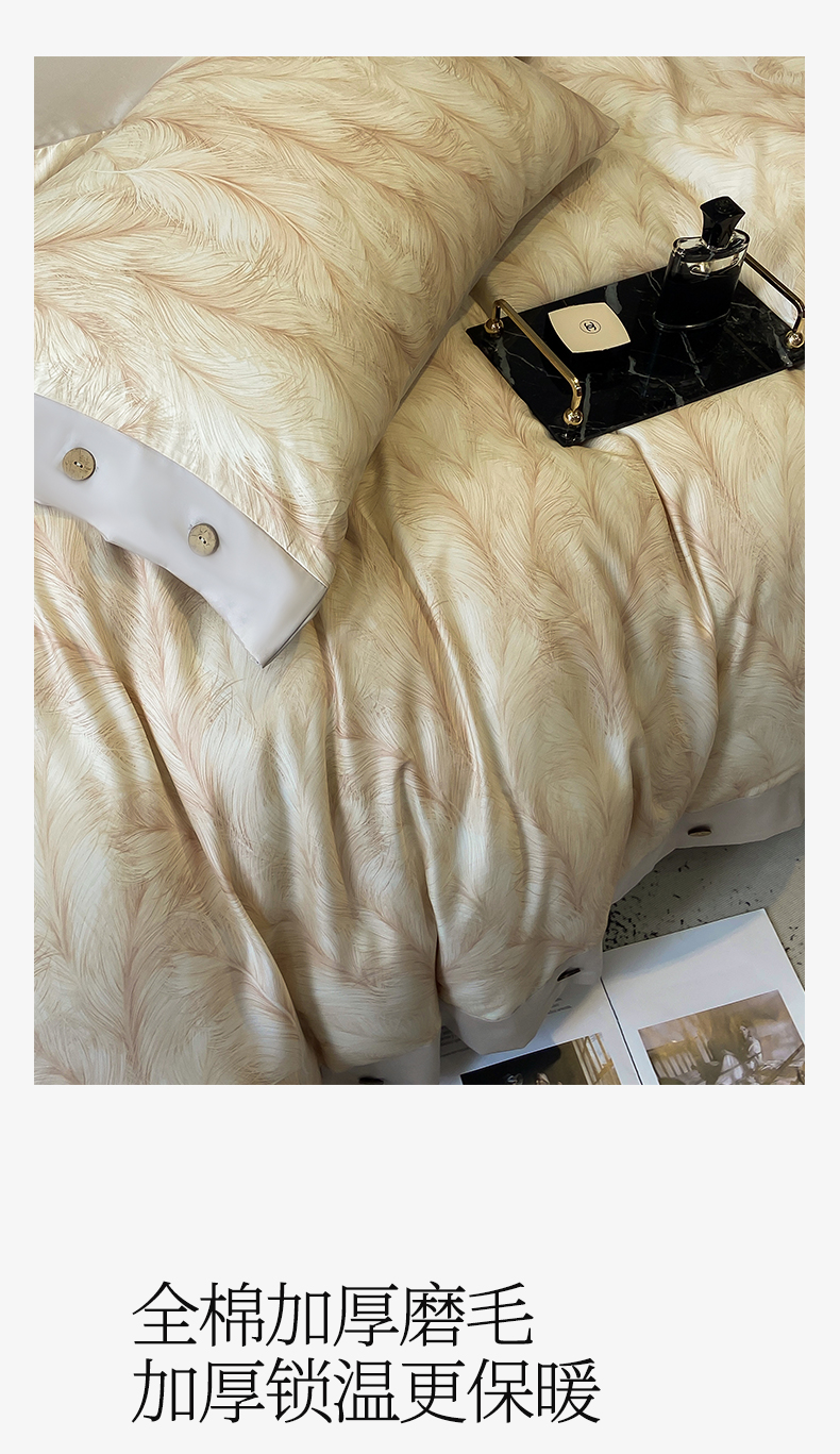 麦田家纺 2025新款全棉纯棉轻奢加厚磨毛纽扣款四件套 云裳