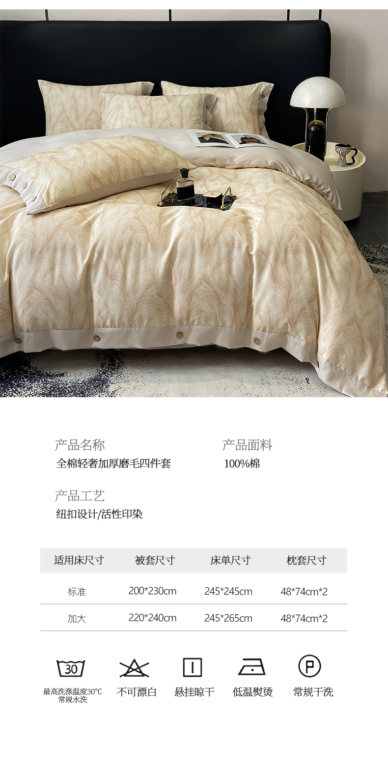 商品名称:麦田家纺 2025新款全棉纯棉轻奢加厚磨毛纽扣款四件套 云裳
