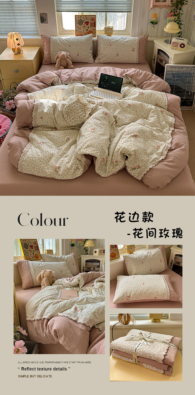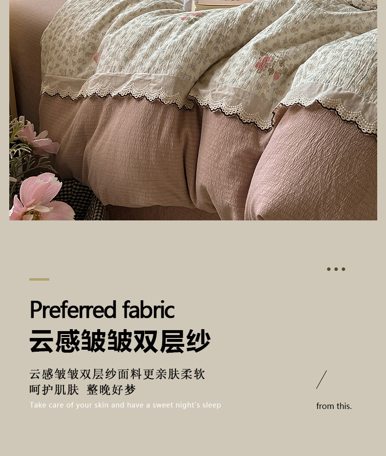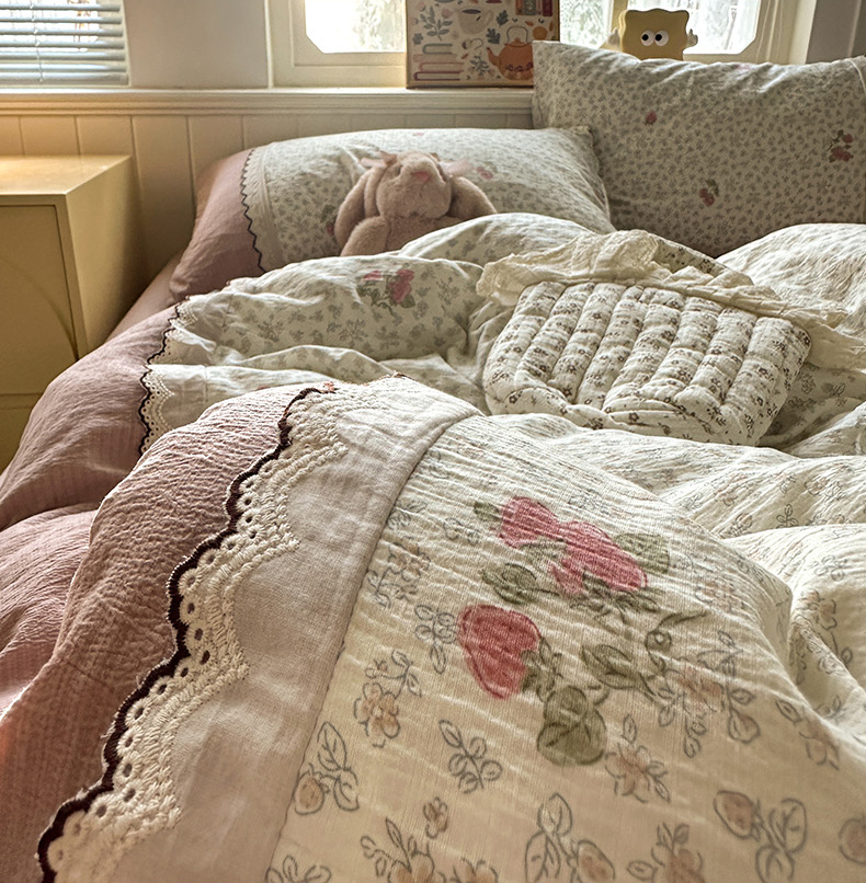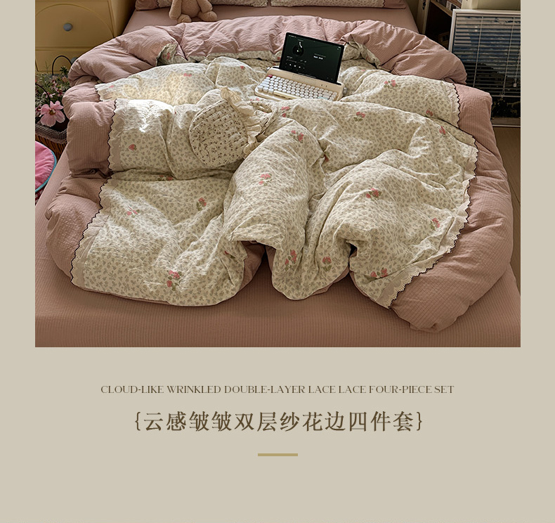 当前位置: 91家纺网 > 商品网购 > 床品套件 > 四件套 > 全棉普通四件套 > 水墨江南 2025新款云感皱皱纱全棉花边四件套场景一 花边款-花间玫瑰