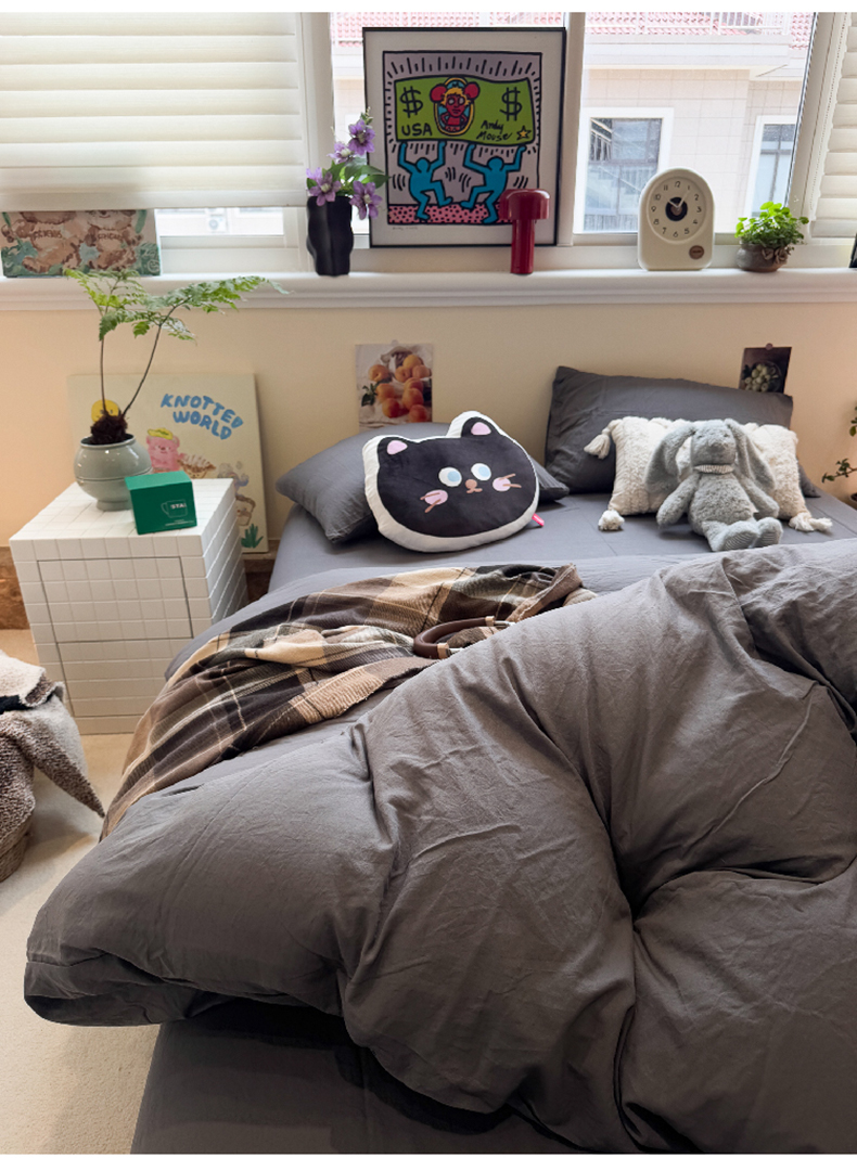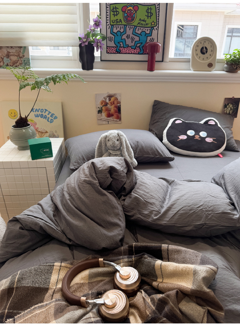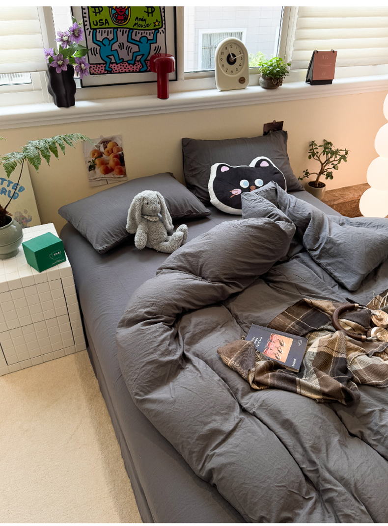 当前位置: 91家纺网 > 商品网购 > 床品套件 > 四件套 > 磨毛活性四件套 > 水墨江南 2025新款亲肤磨毛水洗棉纯色四件套 墨灰