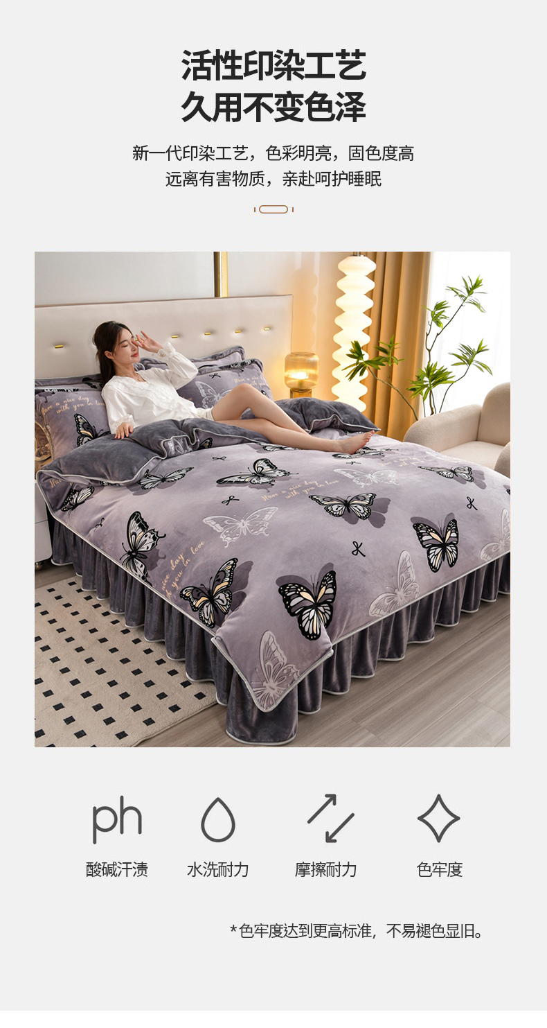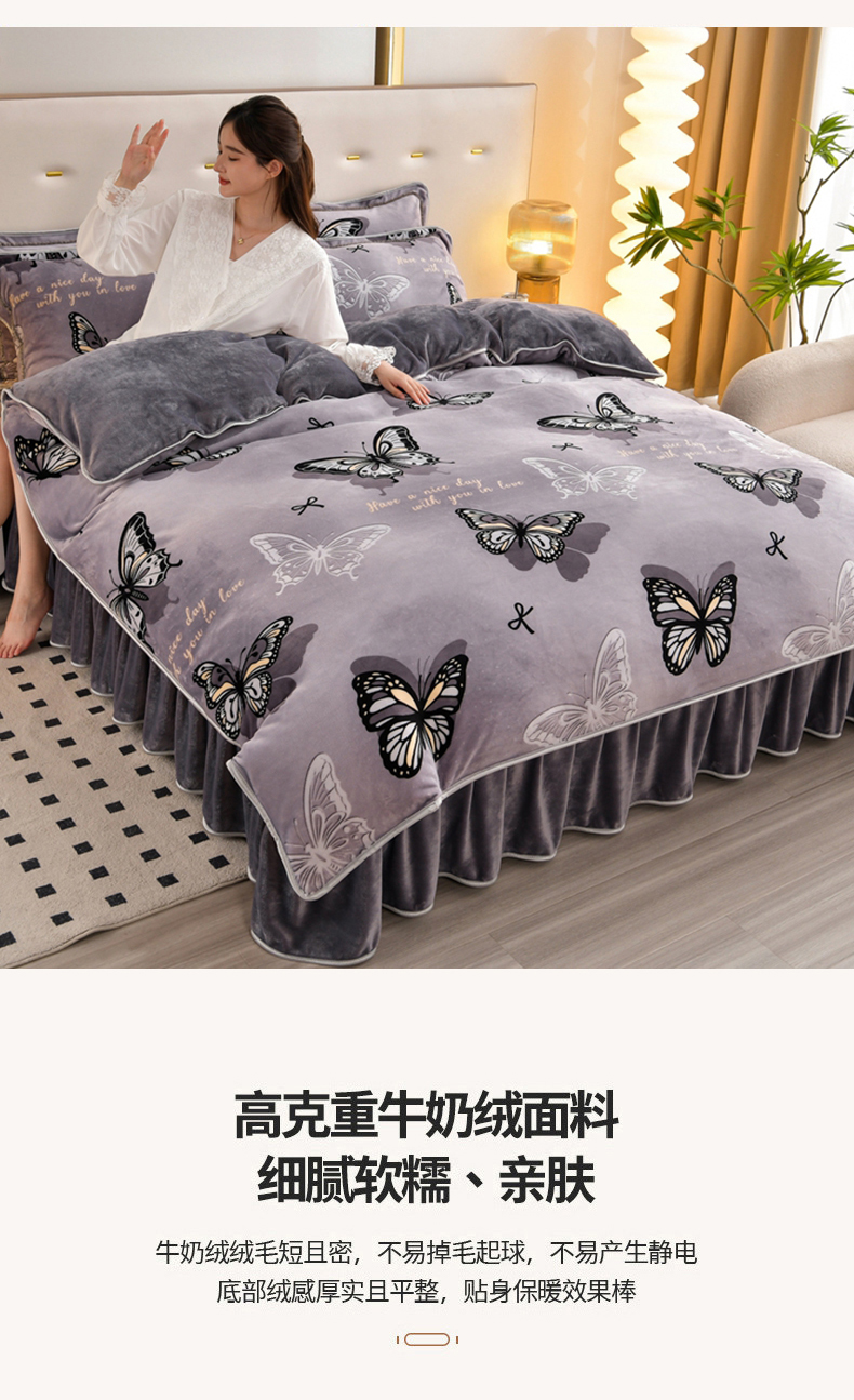 商品名称:芯诗曼 2025直播高克重牛奶绒四件套法莱绒金貂貂狐保暖单被套 梦蝶