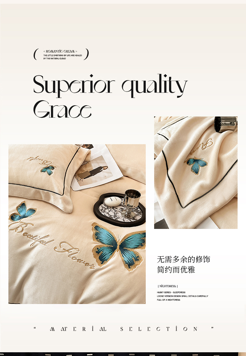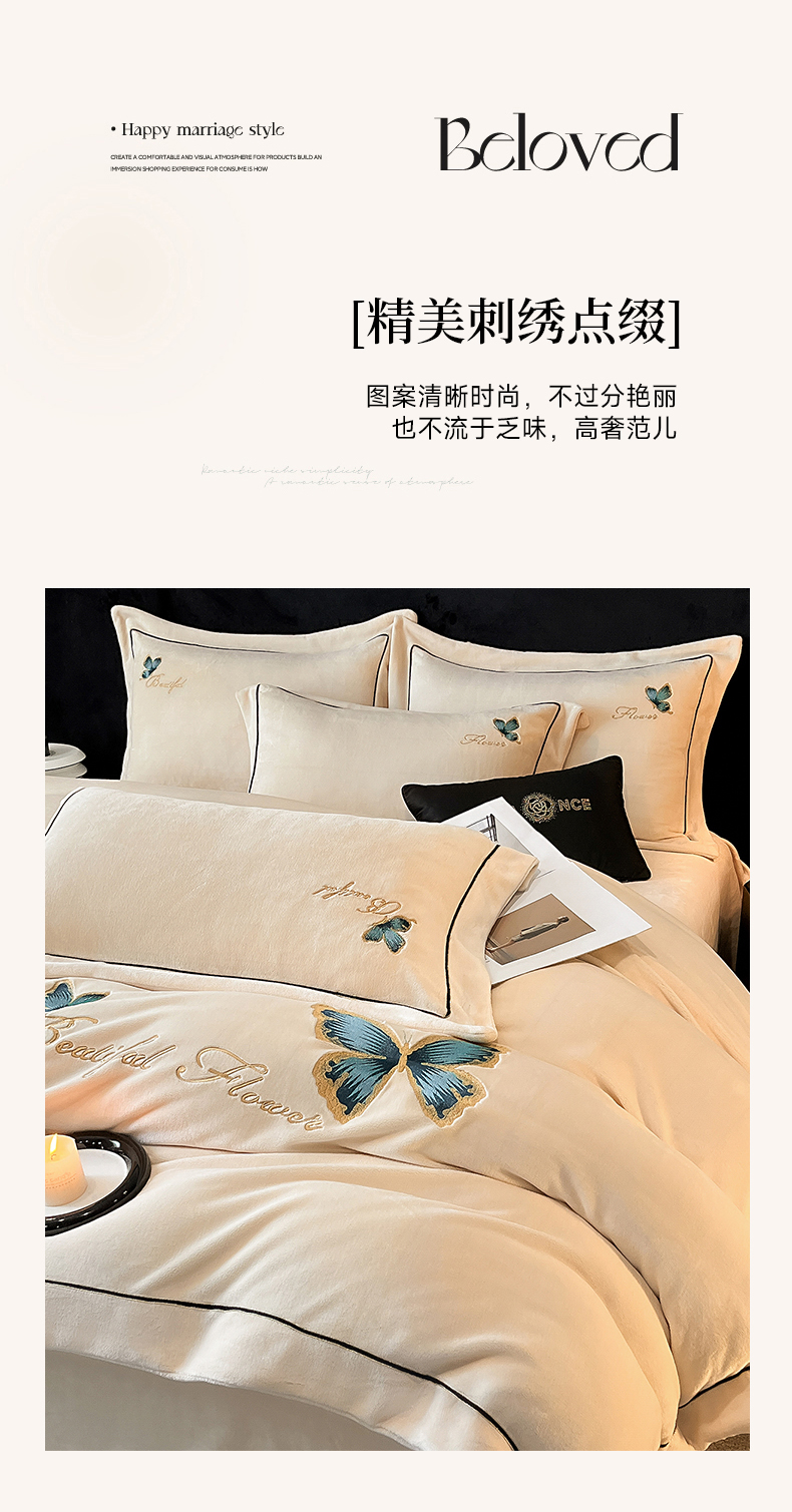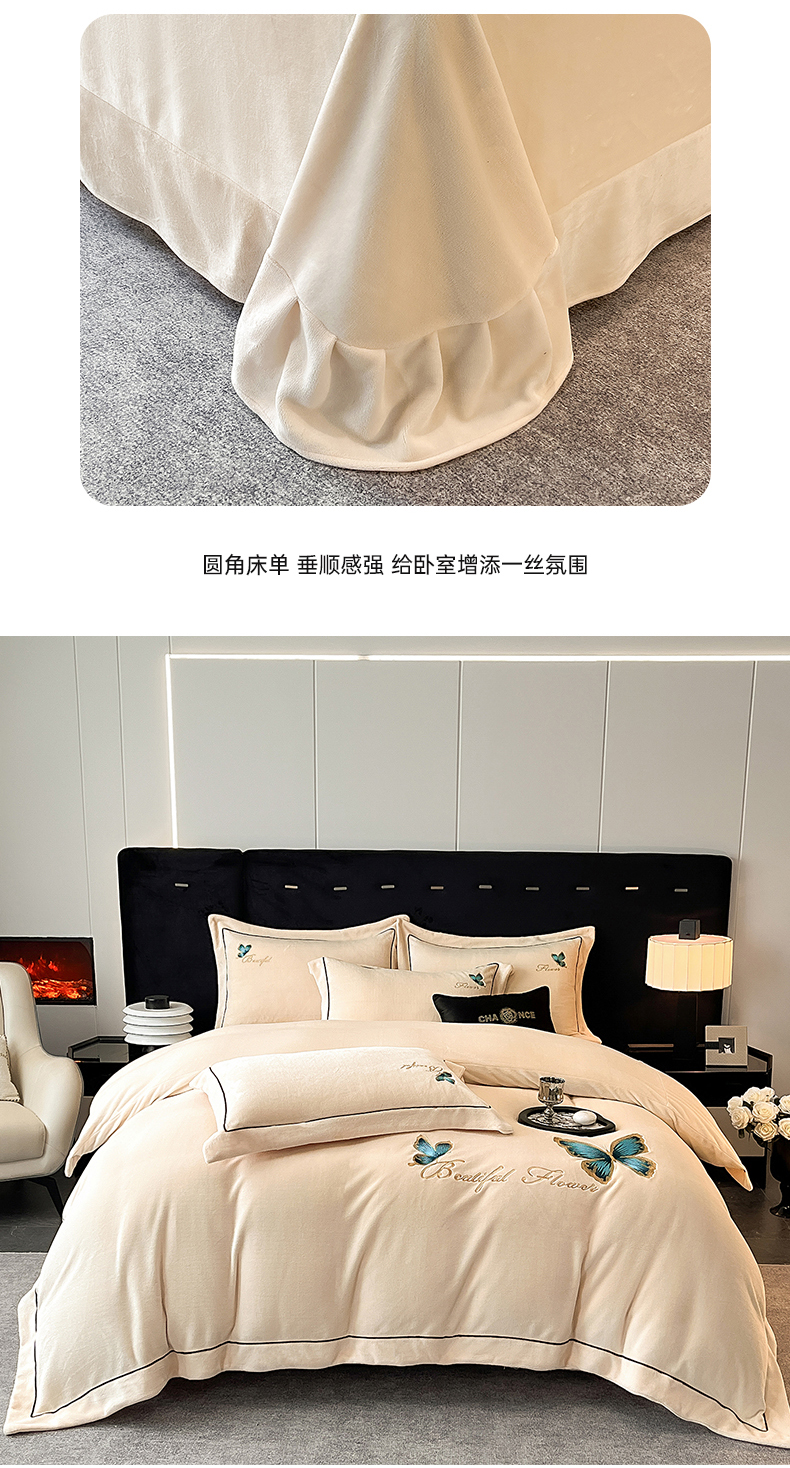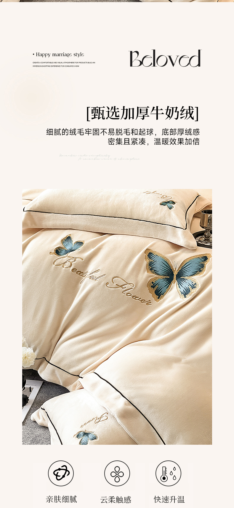妮恒美家纺 2025新款牛奶绒刺绣四件套唯美蝴蝶结系列 唯美-白奶咖