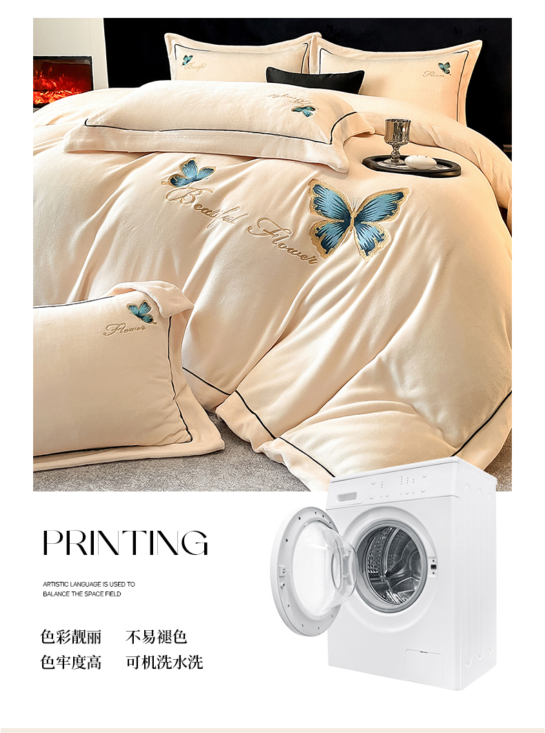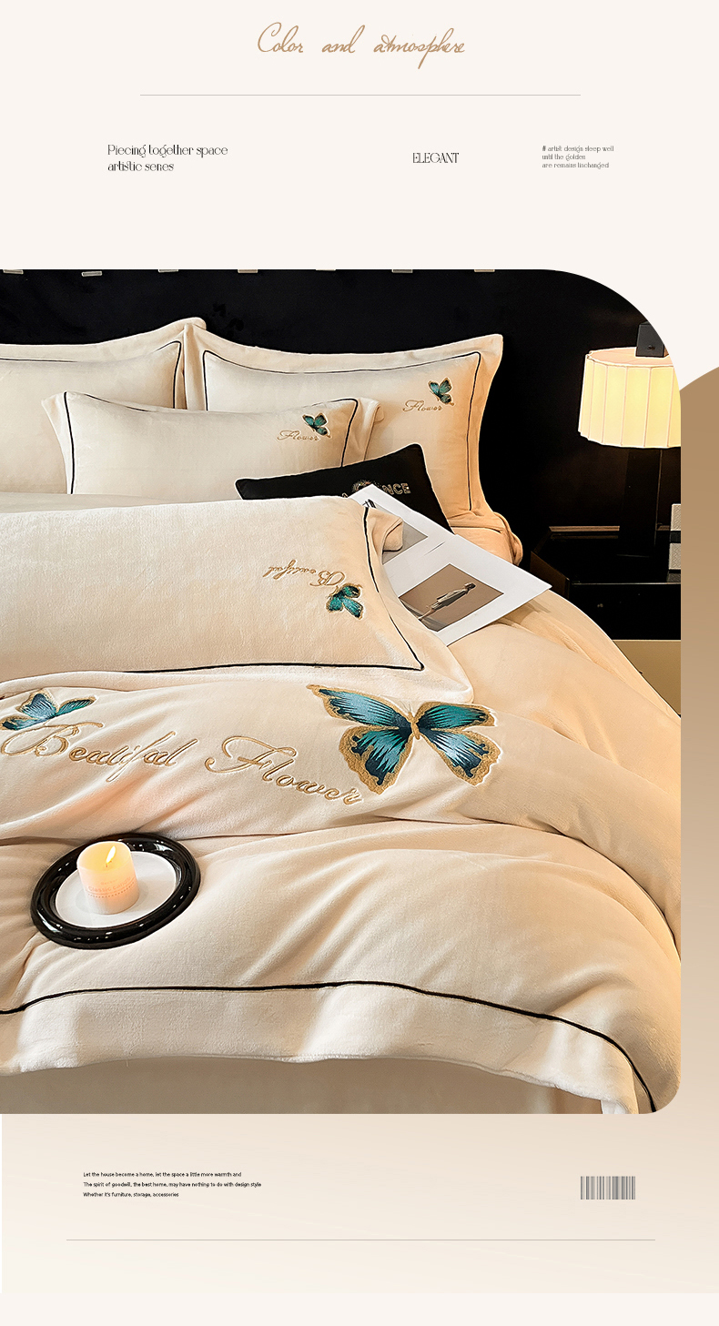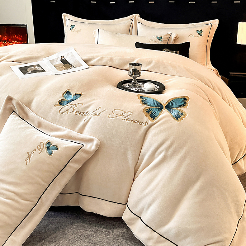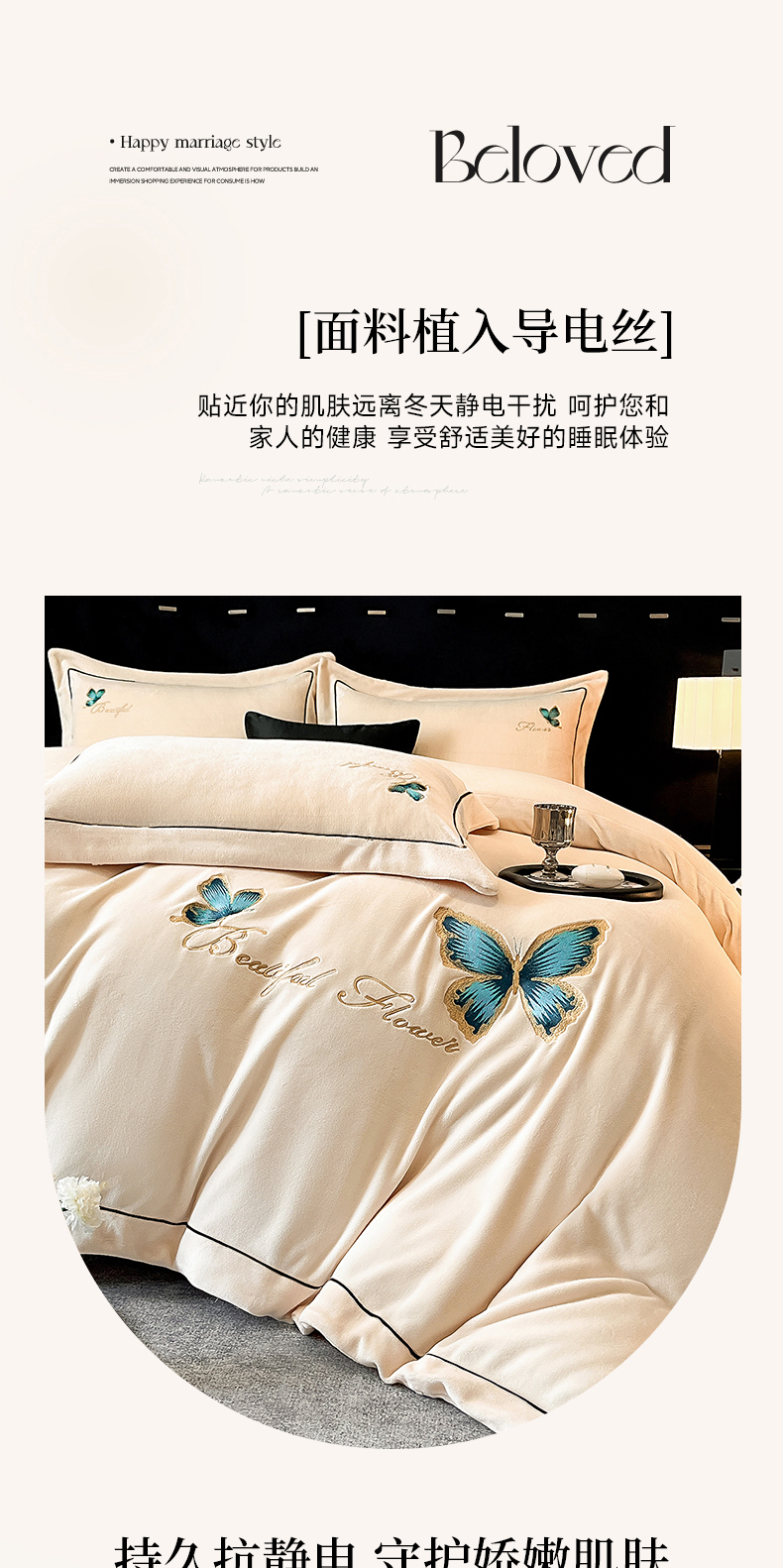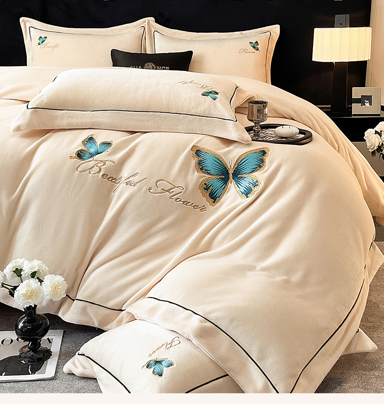 妮恒美家纺 2025新款牛奶绒刺绣四件套唯美蝴蝶结系列 唯美-白奶咖