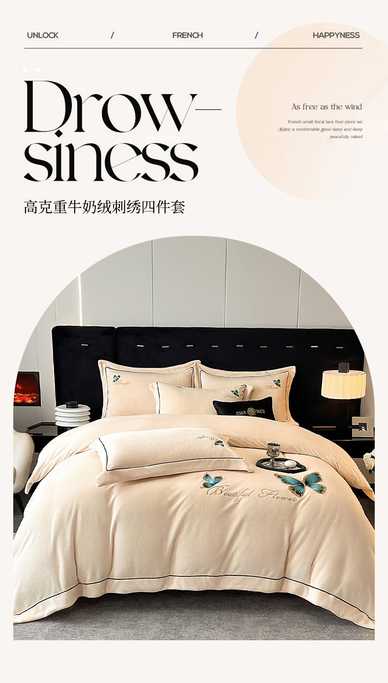 (总)妮恒美家纺 2025新款牛奶绒刺绣四件套-简爱系列,简爱-白奶咖+焦糖,简爱-藏蓝,简爱-豆沙+浅灰,简爱-枫林蓝+宾利蓝,简爱-高级卡,简爱-火山灰+安哥拉红,简爱-焦糖+浅灰,简爱-暖心紫,简爱-浅蓝+故宫蓝,简爱-绅士白+浅灰,简爱-石英灰+浅灰,简爱-雾蓝+浅灰,简爱-陨石拿铁+藏蓝