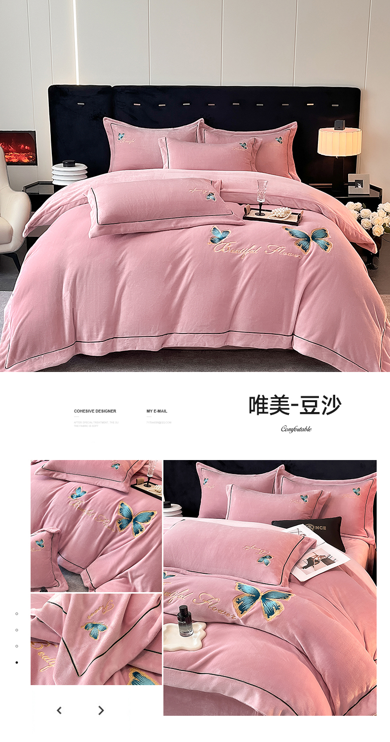 (总)妮恒美家纺 2025新款牛奶绒刺绣四件套唯美蝴蝶结系列,唯美-白奶咖,唯美-豆沙,唯美-富世红,唯美-焦糖橘,唯美-梦幻紫,唯美-浅灰绿,唯美-相约拿铁,唯美-元气绿