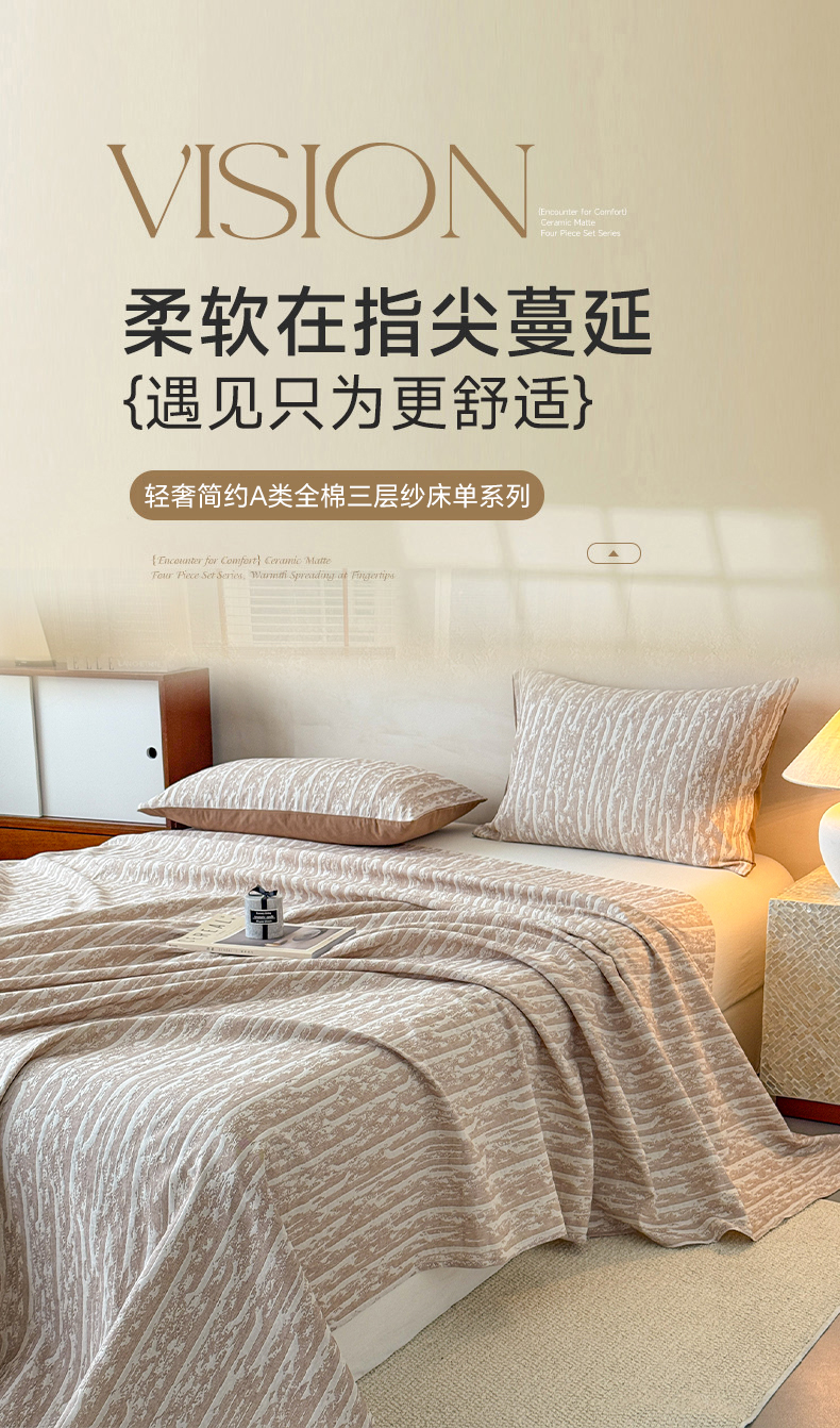 • 91家纺网 家纺一手货源 找家纺 眠博士 2025新款全棉纯棉三层纱单床单 床单单件 三层纱床单-流光卡其 91家纺网 家纺一手货源 找家纺 眠博士 2025新款全棉纯棉三层纱单床单 床单单件 三层纱床单-流光卡其