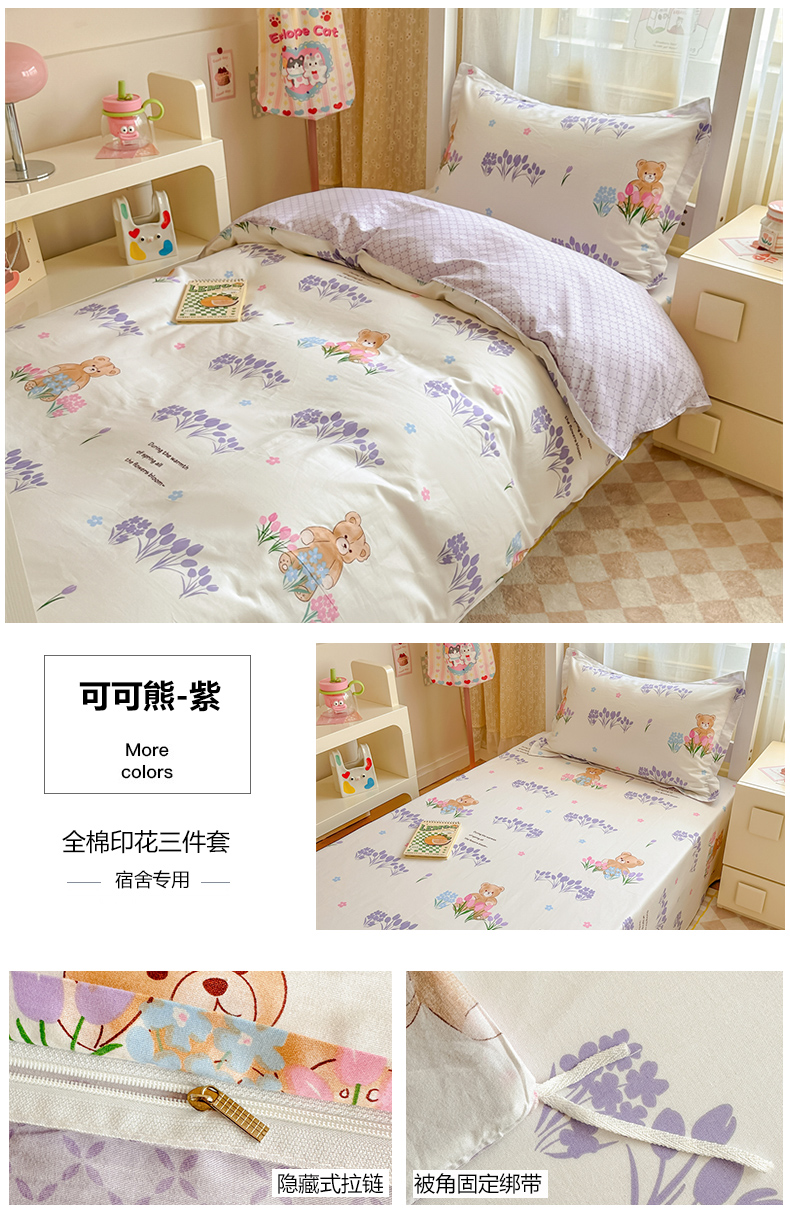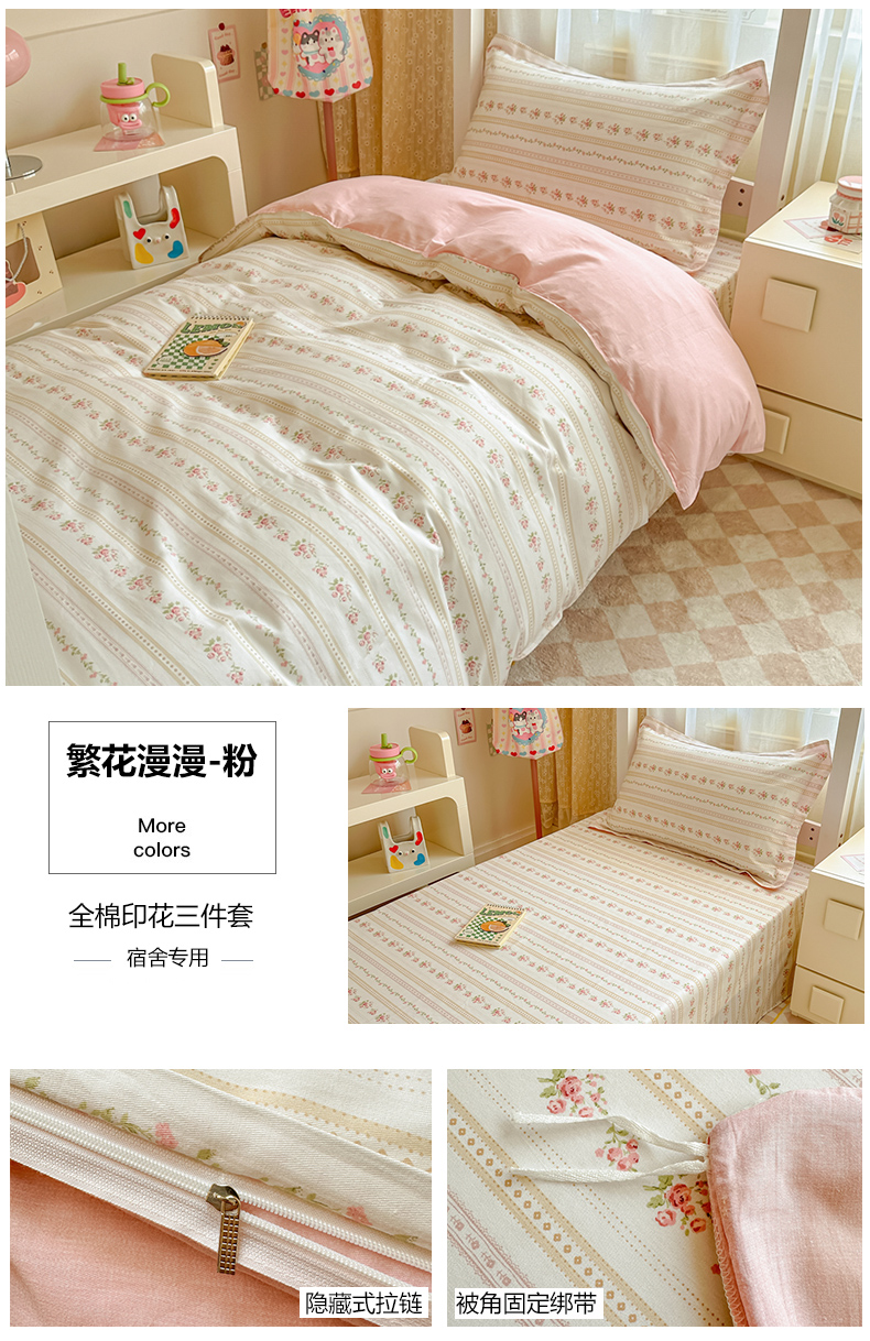 当前位置: 91家纺网 > 商品网购 > 床品套件 > 三件套 > 小叮当家纺仓储工厂店 2025新款舒适亲肤全棉纯棉斜纹印花学生三件套 小甜心