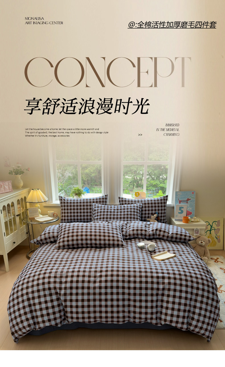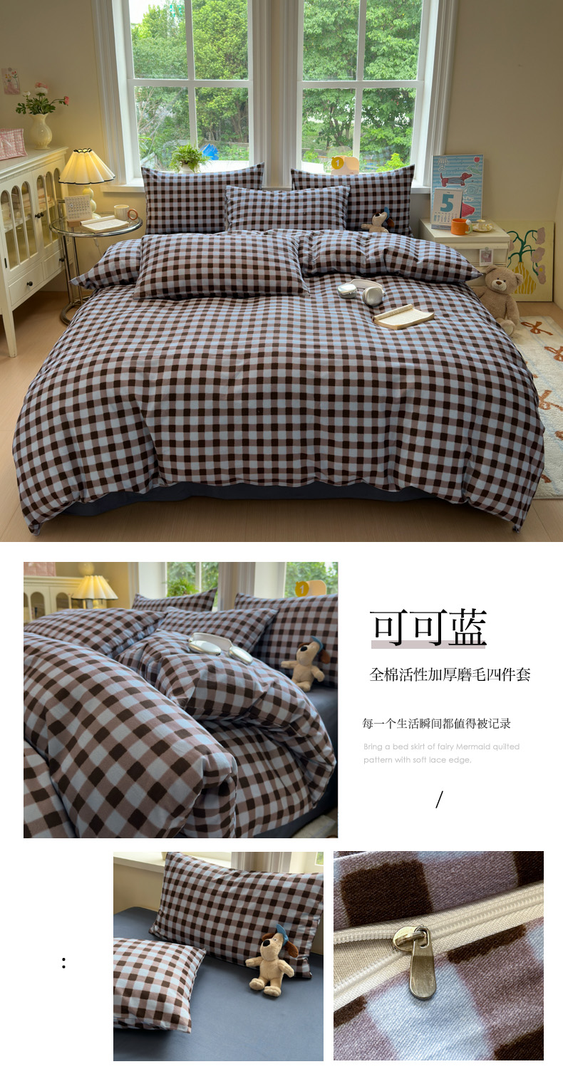当前位置: 91家纺网 > 商品网购 > 床品套件 > 四件套 > 普通磨毛四件套 > 如意朵 2025新款全棉纯棉磨毛四件套 可可-蓝