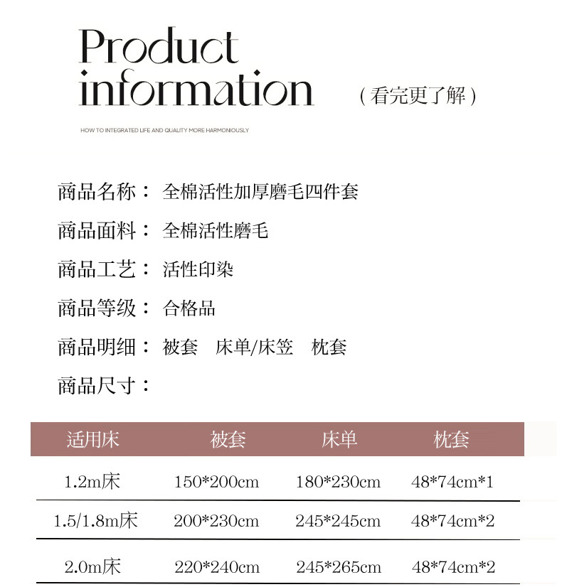 【床笠款】1.8四件套-被套220x240 | ¥140.00 |