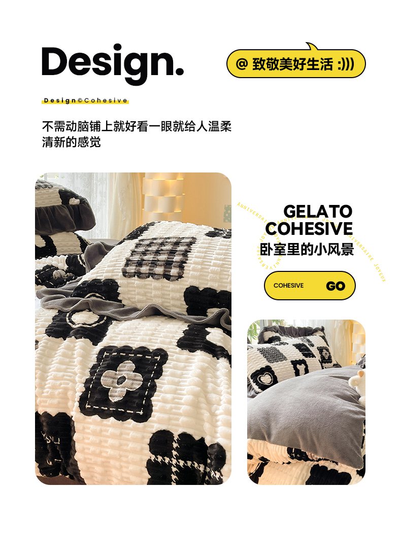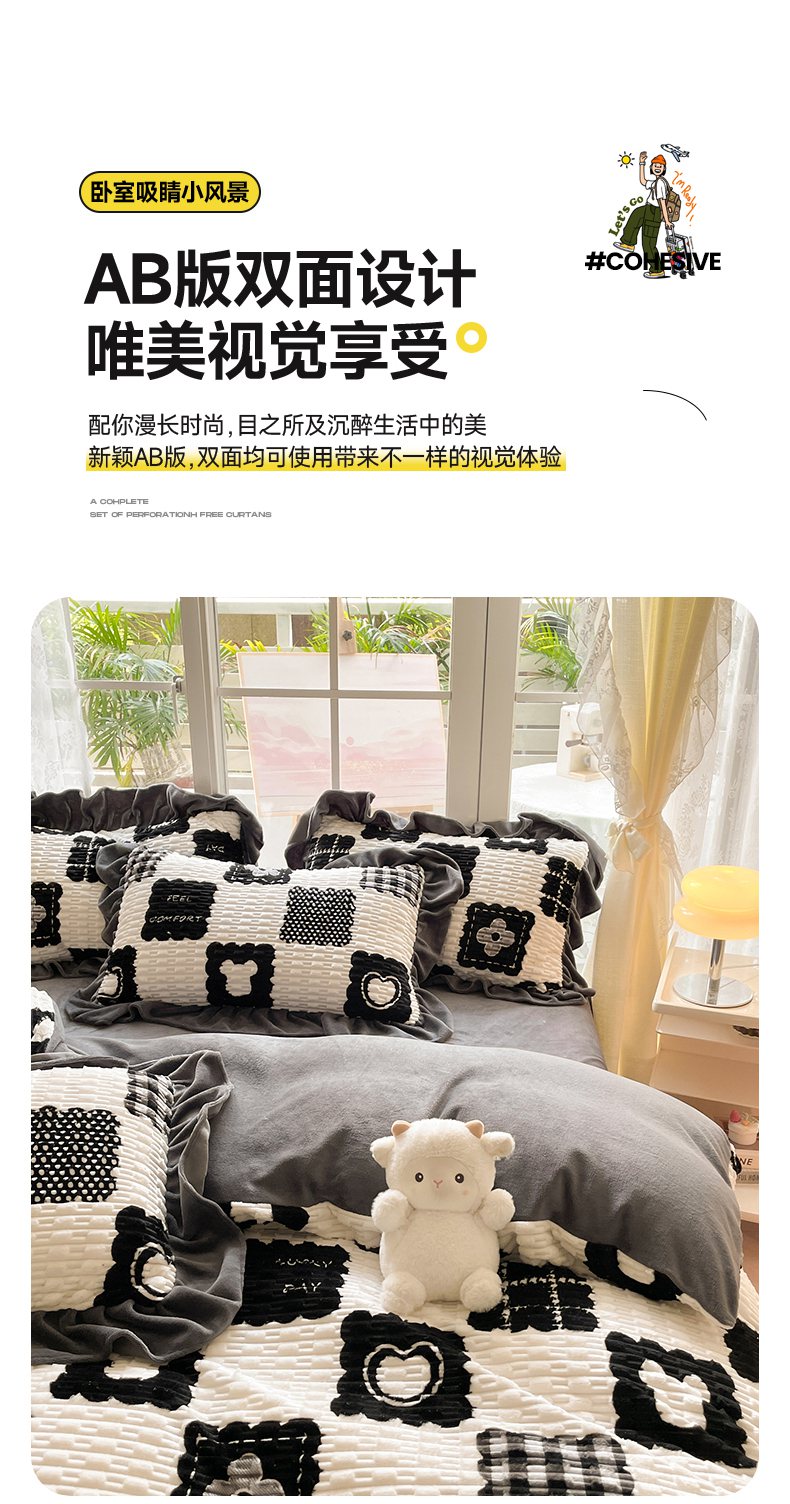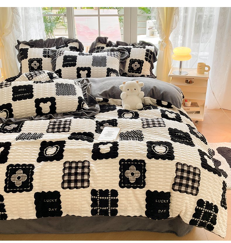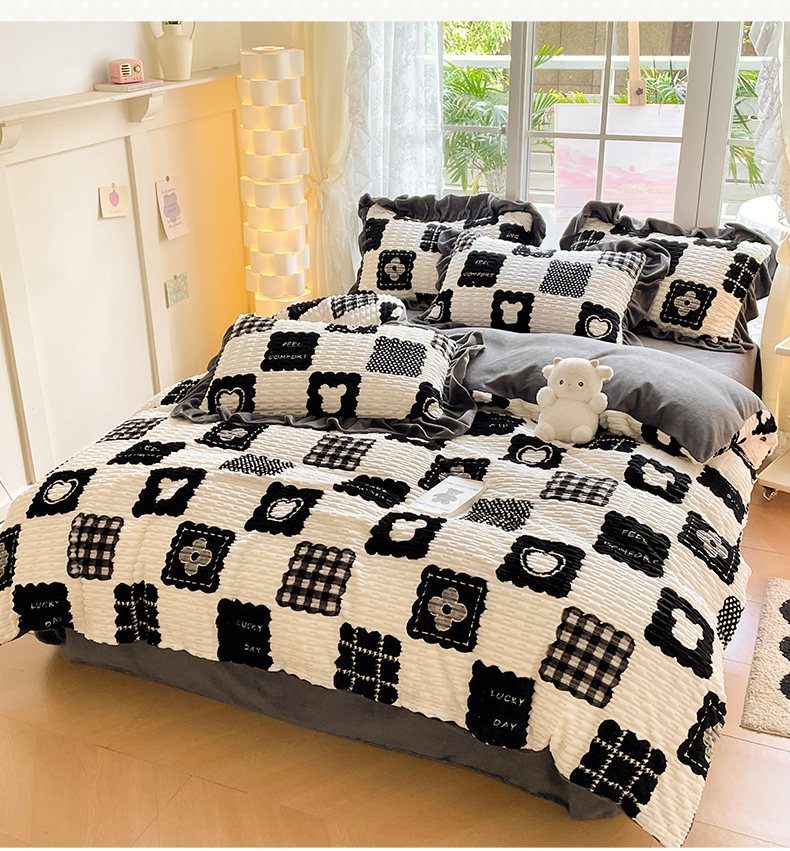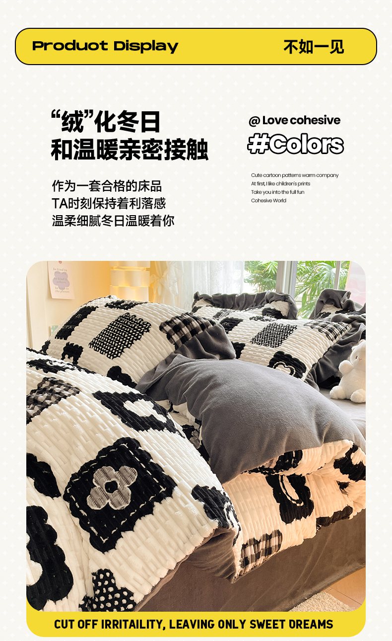 商品名称:摩妮卡 2025新款提花豆豆绒卡通印花牛奶绒四件套 柔伊