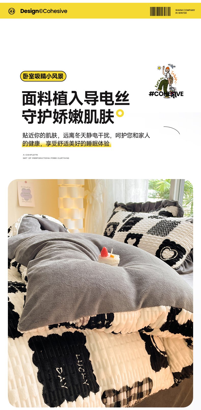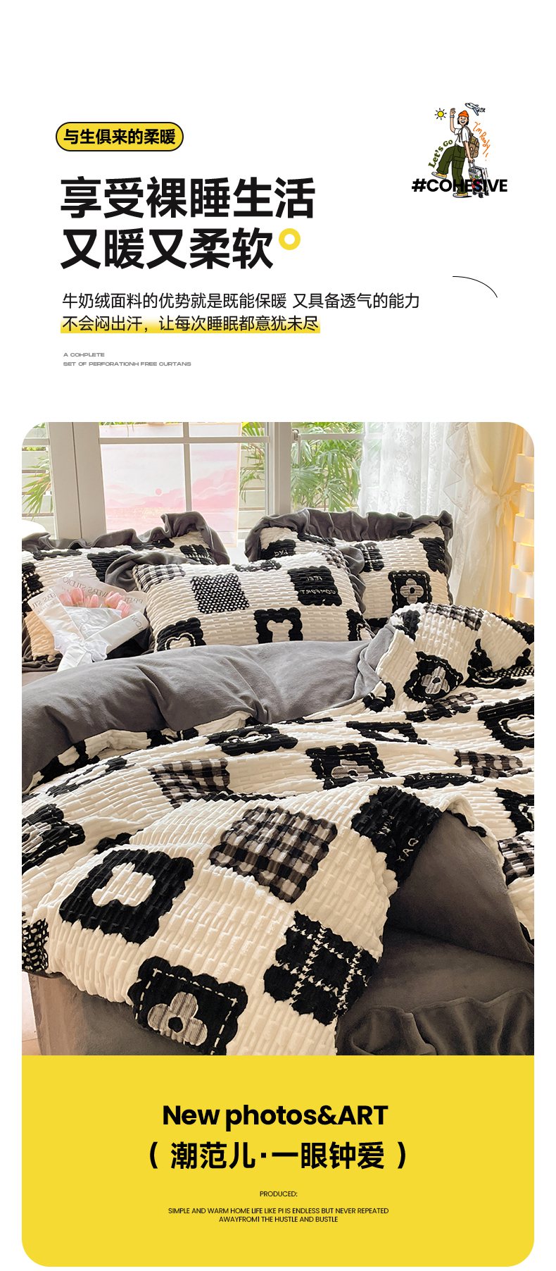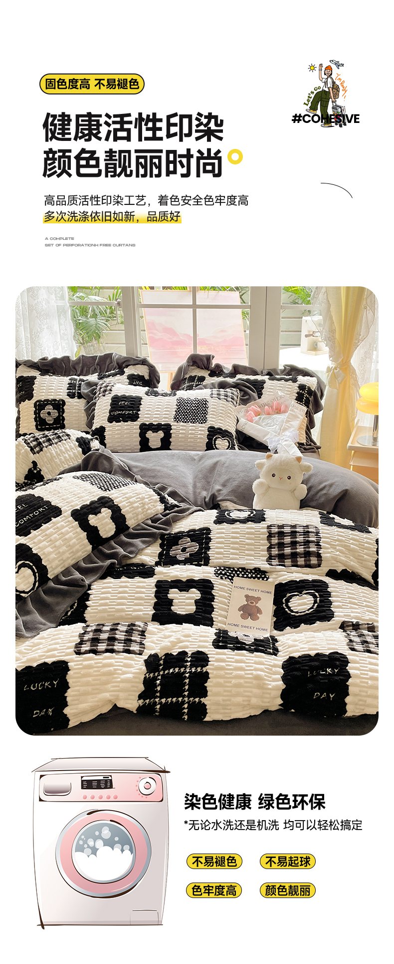 商品名称:摩妮卡 2025新款提花豆豆绒卡通印花牛奶绒四件套 柔伊