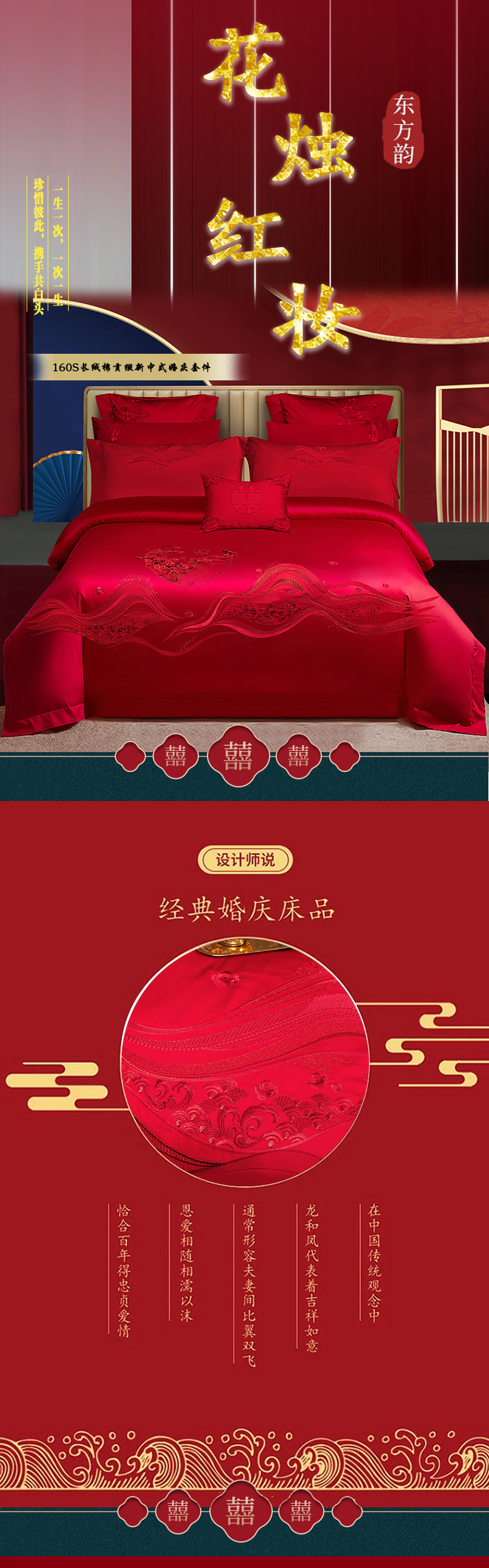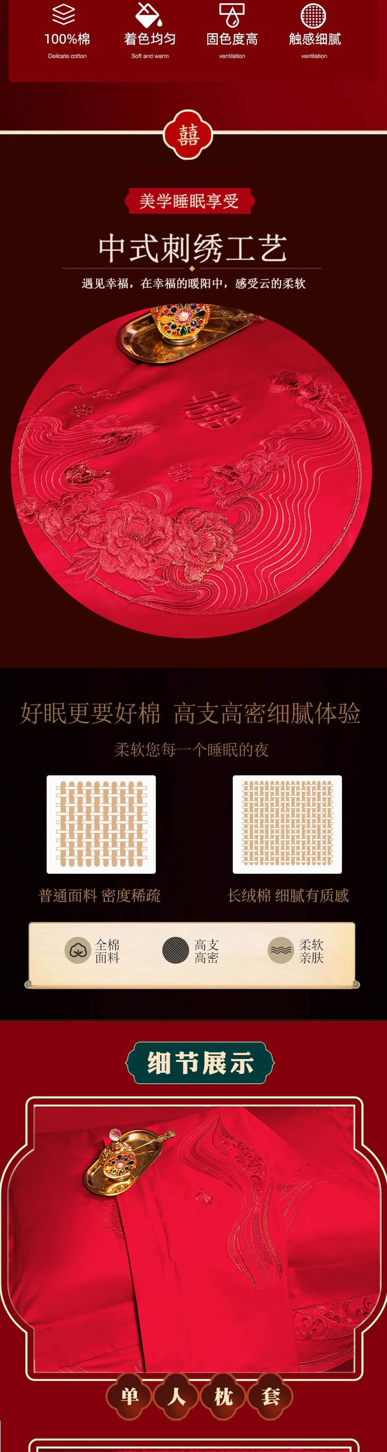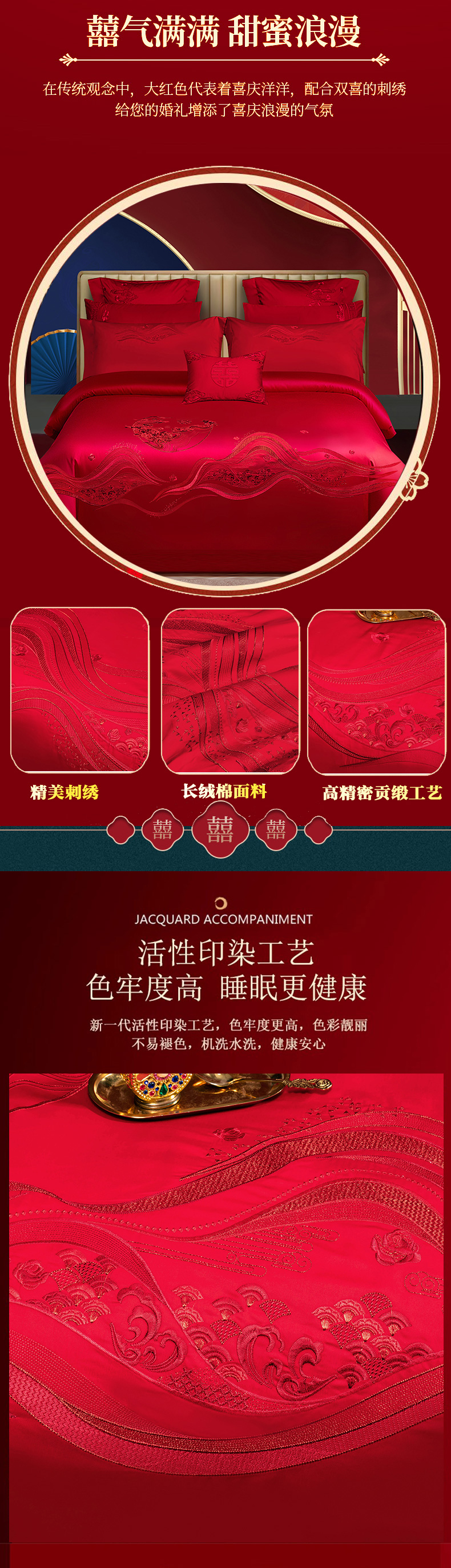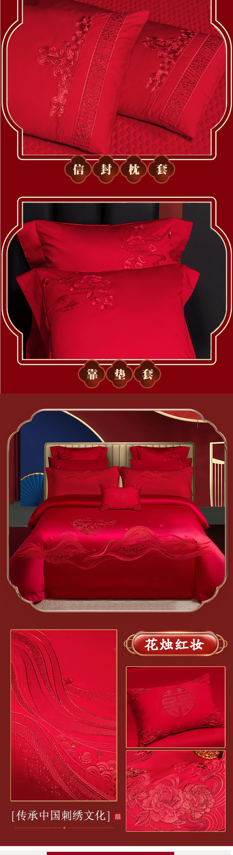 当前位置: 91家纺网 > 商品网购 > 床品套件 > 四件套 > 长绒棉四件套 > 柏拉图 2025新款100s长绒棉纯棉贡缎提花婚庆系列四件套多件套3 花烛红妆红