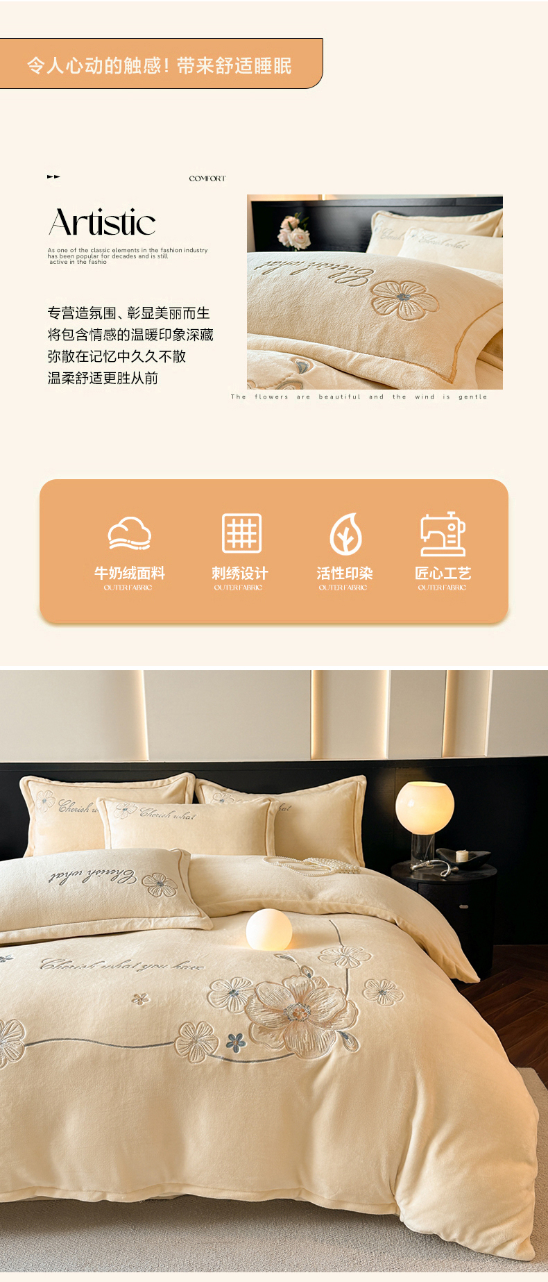 (总)诺梵家纺 2025新款牛奶绒绣花绒四件套,芳华-宝蓝,芳华-豆沙,芳华-湖兰,芳华-米白,芳华-抹茶绿,伊莉莎-米白,伊莉莎-抹茶绿