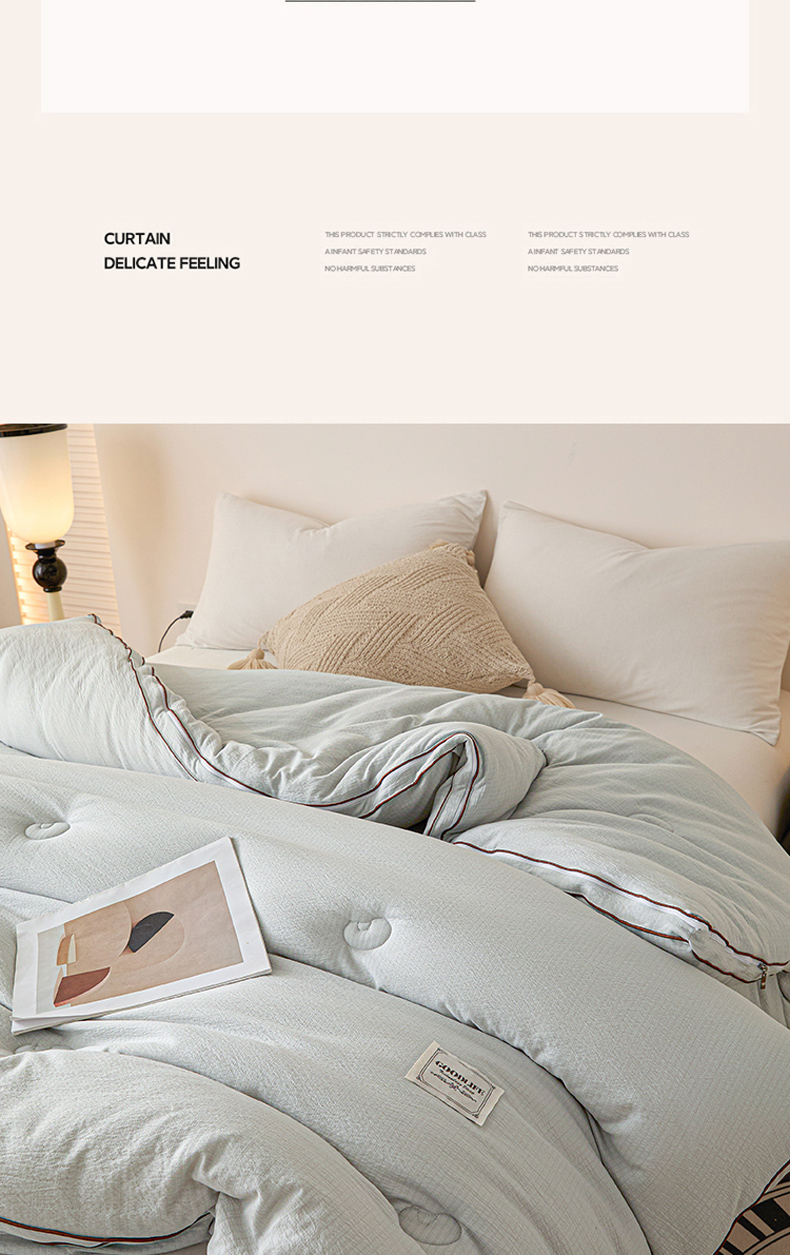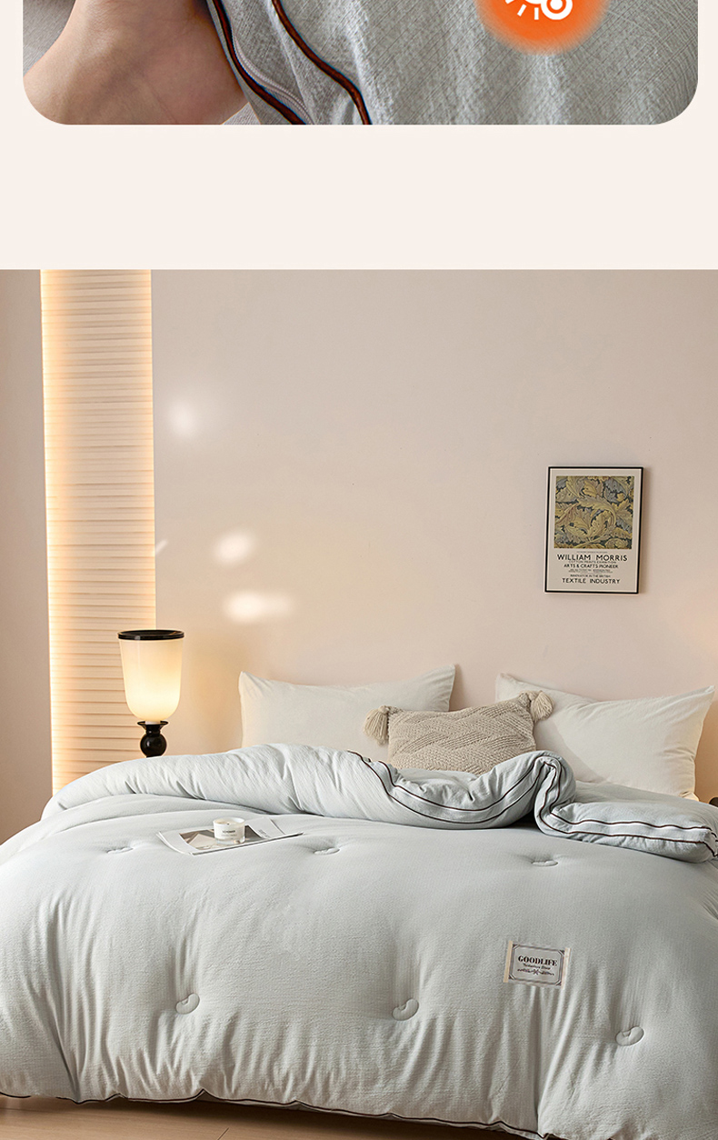 • 91家纺网 家纺一手货源 找家纺 秋泽家纺 2025新款皱皱纱提花子母被被子被芯 浅灰