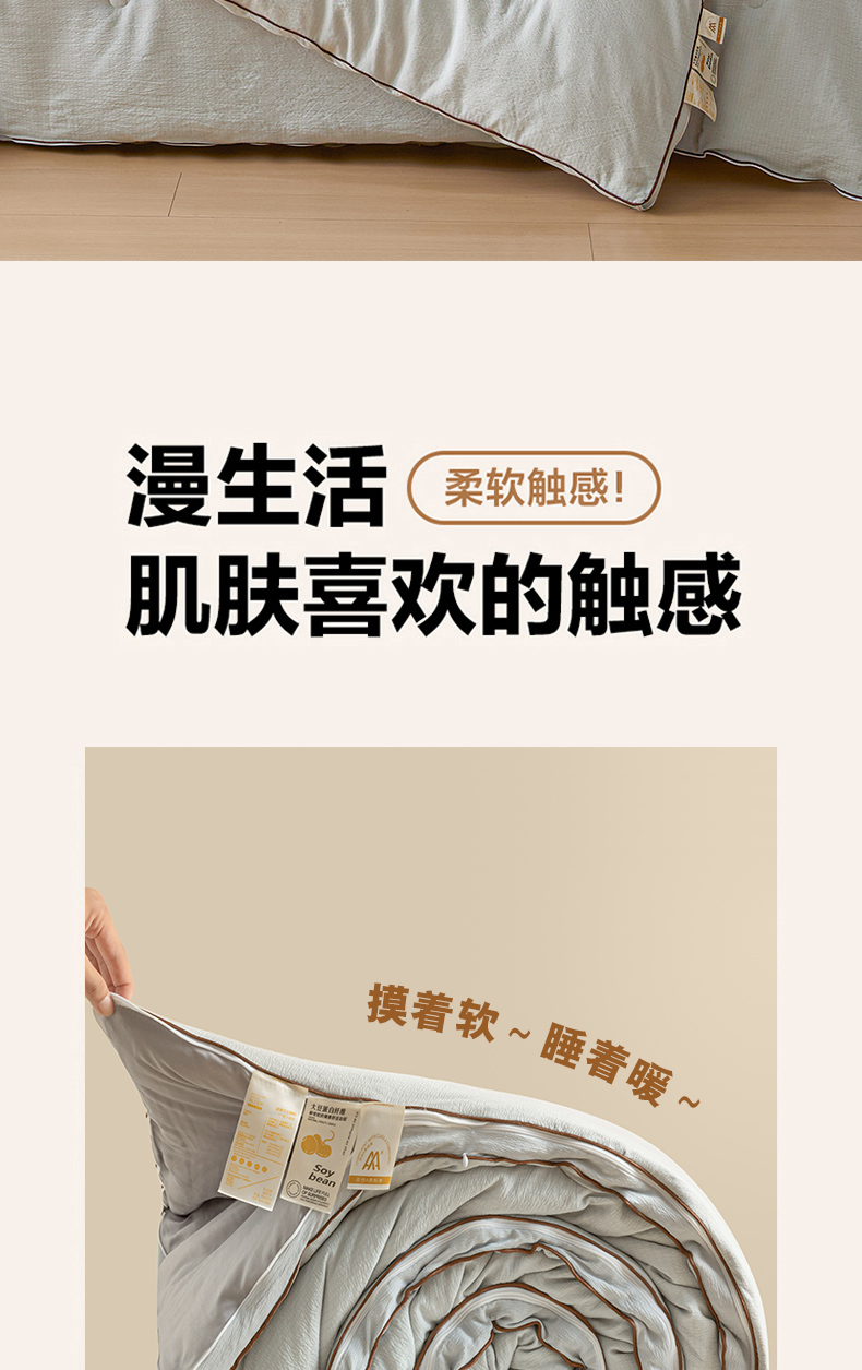 (总)秋泽 2025新款皱皱纱大豆被冬被春秋被夏被子被芯,奶白,浅灰,浅咖