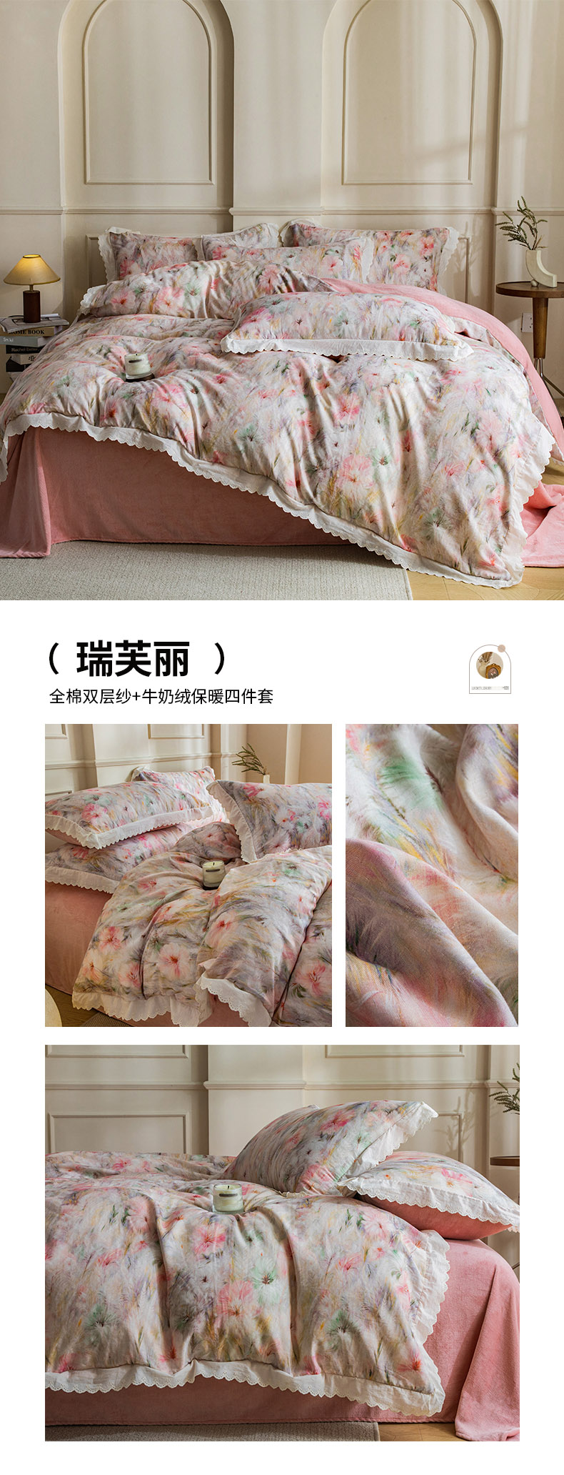 (总)大境 2025秋冬新款A类全棉双层纱棉加牛奶绒四件套韩版公主风,春野,可颂,奈斯,秋屿,瑞芙丽,映秋
