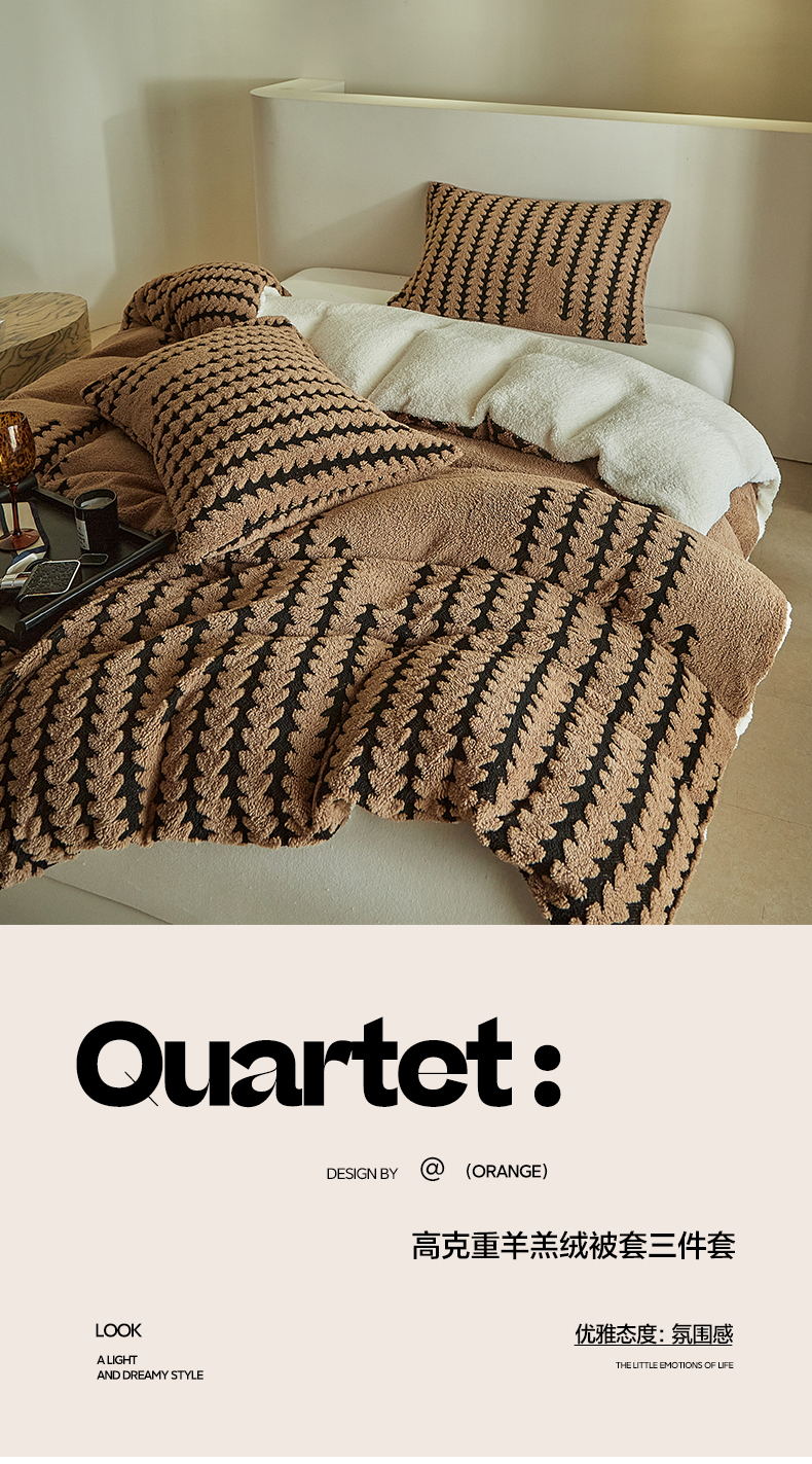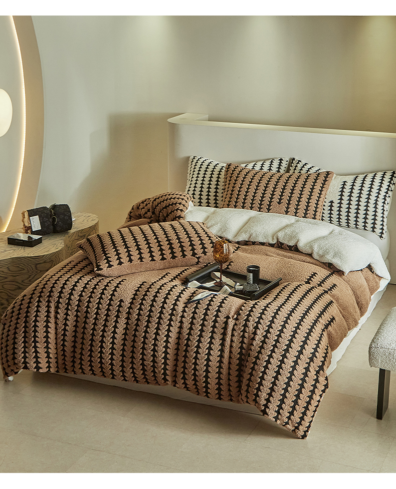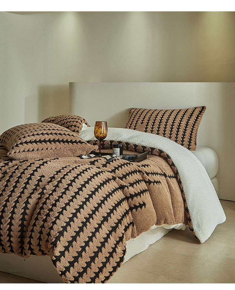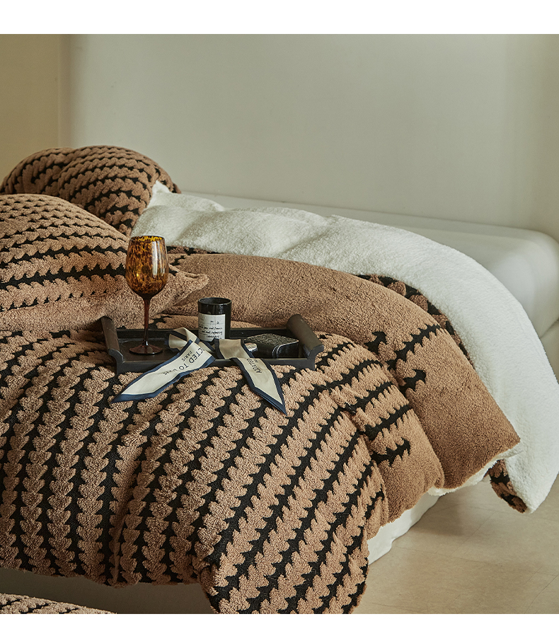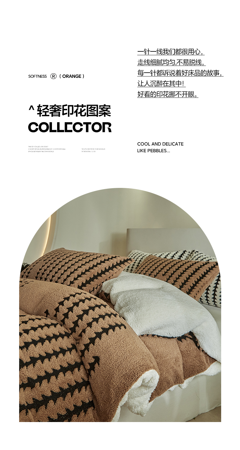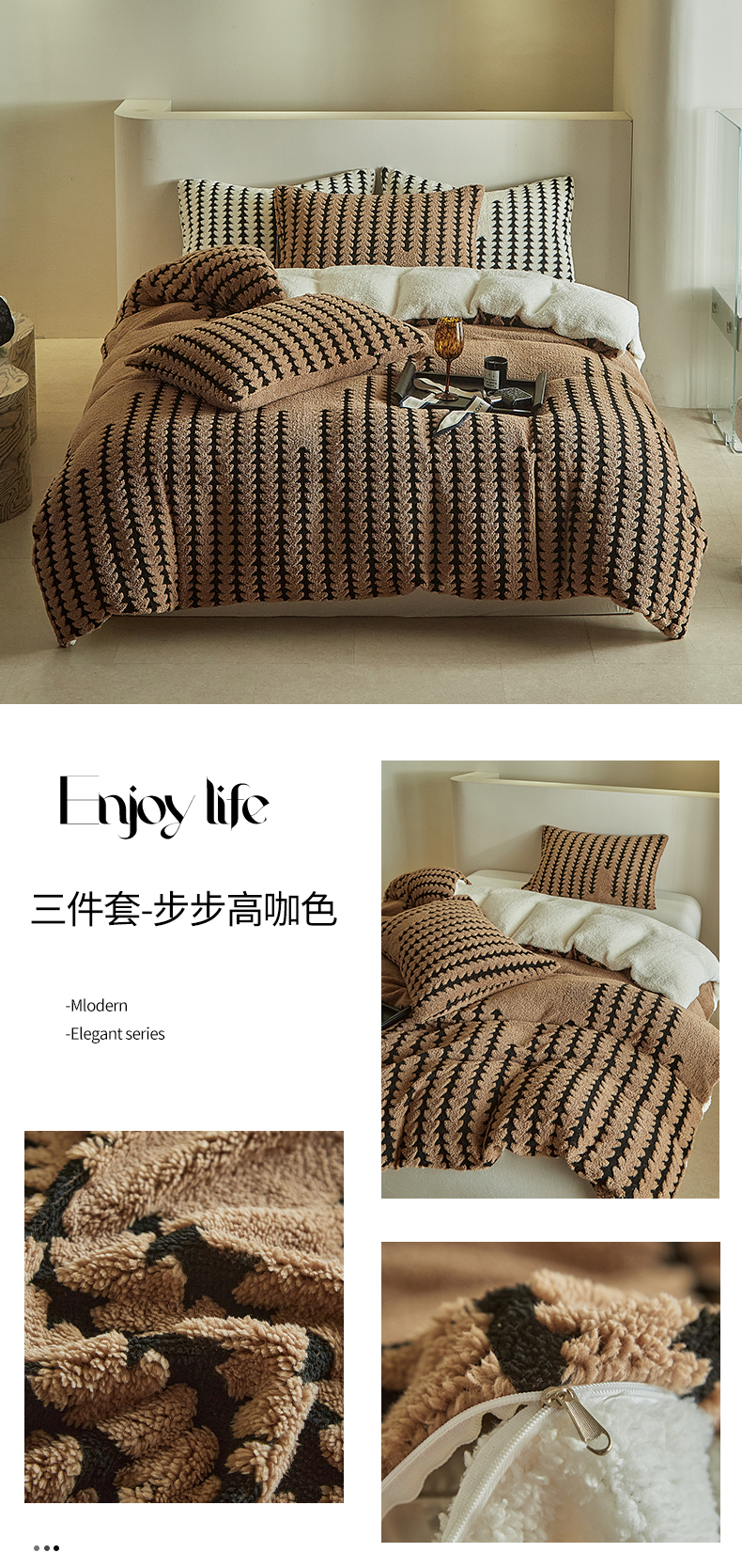 商品名称:温宁家纺 2025新款步步高被套毯毛毯盖毯三件套单被套可配枕套 三件套-步步高咖色