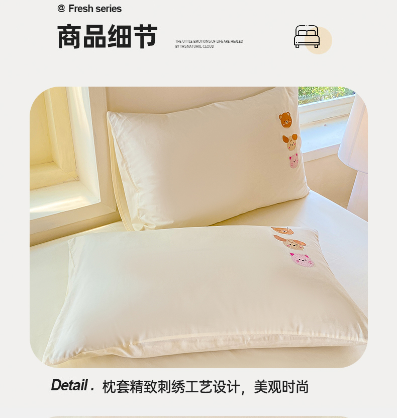 (总)灰鲸 2025新款全棉刺绣大床床单-懒懒小憩系列