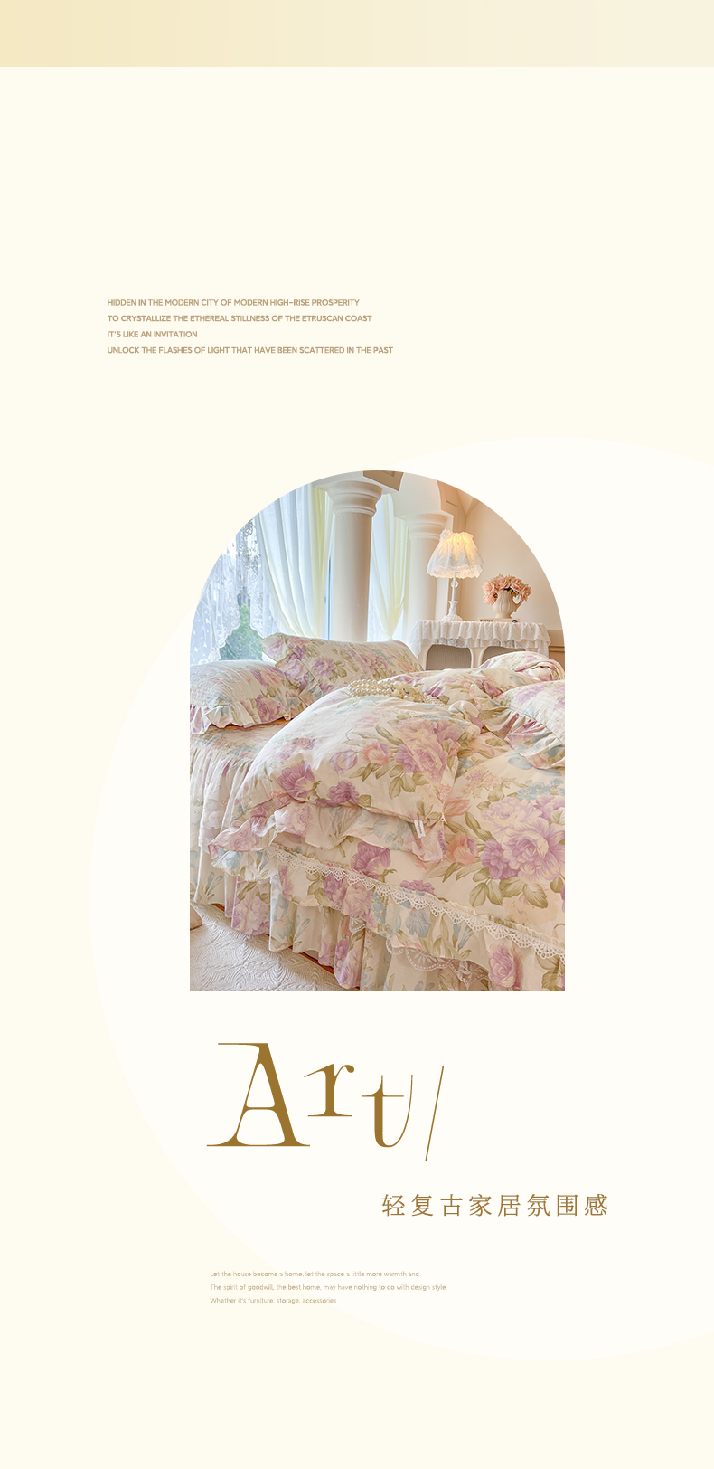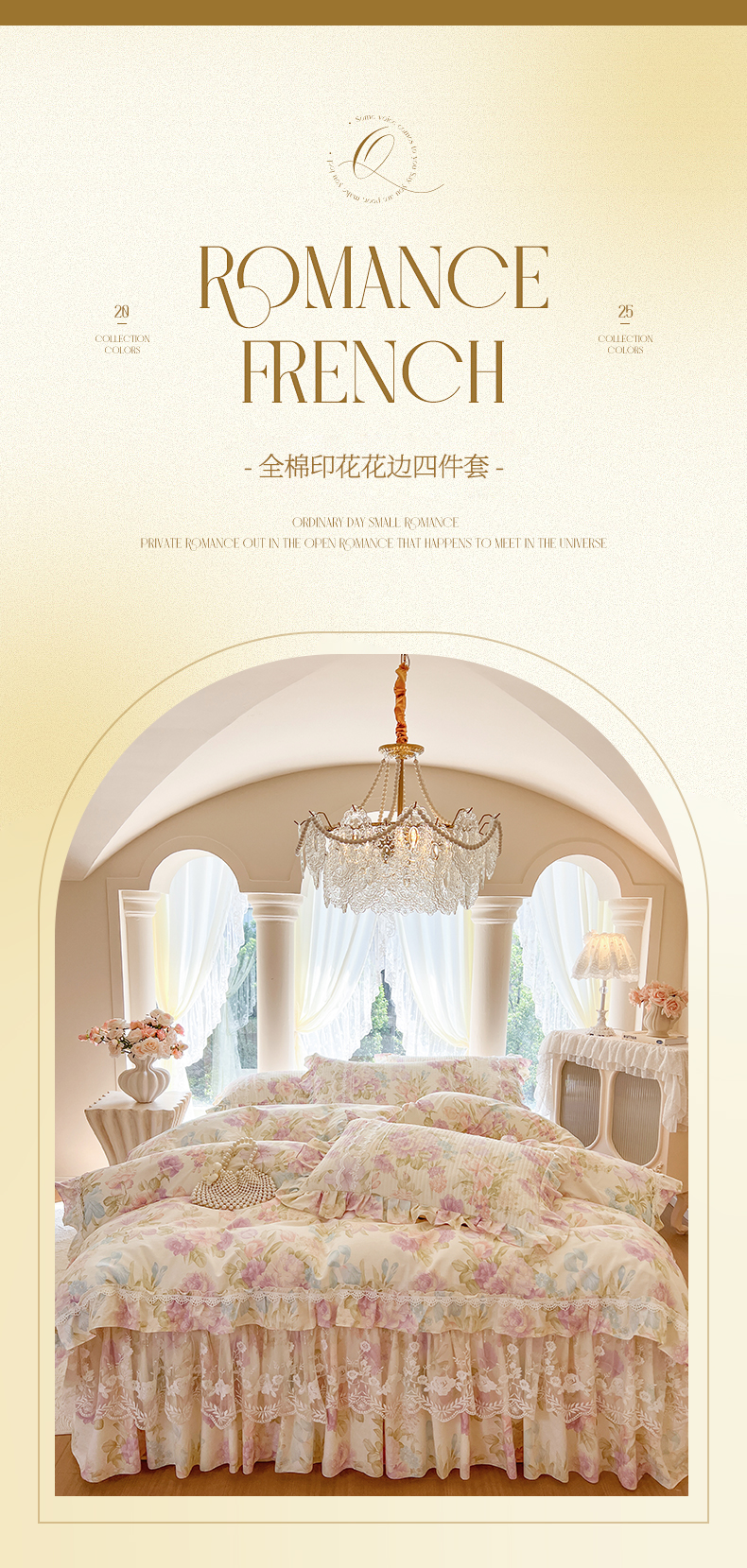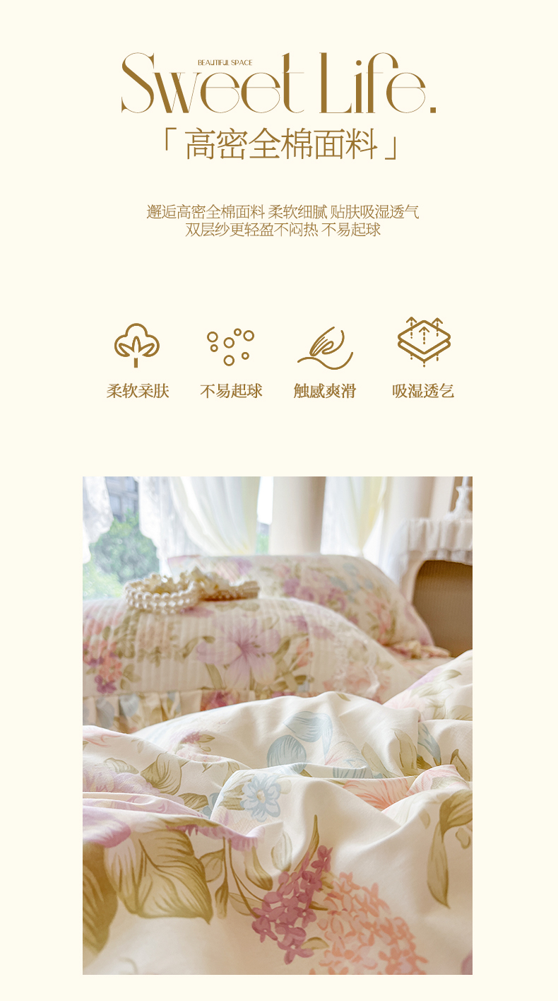 • 91家纺网 家纺一手货源 找家纺 瑞宝 2025新款13372全棉印花花边床裙四件套 浪漫花溪