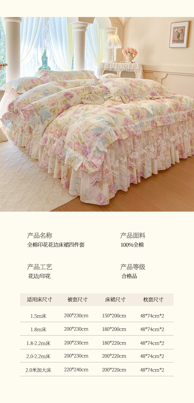 当前位置: 91家纺网 > 商品网购 > 床上用品 > 床裙 > 瑞宝 2025新款13372全棉印花花边床裙四件套 浪漫花溪