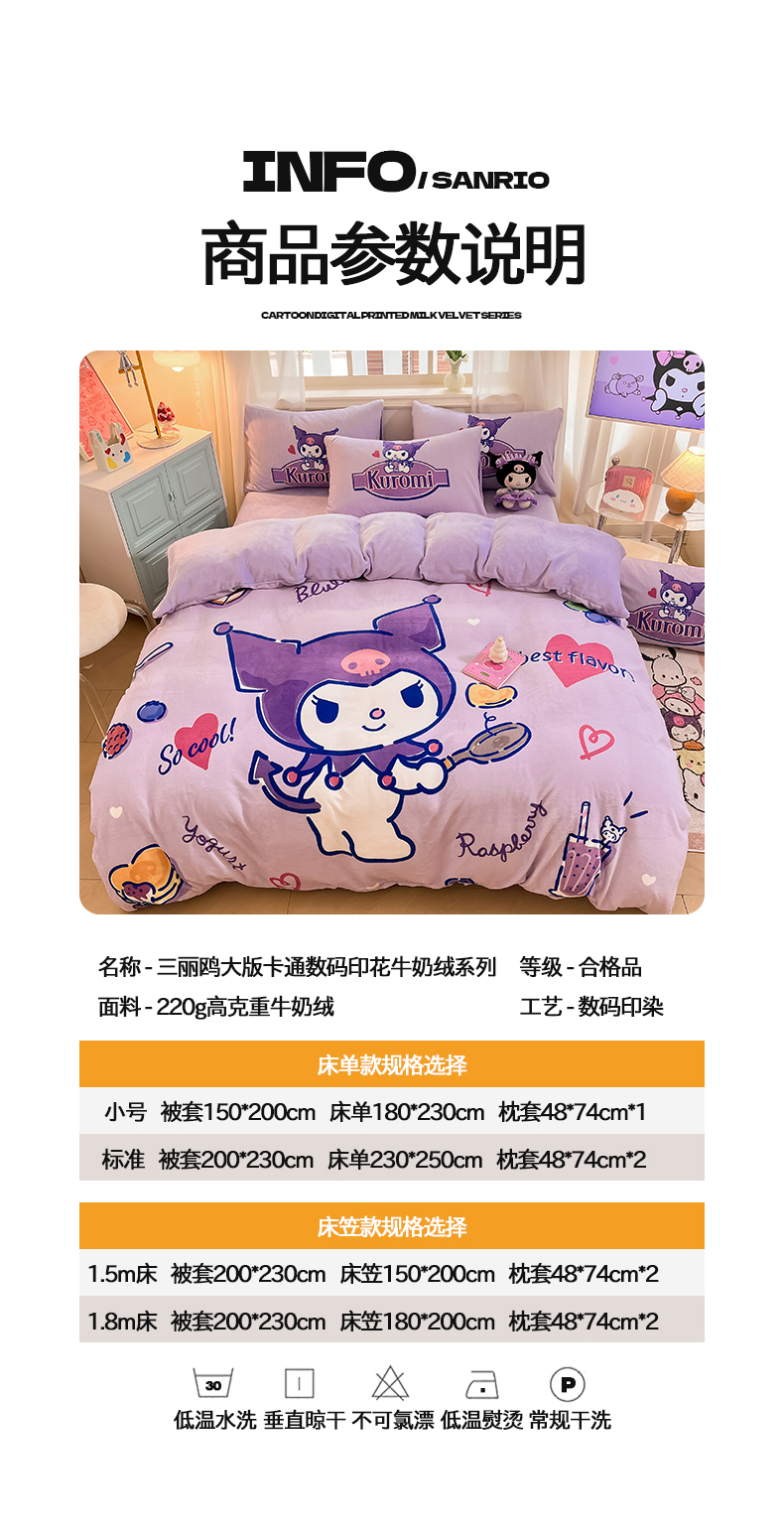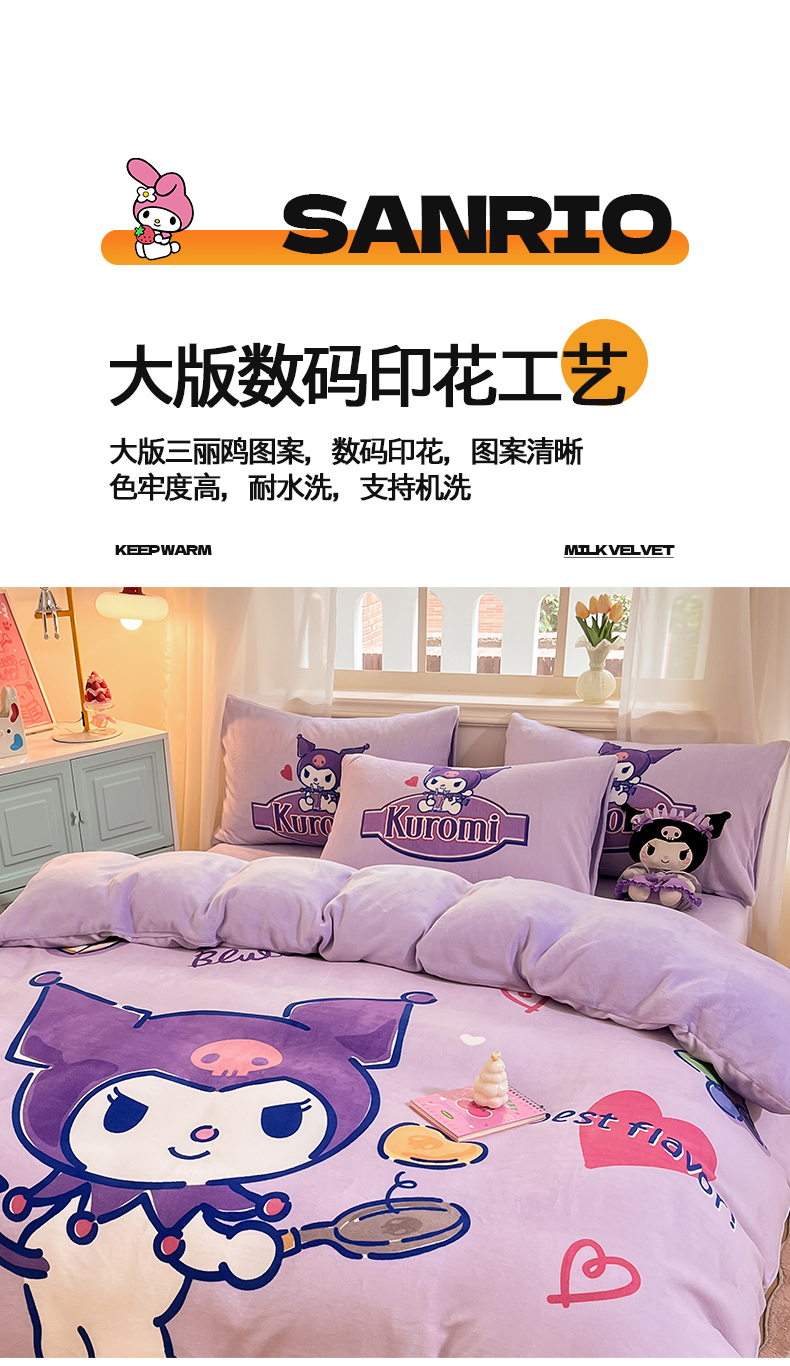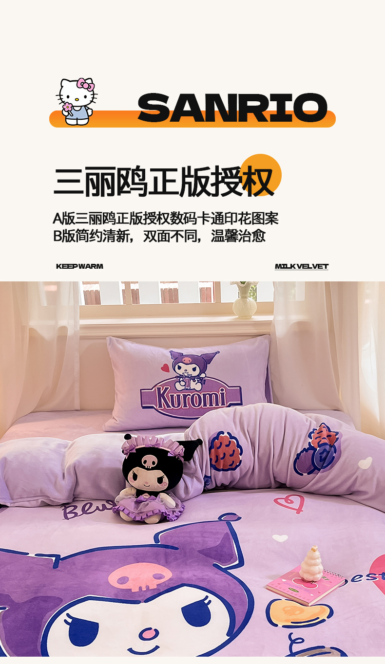 当前位置: 91家纺网 > 商品网购 > 床品套件 > 四件套 > 牛奶绒四件套 > 金爱家 2025新款正版三丽鸥授权大版卡通平网数码印花加厚高克重牛奶绒系列四件套-第一批 绒大版-R乐趣库洛米