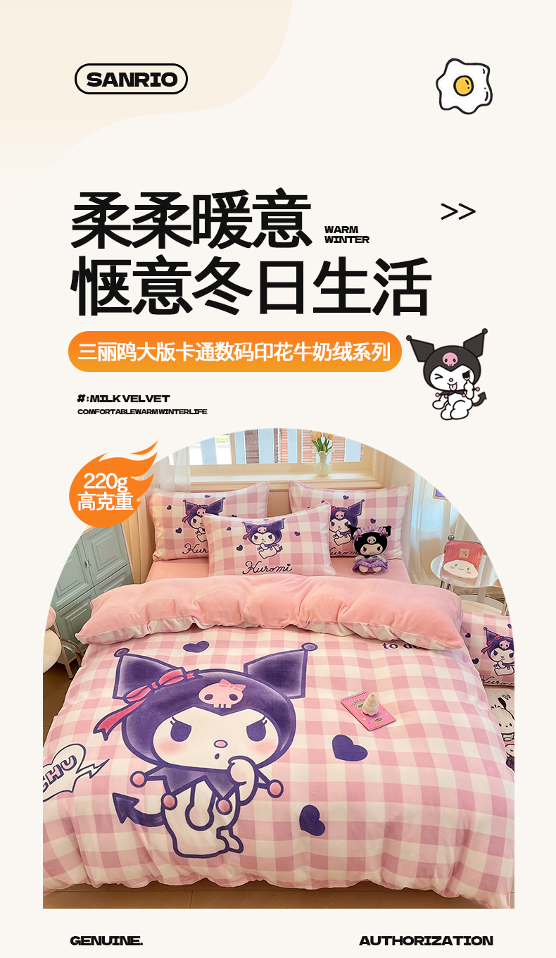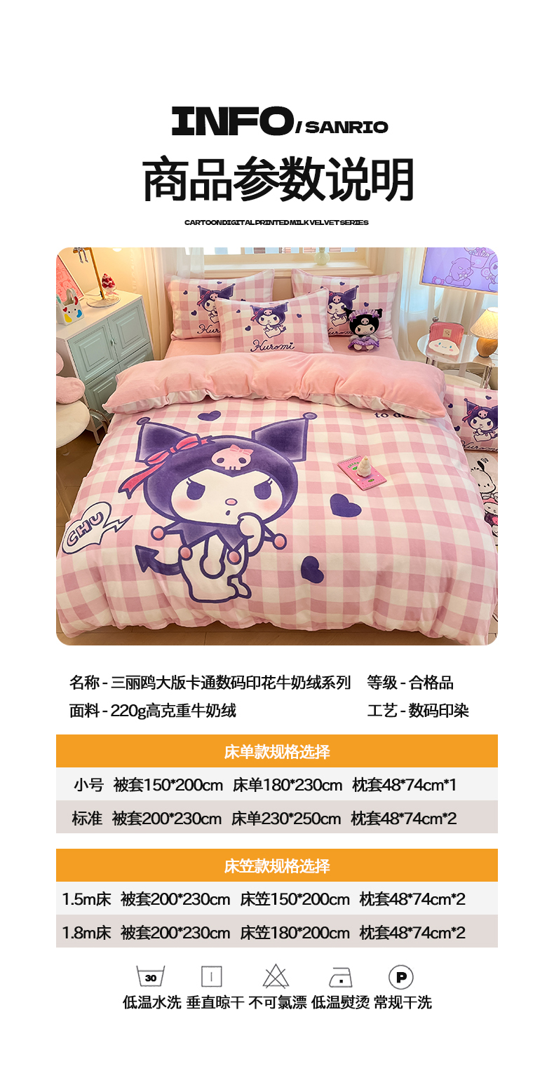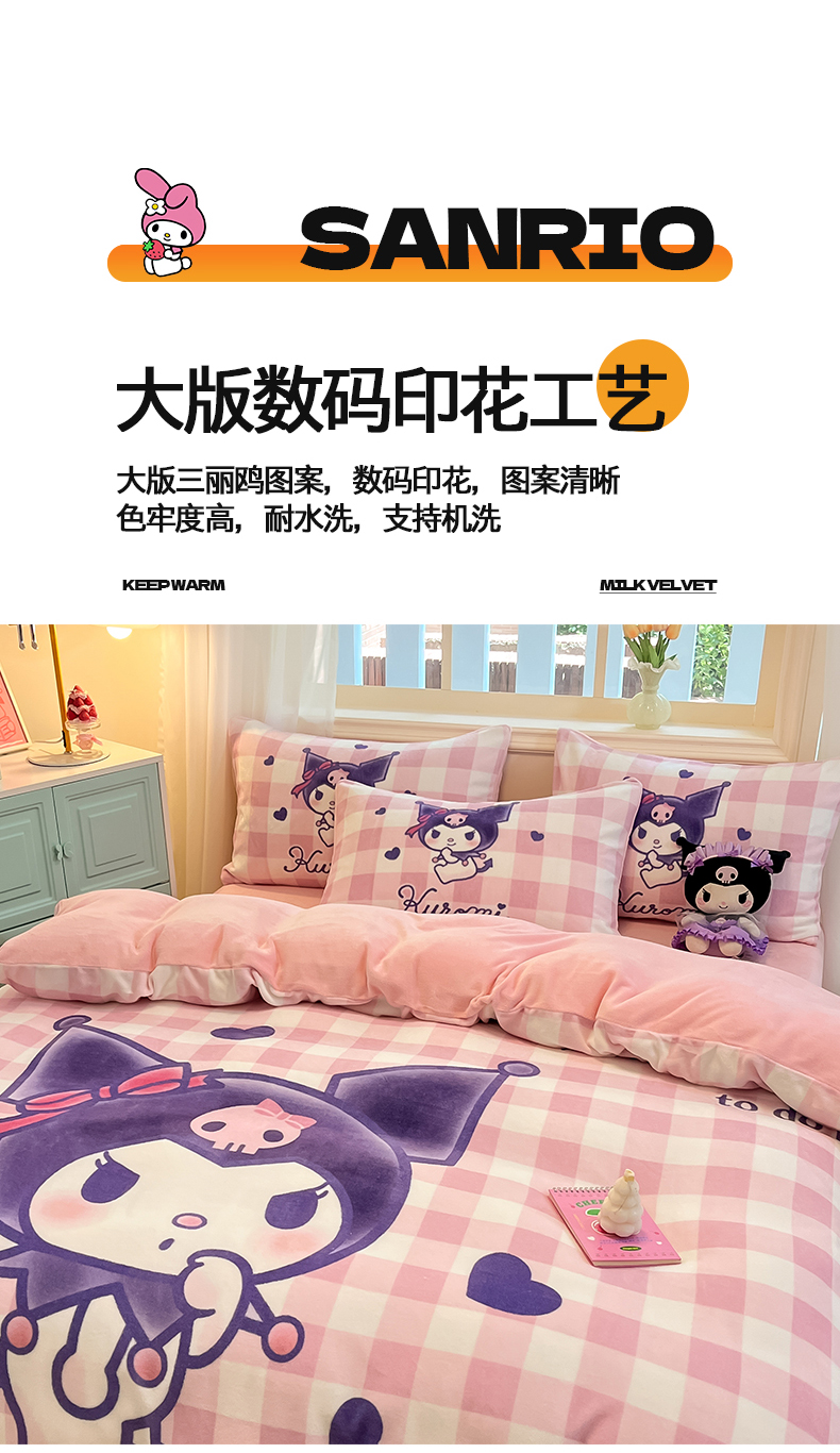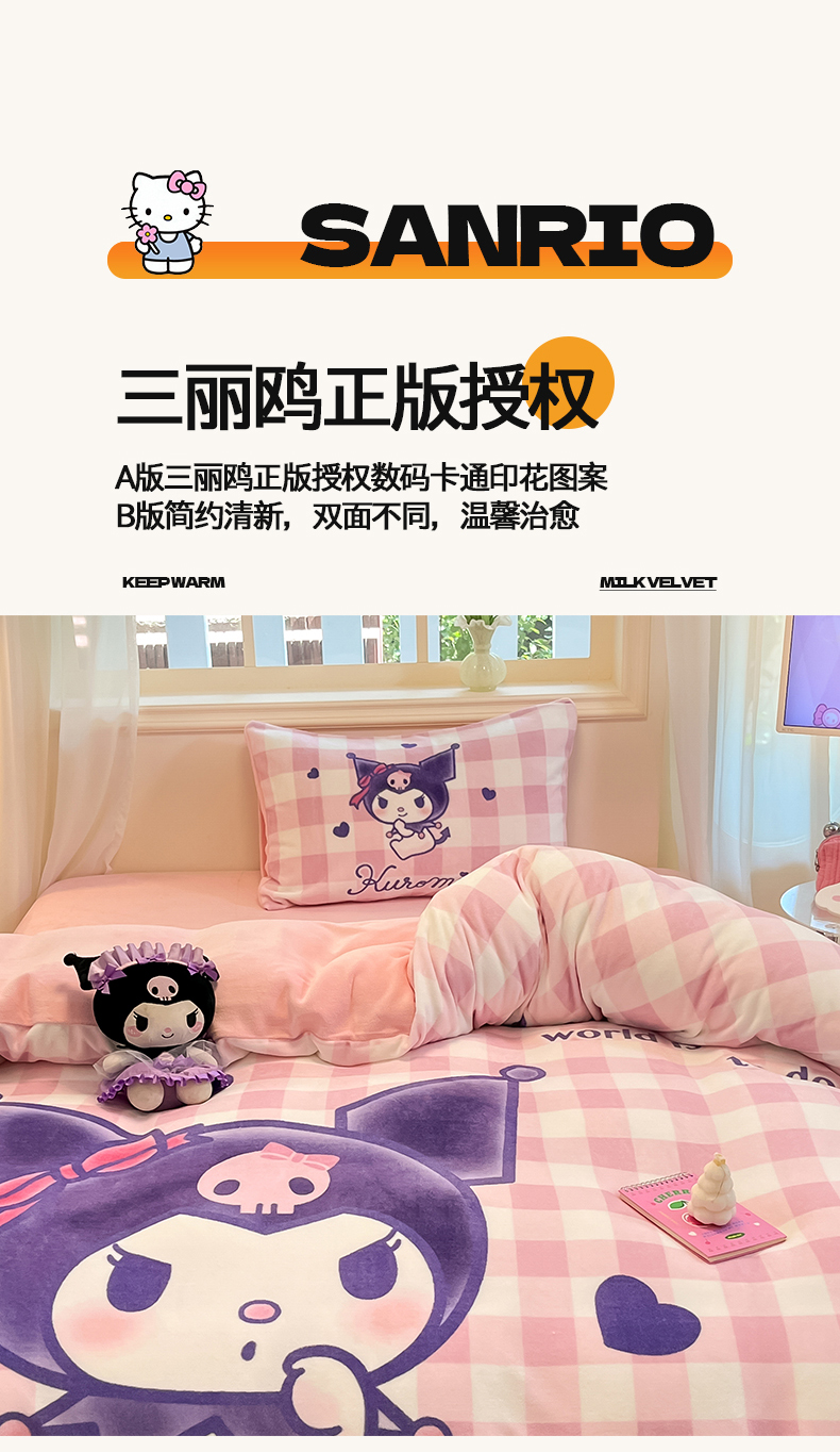 当前位置: 91家纺网 > 商品网购 > 床品套件 > 四件套 > 牛奶绒四件套 > 金爱家 2025新款正版三丽鸥授权大版卡通平网数码印花加厚高克重牛奶绒系列四件套-第一批 绒大版-R甜趣库洛米