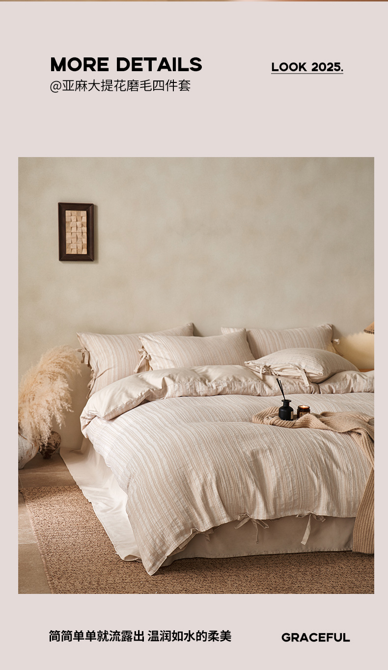 当前位置: 91家纺网 > 商品网购 > 床品套件 > 四件套 > 其它四件套 > 宜代光年 2025新款亚麻大提花贡缎磨毛四件套-侘寂风 观花芷-米麻