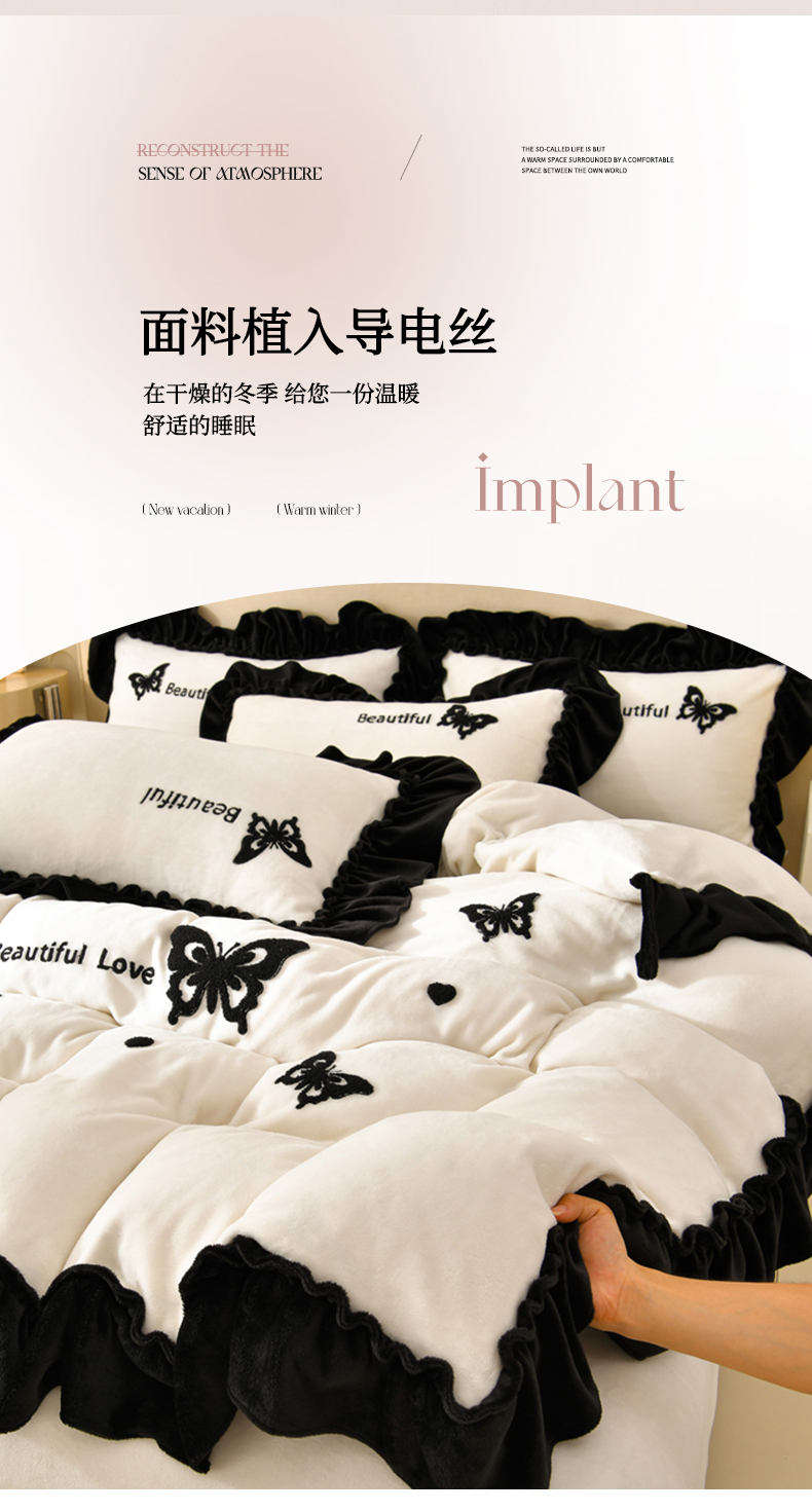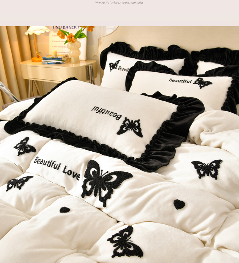 商品名称:梦之星 2025新款9斤毛巾绣韩式花边牛奶绒四件套 蝴蝶-米白