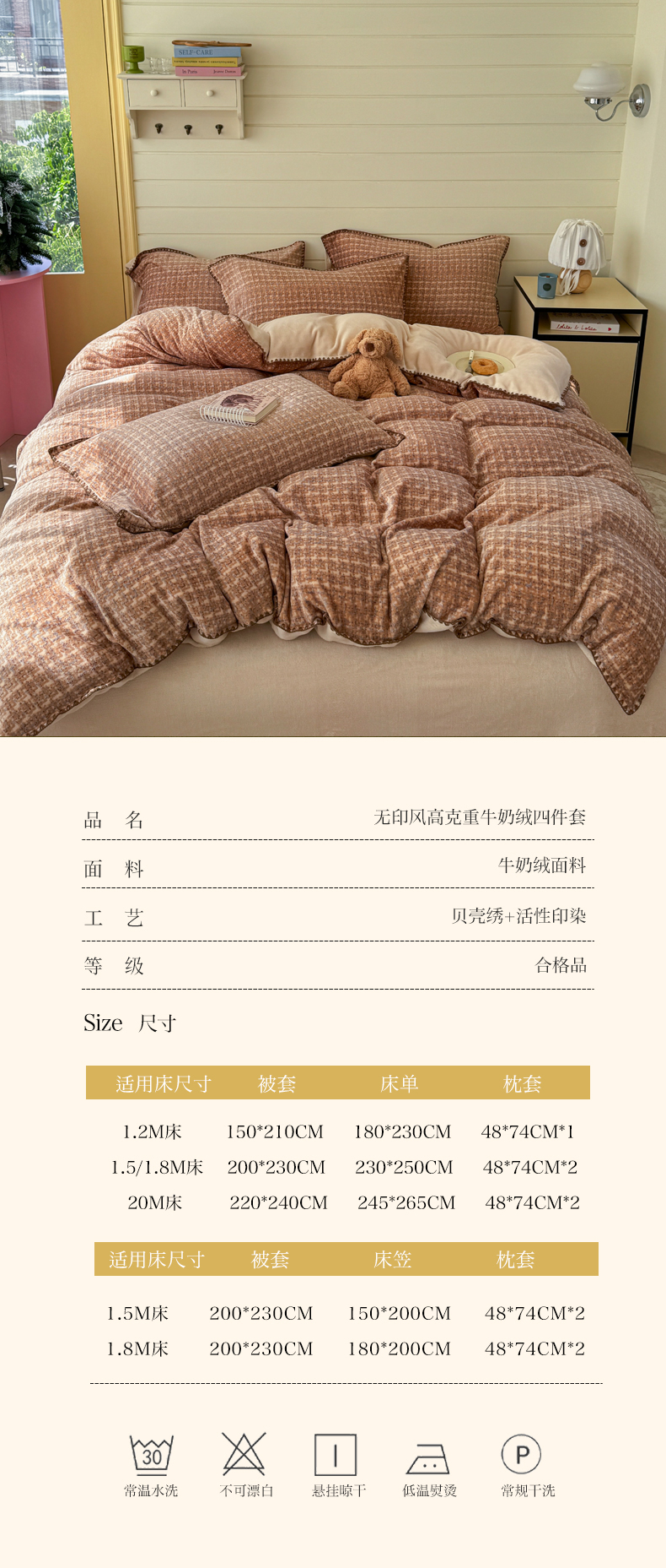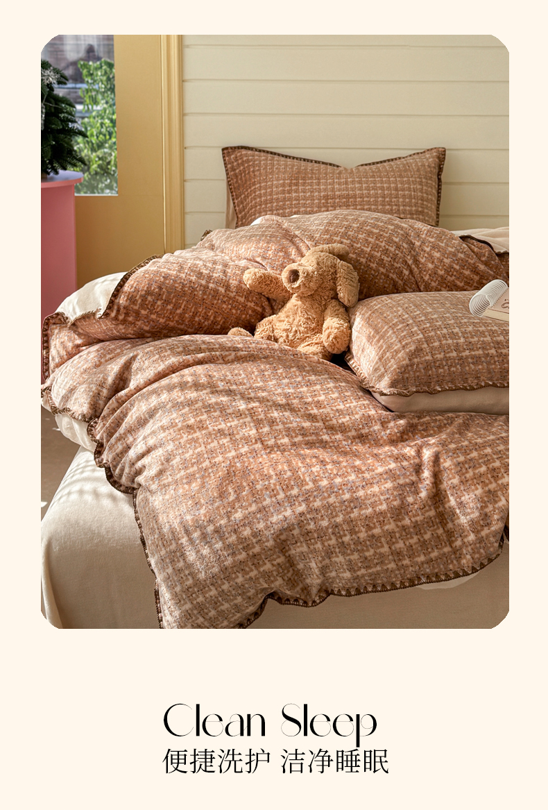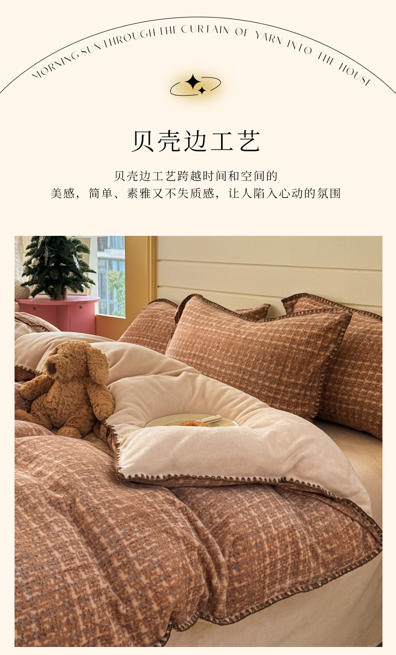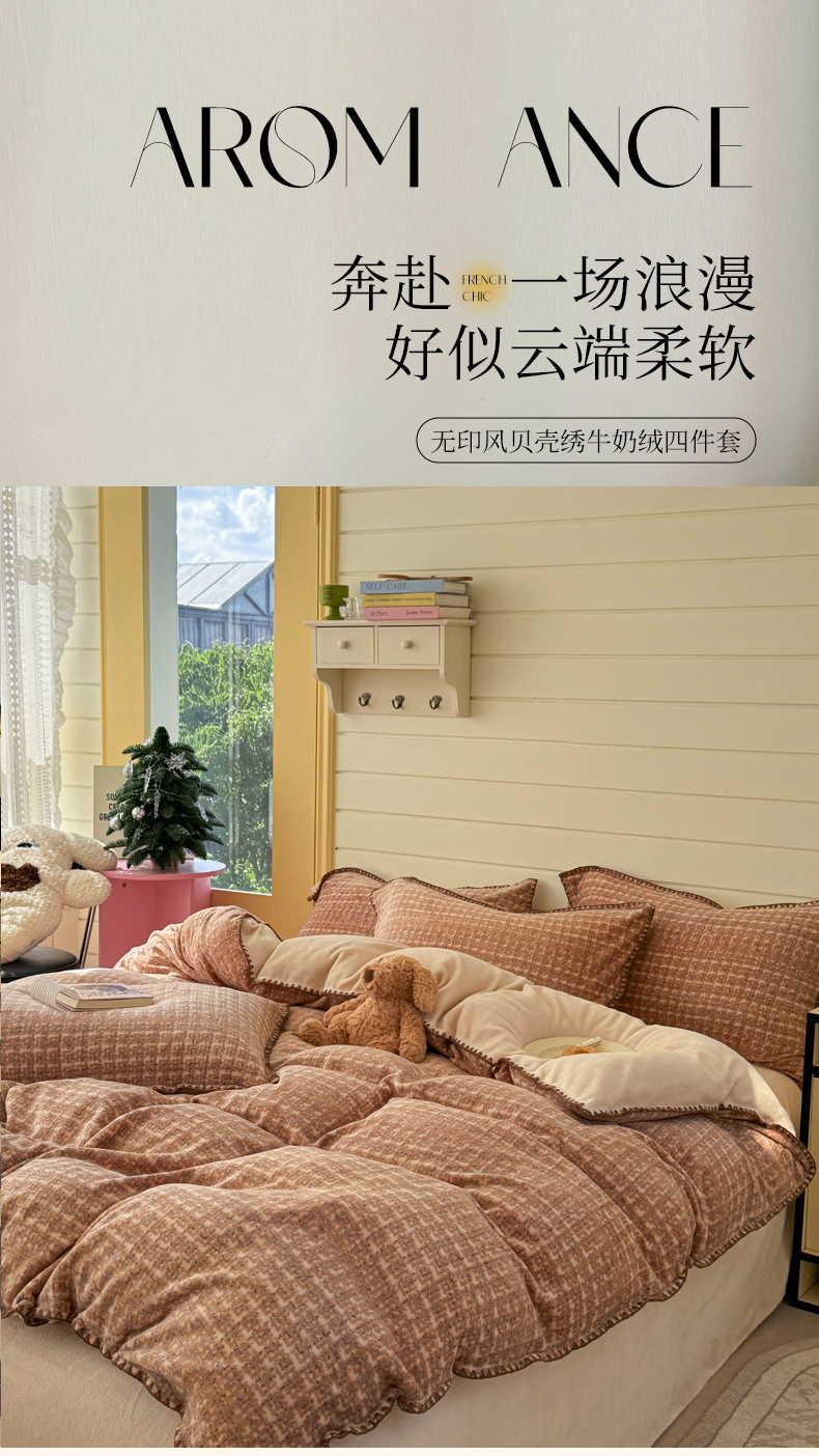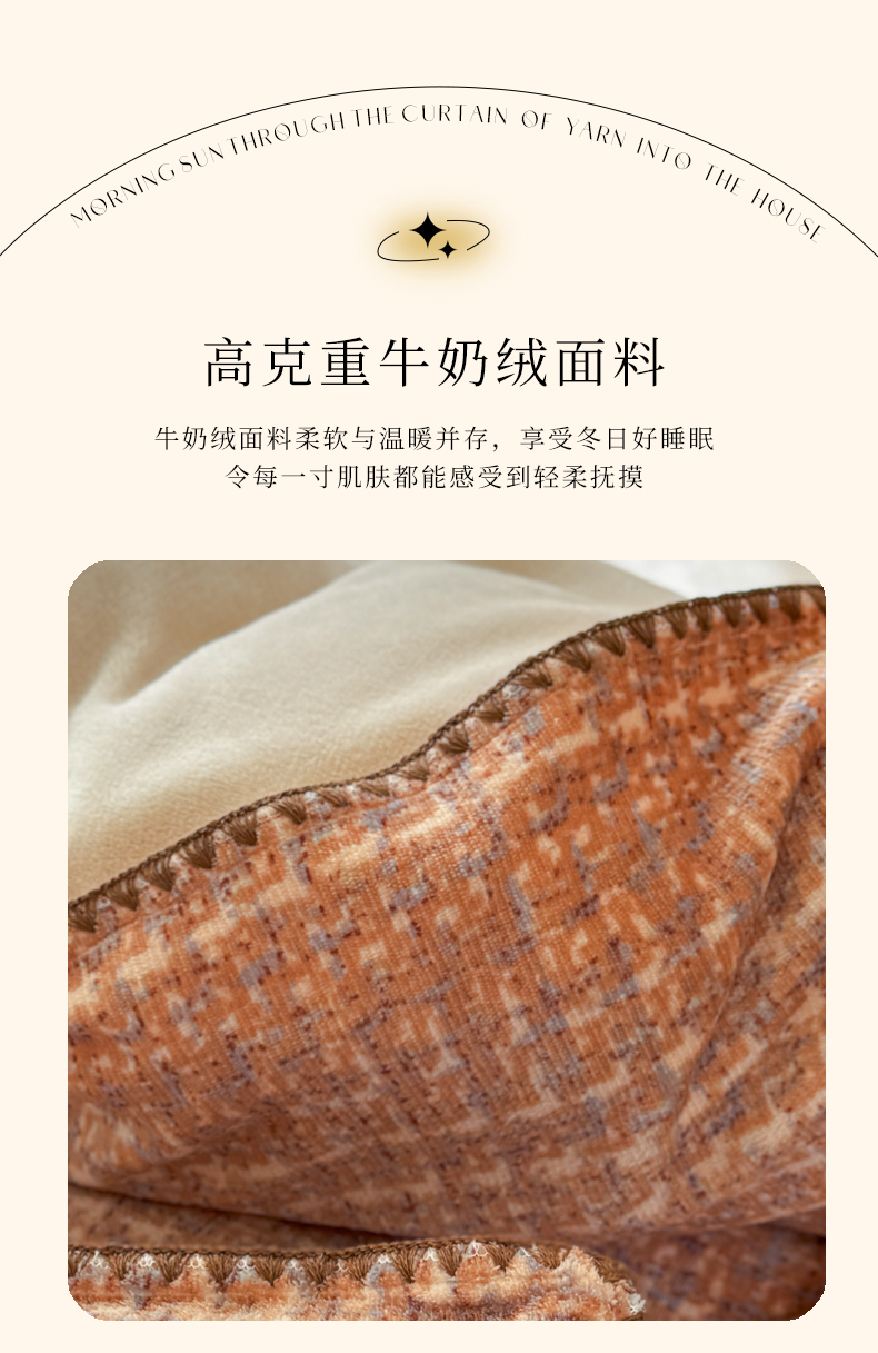 当前位置: 91家纺网 > 商品网购 > 床品套件 > 四件套 > 牛奶绒四件套 > 三朵家纺 2025新款无印风三角针牛奶绒四件套 咖色小香