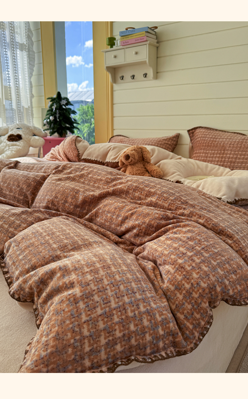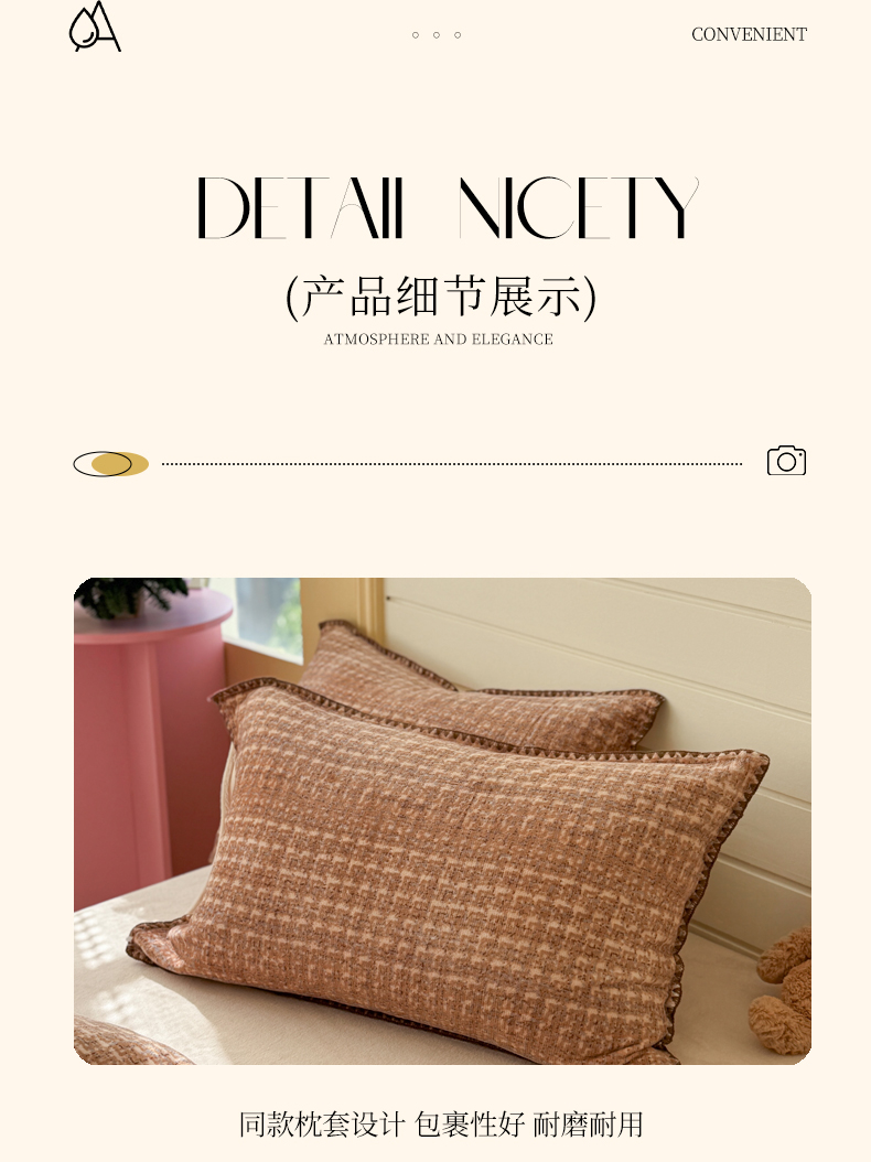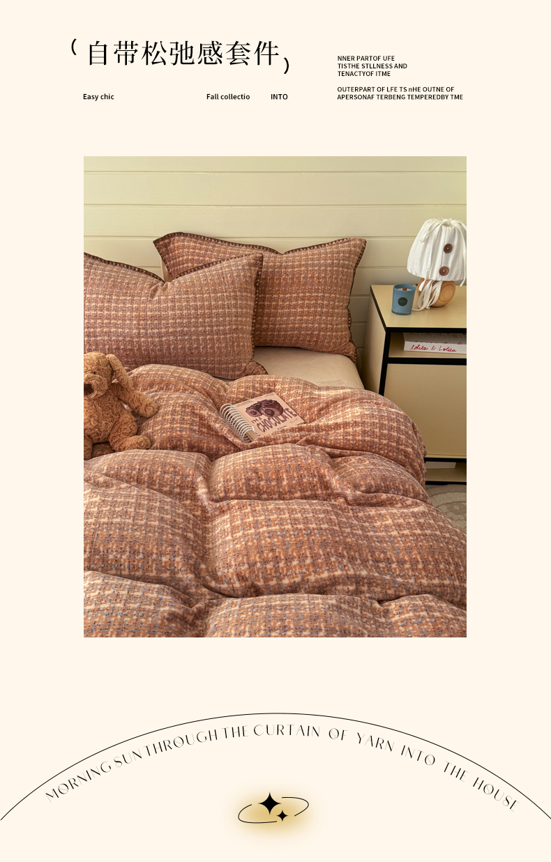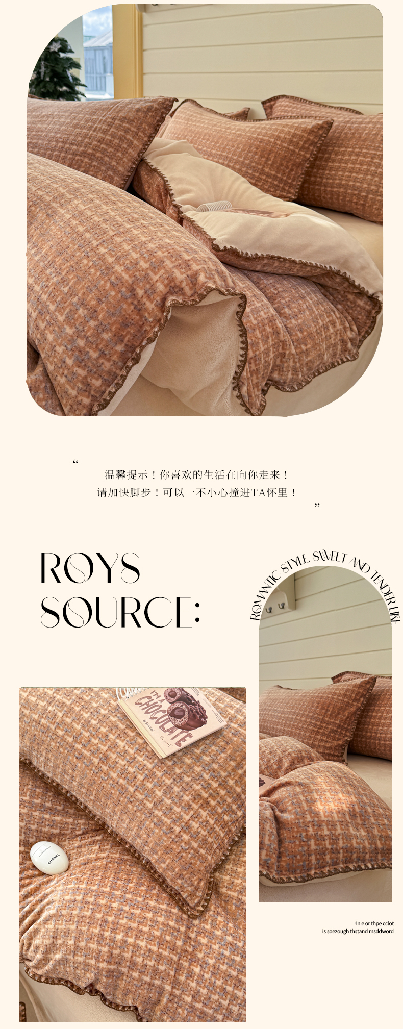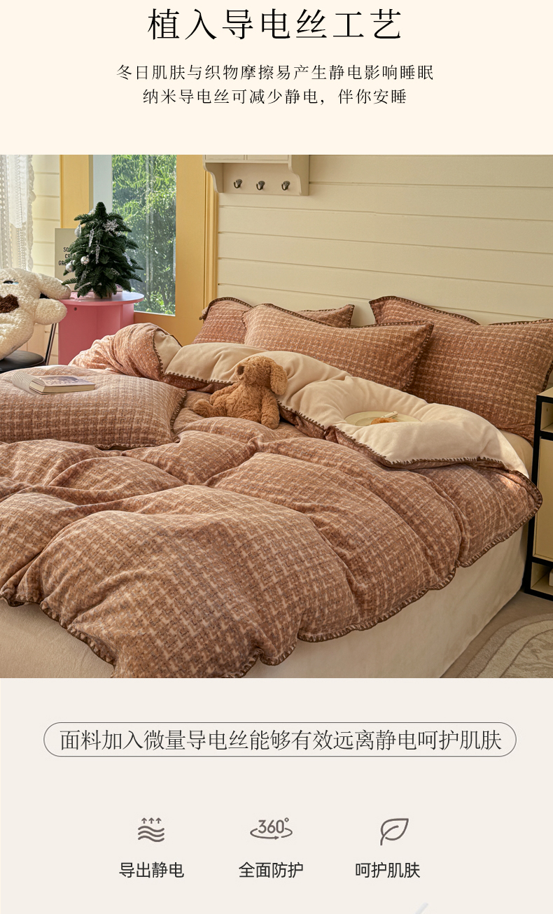 当前位置: 91家纺网 > 商品网购 > 床品套件 > 四件套 > 牛奶绒四件套 > 三朵家纺 2025新款无印风三角针牛奶绒四件套 咖色小香