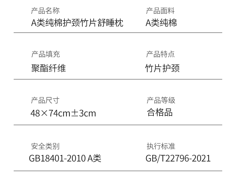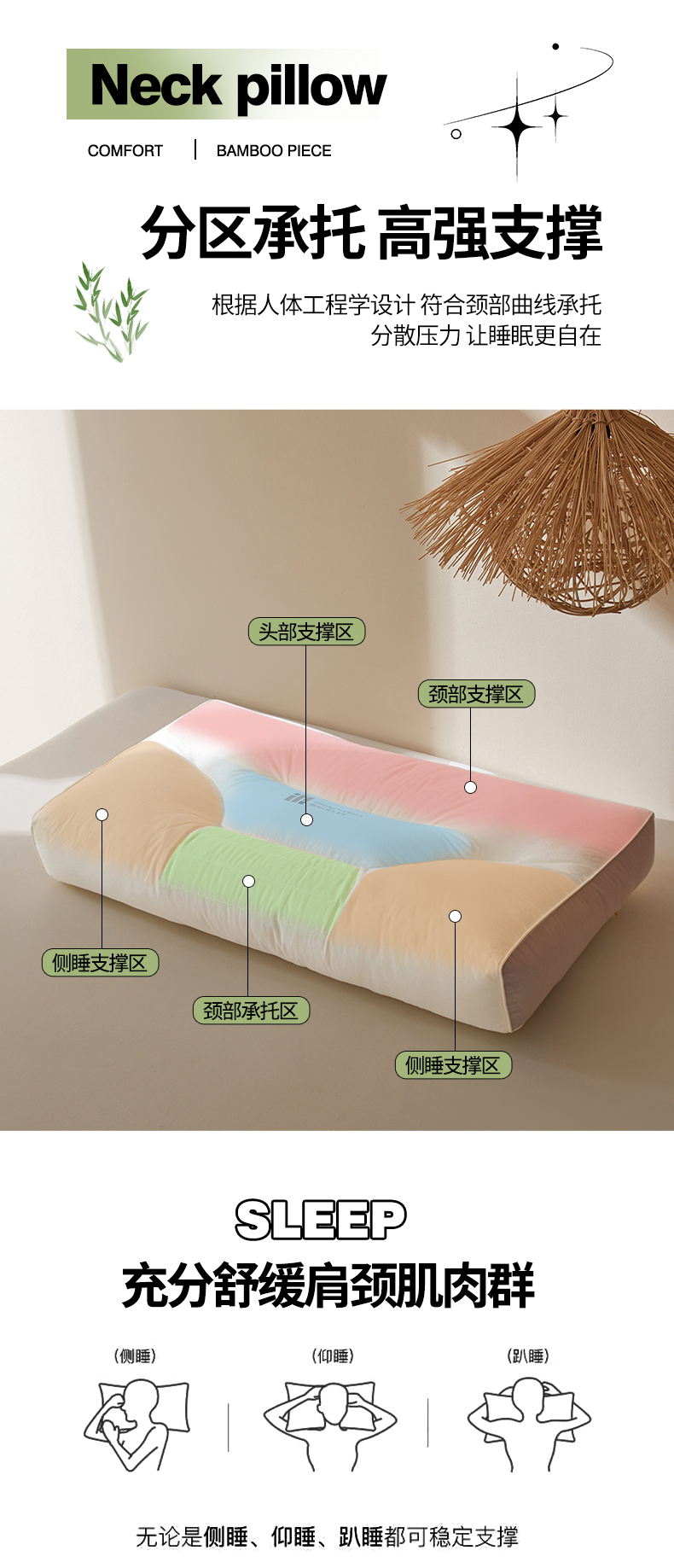 商品名称:(总)锦鲤枕芯 A类纯棉天然竹片护颈黑科技 分区护颈枕