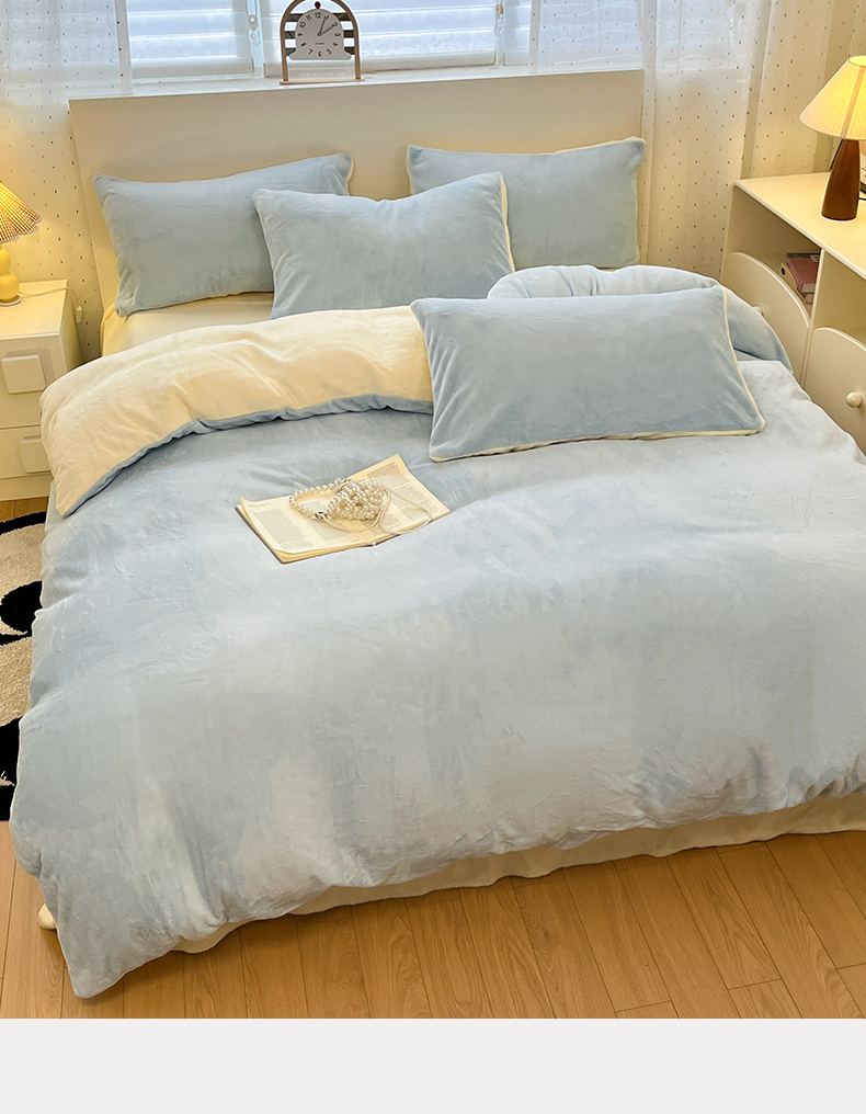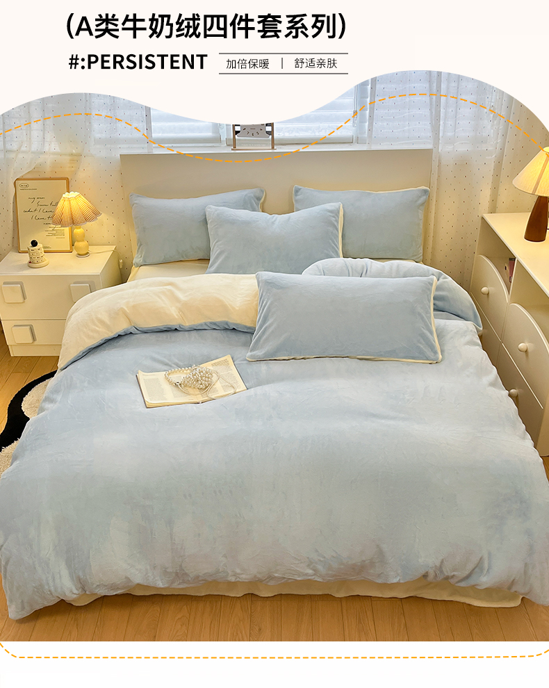 当前位置: 91家纺网 > 商品网购 > 床品套件 > 四件套 > 牛奶绒四件套 > 颜选 2025新款纯色190克牛奶绒四件套 奶油黄蓝