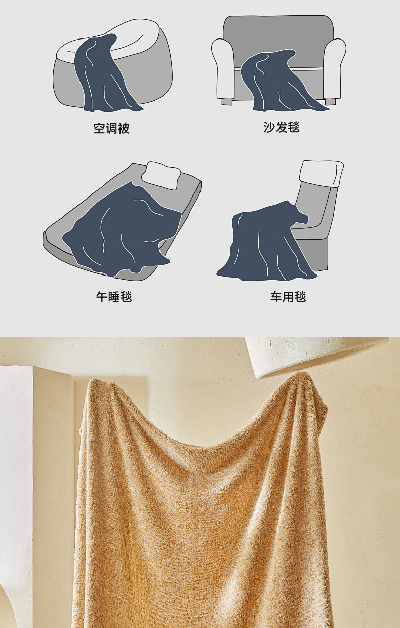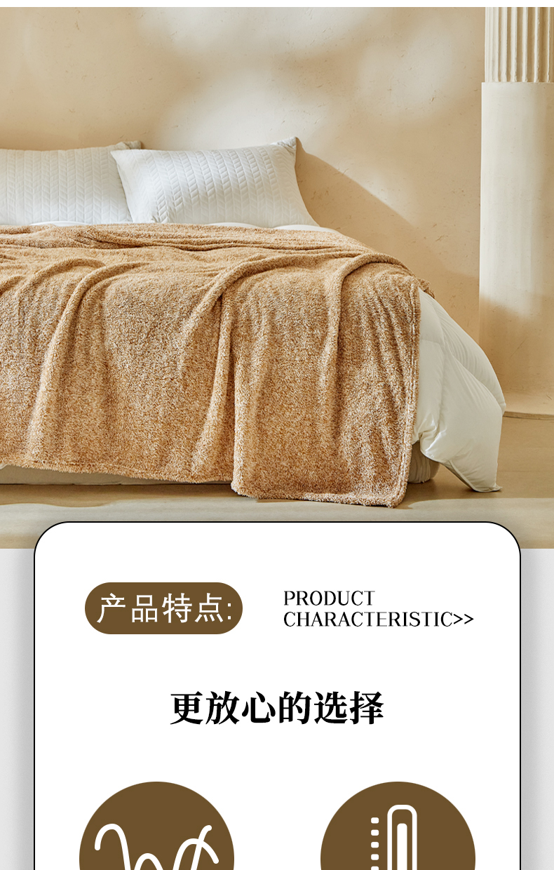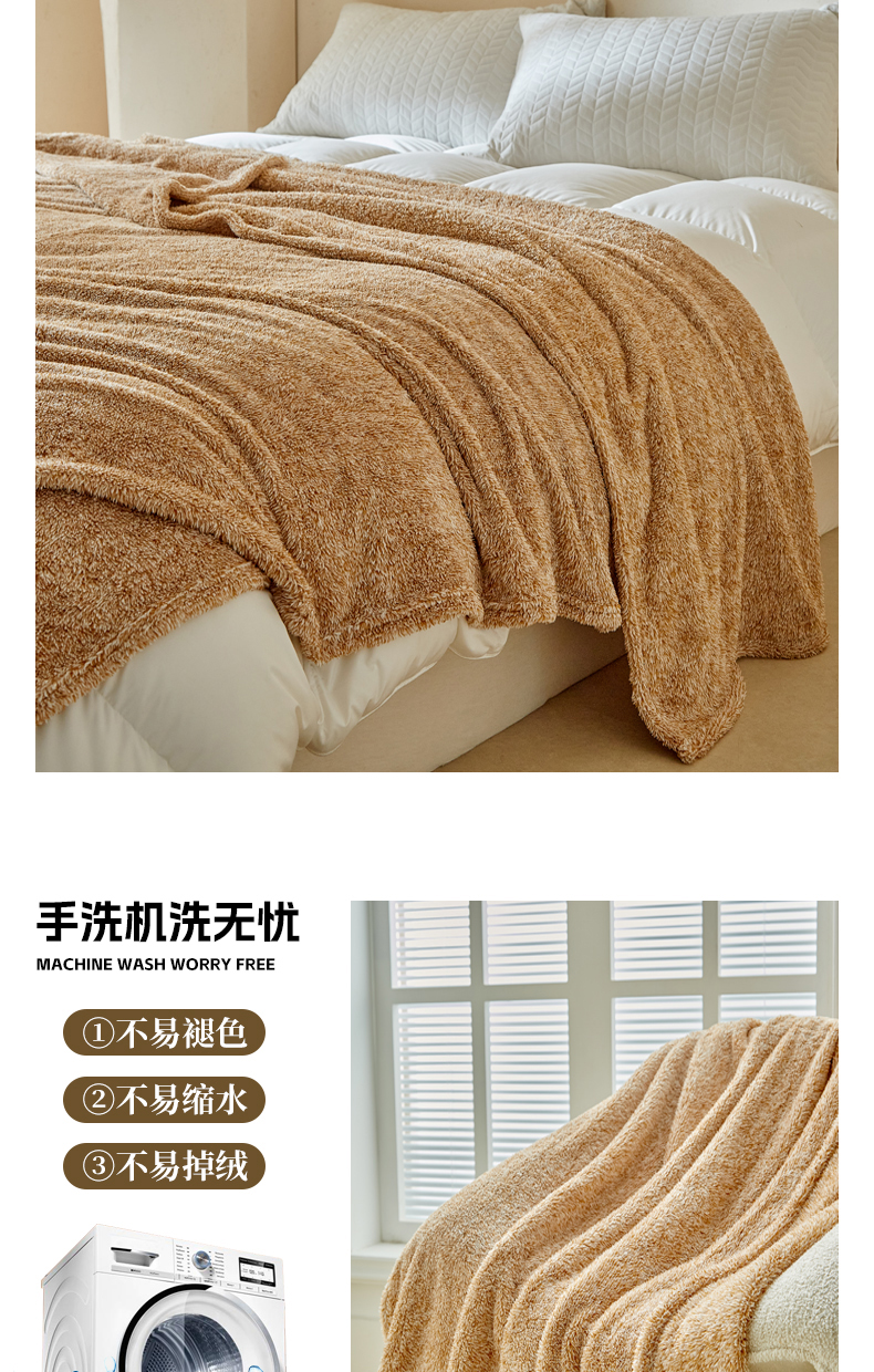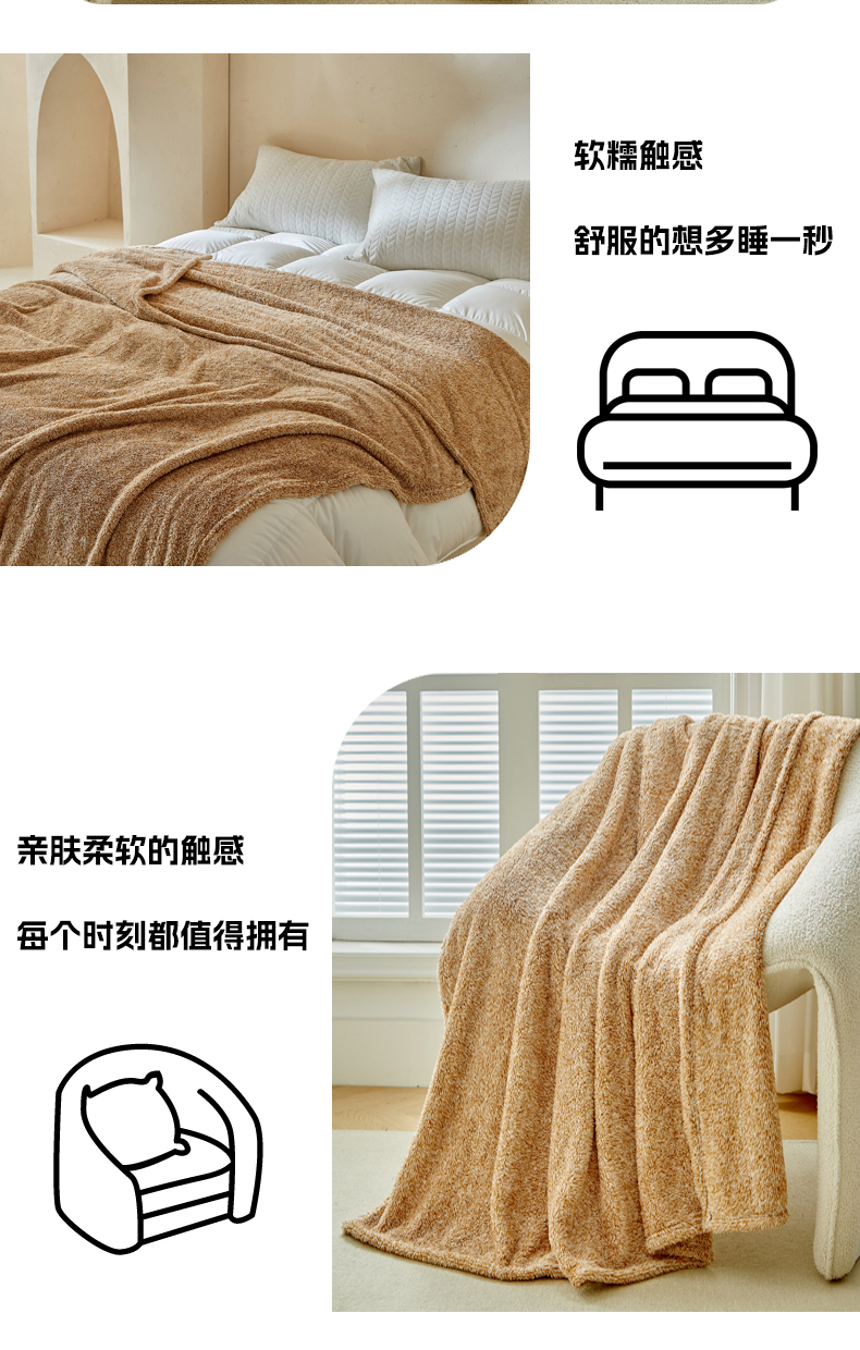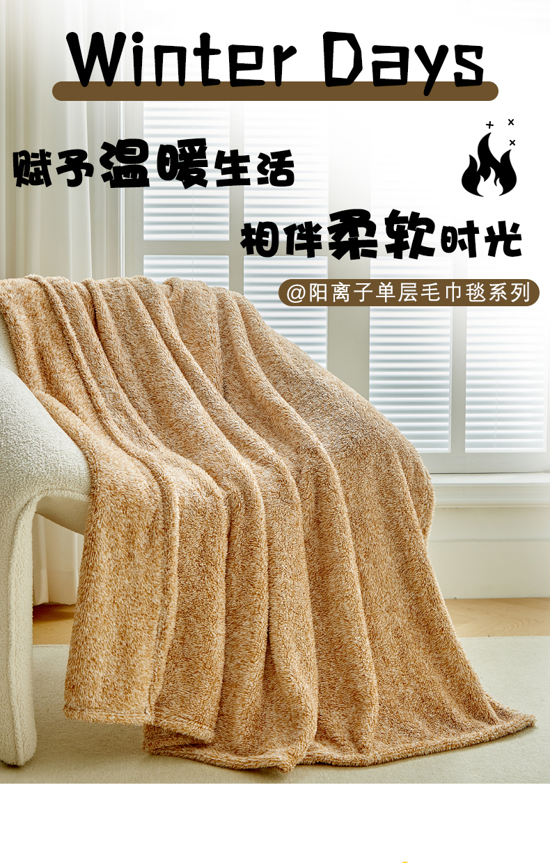 商品名称:缘生活 2025新款阳离子毛巾毯四季通用百搭款毛毯毯子 阳离子毛巾毯棕色