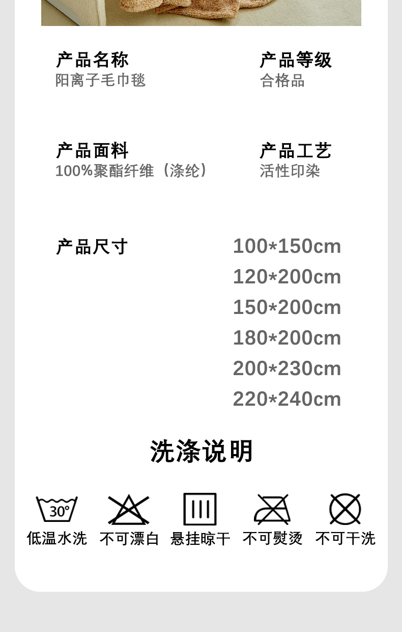 [{"sp_id":11,"sp_name":"\u989c\u8272\u5206\u7c7b","sp_format":2,"sp_list":[{"sp_value_id":1657,"sp_value_name":"\u9633\u79bb\u5b50\u6bdb\u5dfe\u6bef\u68d5\u8272","sp_value_image":{"id":999,"path":"https:\/\/img3.91jf.com\/ghelp\/2025\/20250826\/20250826090552_477282.jpg"},"sp_value_video":{"id":1434350,"img":"https:\/\/img3.91jf.com\/ghelp\/2025\/20250826\/20250826090651_141265.png","path":"https:\/\/img3.91jf.com\/ghelp\/2025\/20250826\/20250826090624_694017.mov","time":19,"download_num":0,"play_num":0},"price":"29.00","storage":3000,"weight":"0.400","is_check_weight":0,"plus_price":"","sp_sort":0}]},{"sp_id":12,"sp_name":"\u5c3a\u5bf8","sp_format":1,"sp_list":[{"sp_value_id":75,"sp_value_name":"100x150cm","sp_value_image":{"id":0,"path":""},"sp_value_video":{"id":0,"img":"","path":"","time":0,"download_num":0,"play_num":0},"price":"29.00","storage":500,"weight":"0.400","is_check_weight":0,"plus_price":"","sp_sort":5},{"sp_value_id":76,"sp_value_name":"120x200cm","sp_value_image":{"id":0,"path":""},"sp_value_video":{"id":0,"img":"","path":"","time":0,"download_num":0,"play_num":0},"price":"35.00","storage":500,"weight":"0.600","is_check_weight":0,"plus_price":"","sp_sort":6},{"sp_value_id":77,"sp_value_name":"150x200cm","sp_value_image":{"id":0,"path":""},"sp_value_video":{"id":0,"img":"","path":"","time":0,"download_num":0,"play_num":0},"price":"38.00","storage":500,"weight":"0.800","is_check_weight":0,"plus_price":"","sp_sort":7},{"sp_value_id":78,"sp_value_name":"180x200cm","sp_value_image":{"id":0,"path":""},"sp_value_video":{"id":0,"img":"","path":"","time":0,"download_num":0,"play_num":0},"price":"42.00","storage":500,"weight":"1.000","is_check_weight":0,"plus_price":"","sp_sort":8},{"sp_value_id":767,"sp_value_name":"200x230cm","sp_value_image":{"id":0,"path":""},"sp_value_video":{"id":0,"img":"","path":"","time":0,"download_num":0,"play_num":0},"price":"45.00","storage":500,"weight":"1.300","is_check_weight":0,"plus_price":"","sp_sort":9},{"sp_value_id":768,"sp_value_name":"220x240cm","sp_value_image":{"id":0,"path":""},"sp_value_video":{"id":0,"img":"","path":"","time":0,"download_num":0,"play_num":0},"price":"49.00","storage":500,"weight":"1.400","is_check_weight":0,"plus_price":"","sp_sort":10}]}]