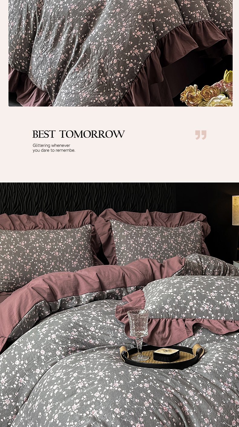 豫见家纺 2025新款云感棉花边四件套 花盏灰