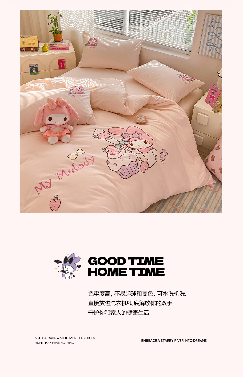 (总)蓝邻家纺 2024新款三丽鸥正版授权学生宿舍全棉印花四件套,甜甜库洛米,粉格美乐蒂,米酷粉,米酷紫,妙可乐园,牛奶大耳狗,玉桂狗