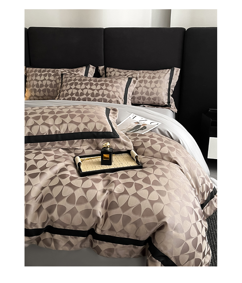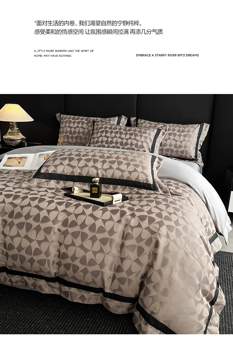 (总)博纳家纺 2025新款镂空大宽边拼角高级简奢款亲肤棉四件套-山水提花,繁星蓝,粉玉,高级灰,香槟,象牙白