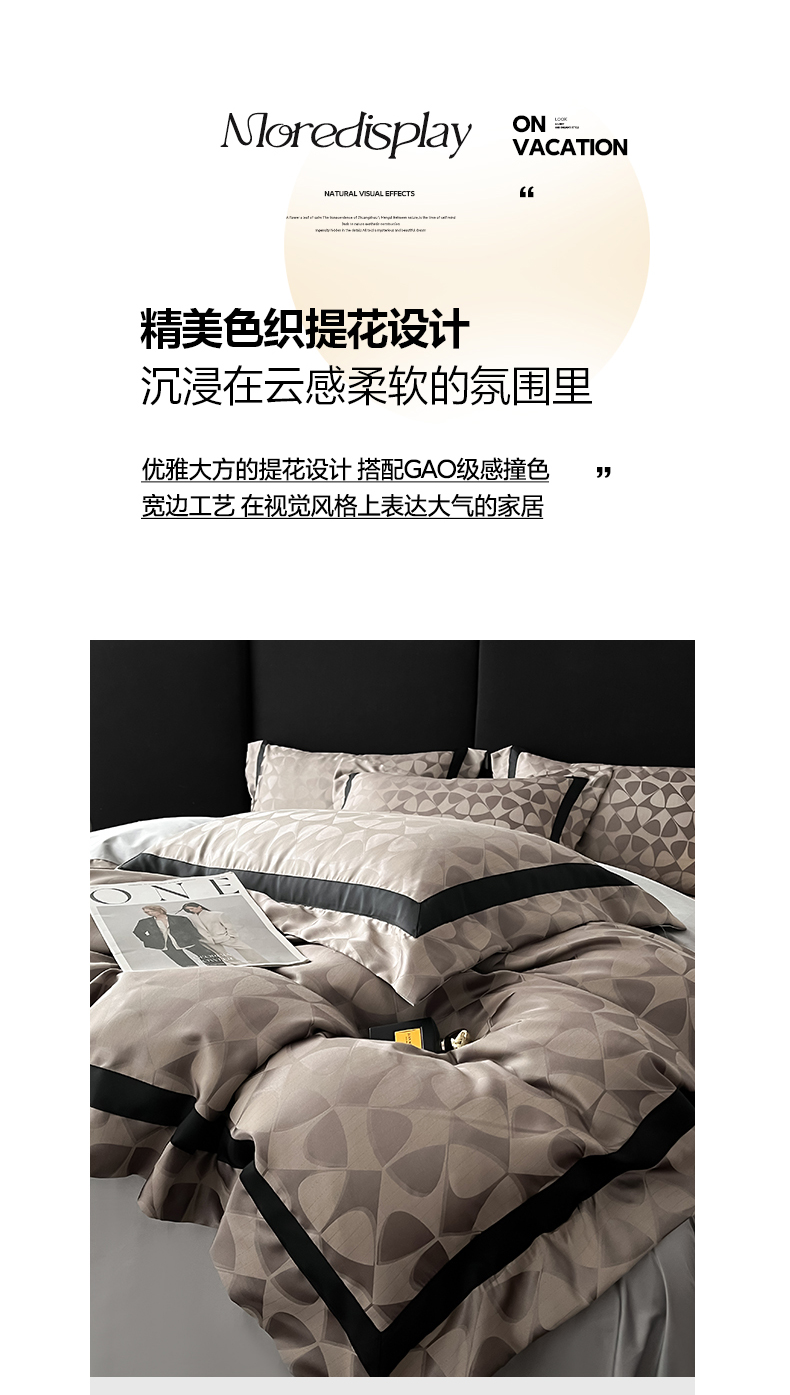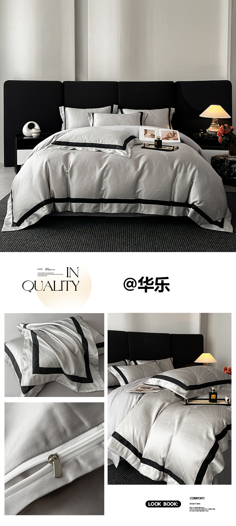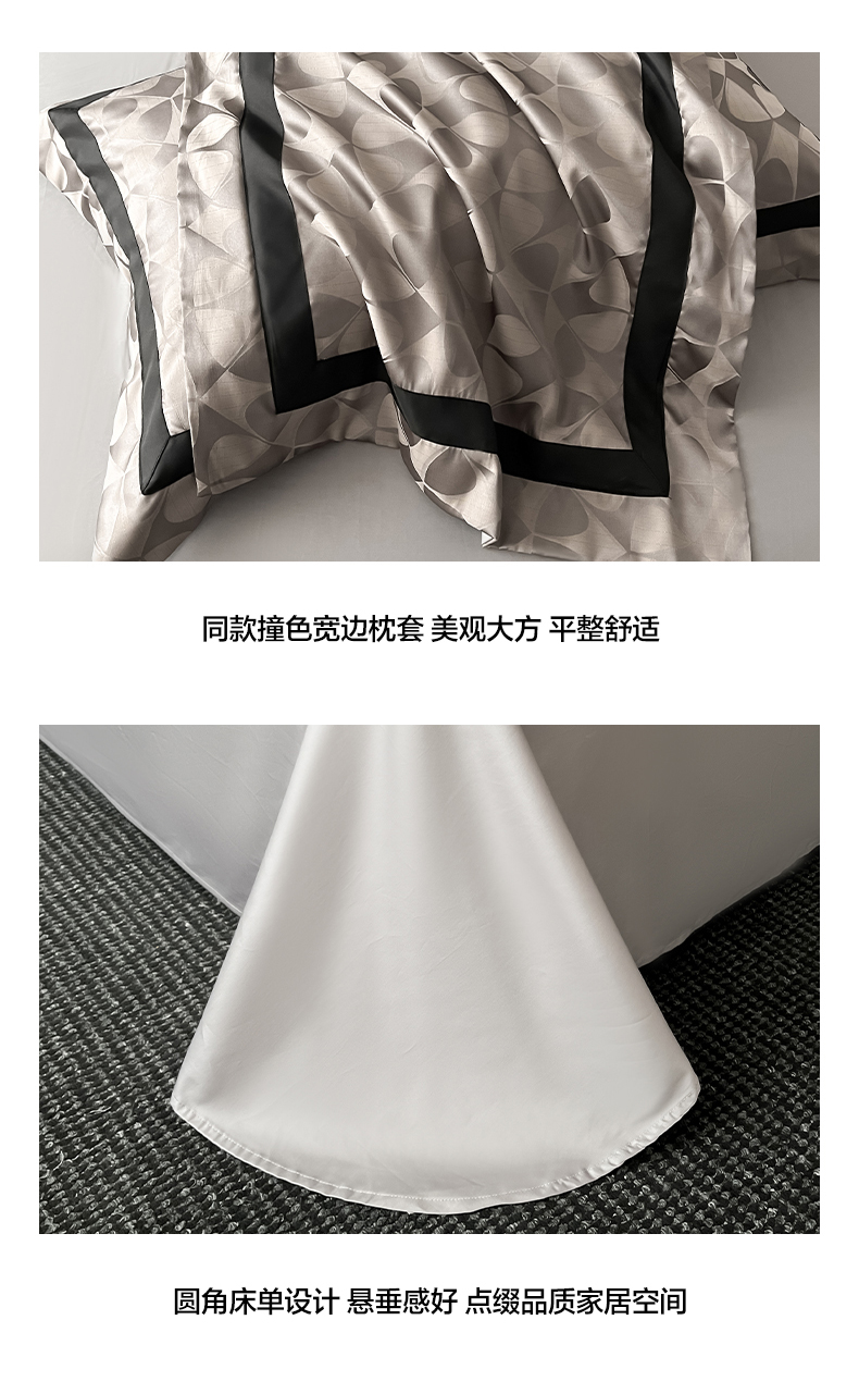 (总)博纳家纺 2025新款双色宽边高级简奢款四件套-维多利亚,高级灰,咖色,香槟,象牙白