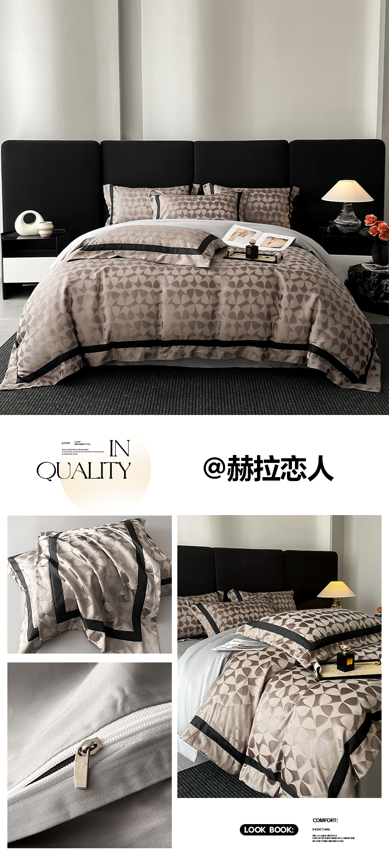 (总)博纳家纺 2025新款高精密银离子色织提花纯棉撞色宽边四件套,赫拉恋人,华乐,丽斐,尼罗