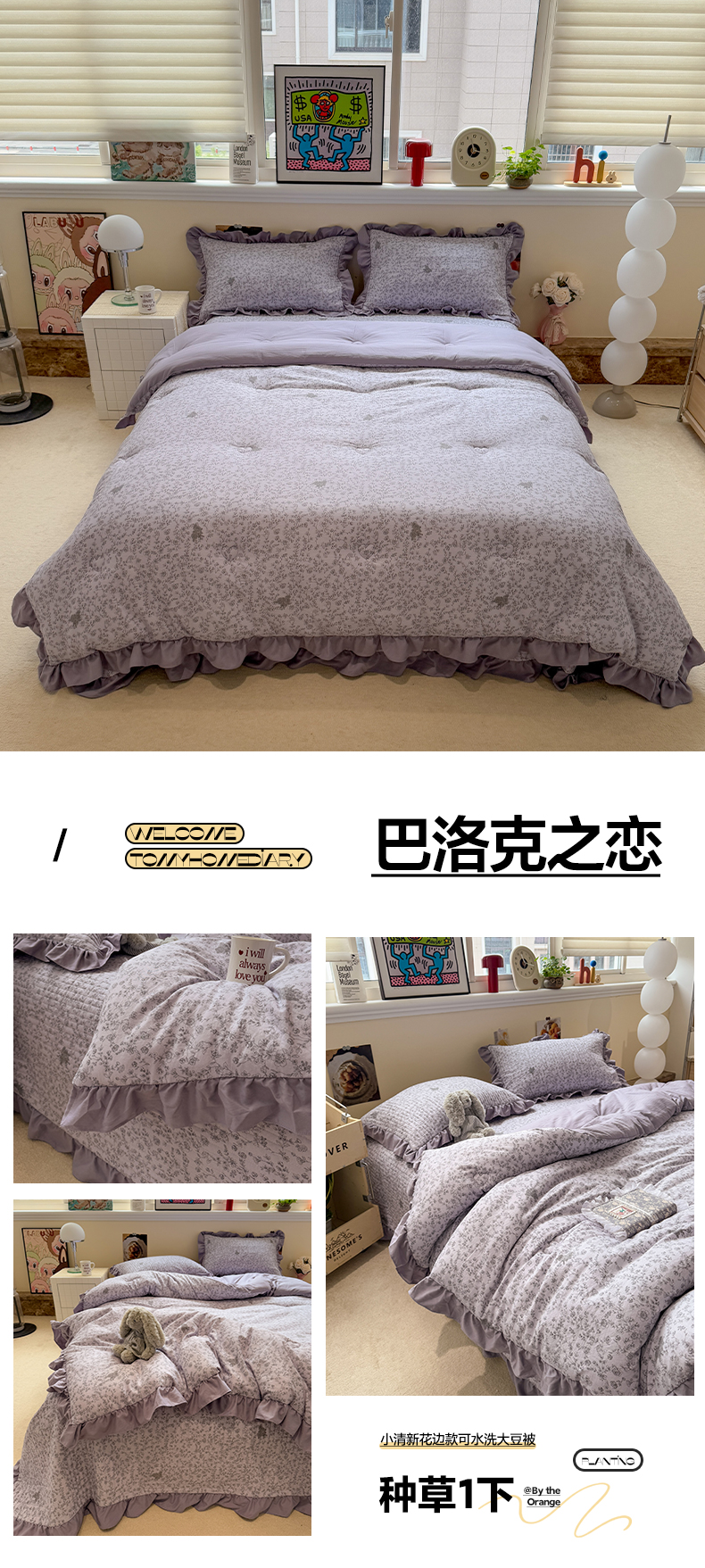 • 91家纺网 家纺一手货源 找家纺 一加一 2025新款小清新花边款可水洗大豆被子被芯 巴洛克之恋
