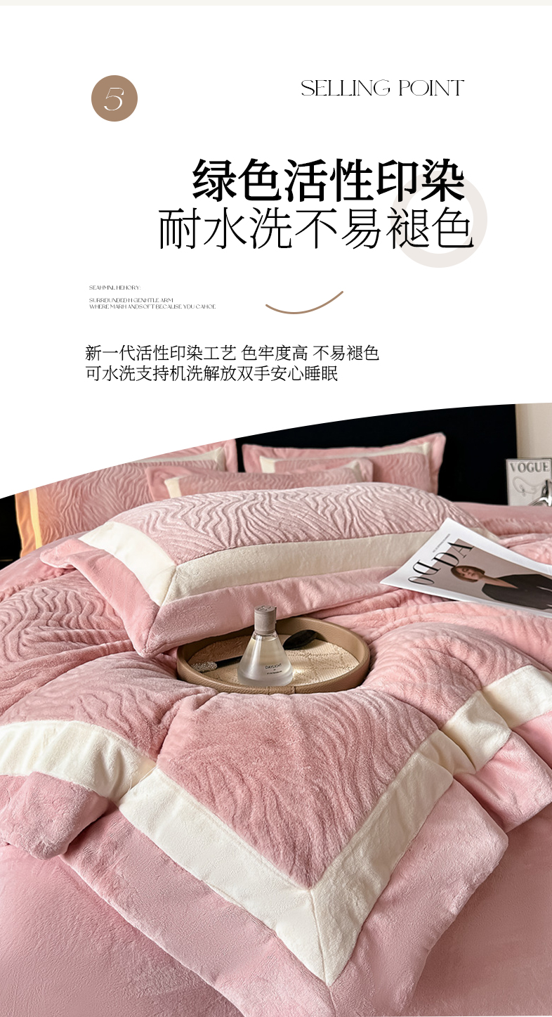 (总)锦铭源家纺 2025新款雪貂绒烂花75D全消光超柔樱花绒双拼角四件套牛奶绒四件套【有买家秀】,轻奢-粉,轻奢-奶白,轻奢-浅绿,轻奢-雅灰