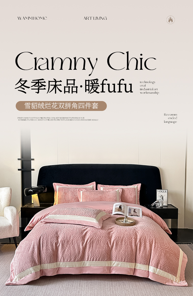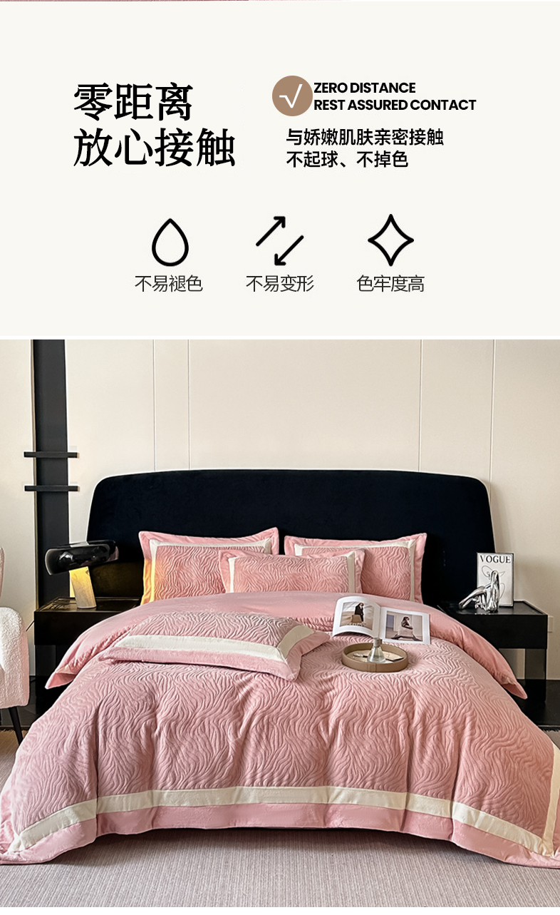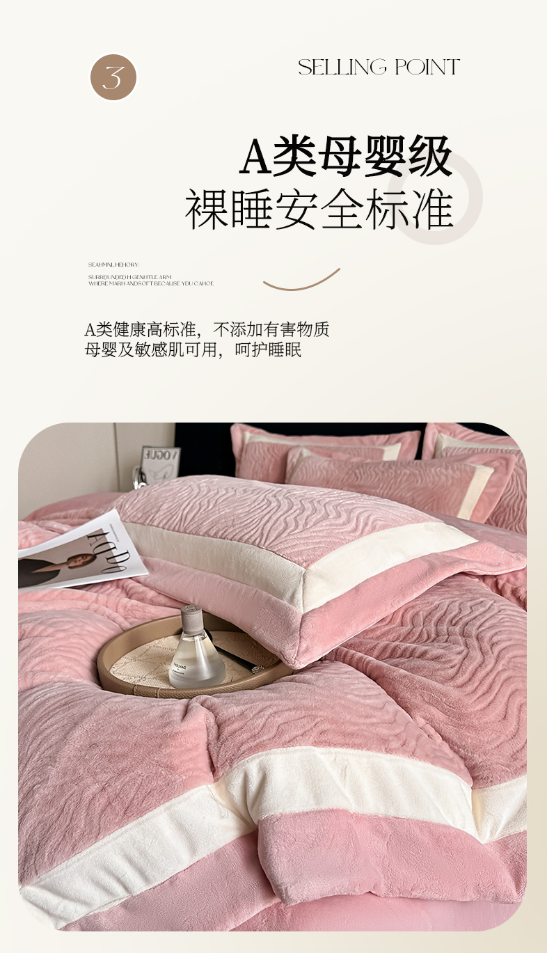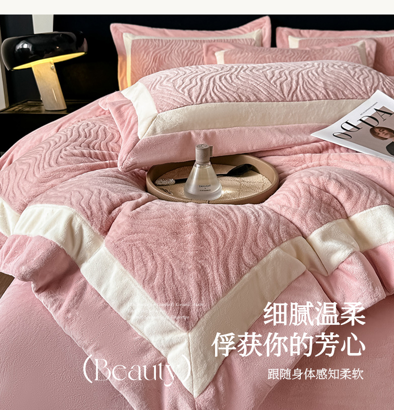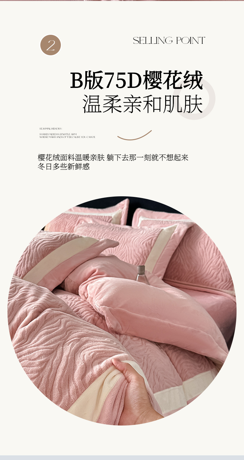 锦铭源家纺 2025新款雪貂绒烂花75D全消光超柔樱花绒双拼角四件套牛奶绒四件套【有买家秀】 轻奢-粉