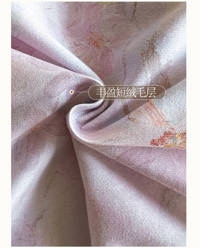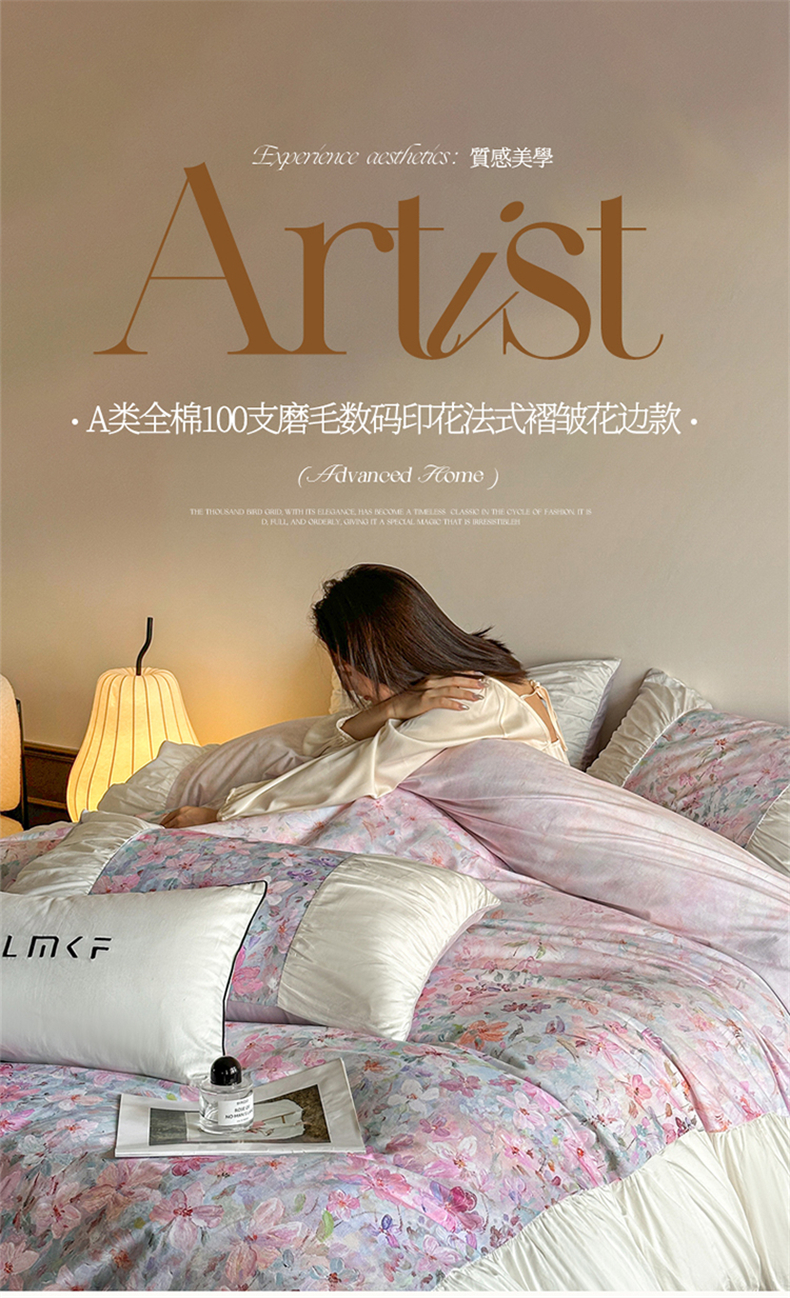 蓝米卡夫 2025秋冬-A类全棉50S*50S双股磨毛数码印花法式褶皱花边款(礼盒包装)-拍摄风格2 笔触与诗-粉