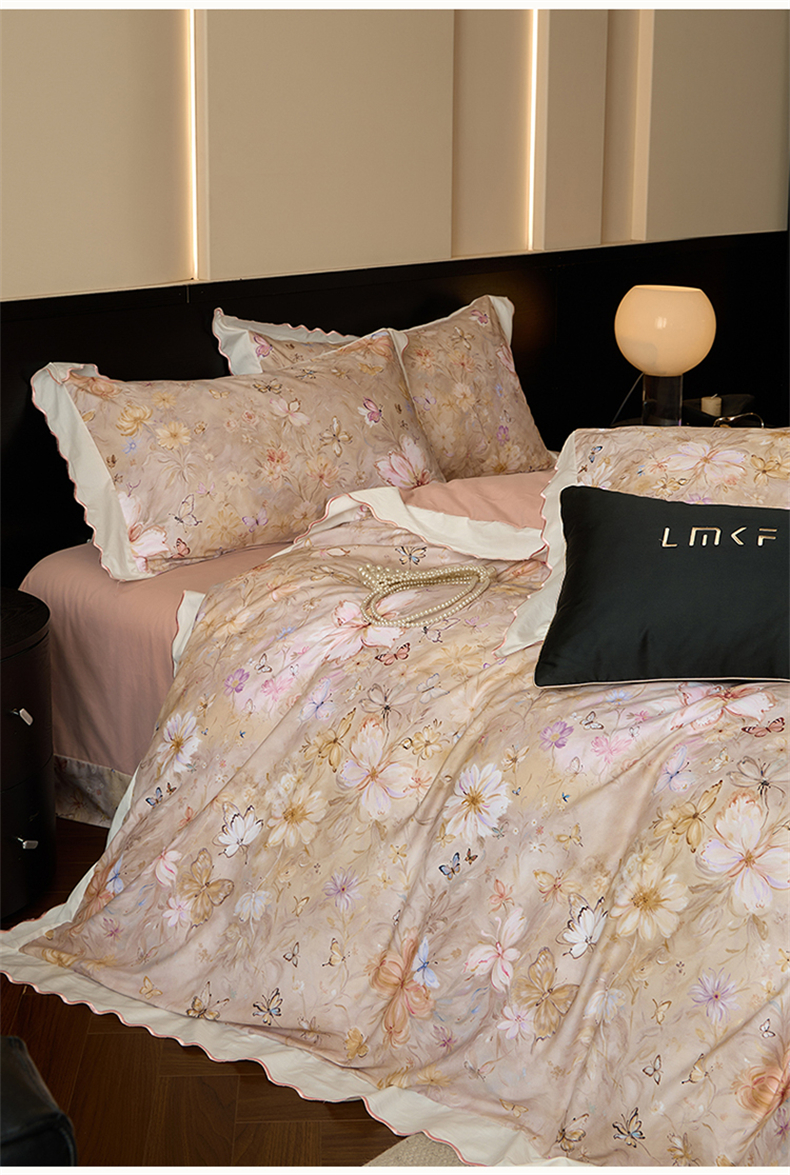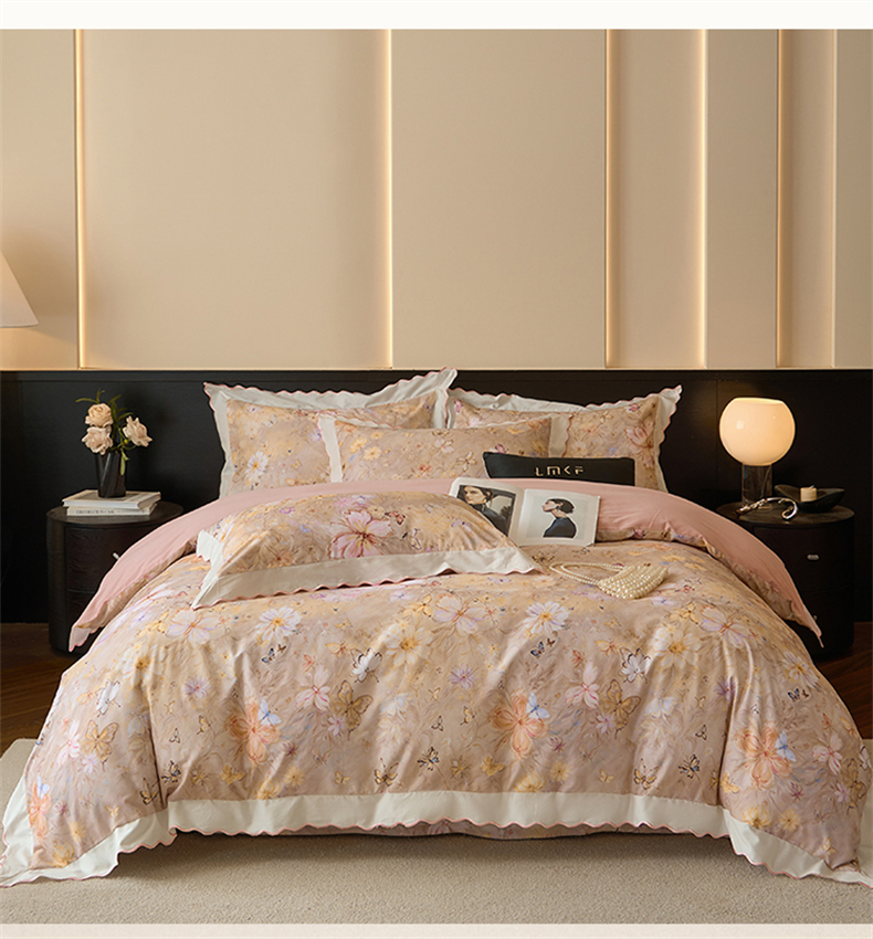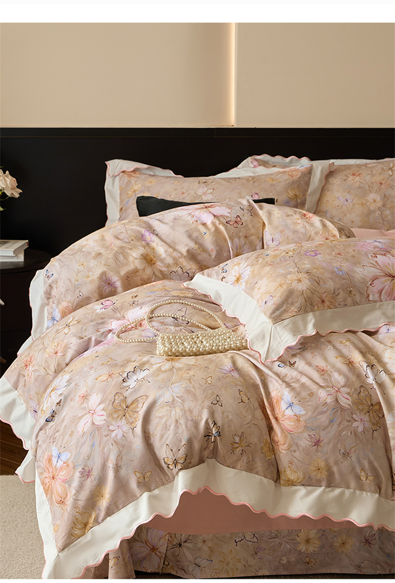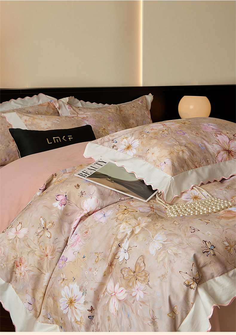 (总)蓝米卡夫 2026春季新款-60S长绒棉贡缎蝴蝶刺绣花边系列四件套-福蝶吉祥(礼盒)-拍摄风格2,福蝶吉祥-大地色,福蝶吉祥-海洋蓝,福蝶吉祥-优雅粉