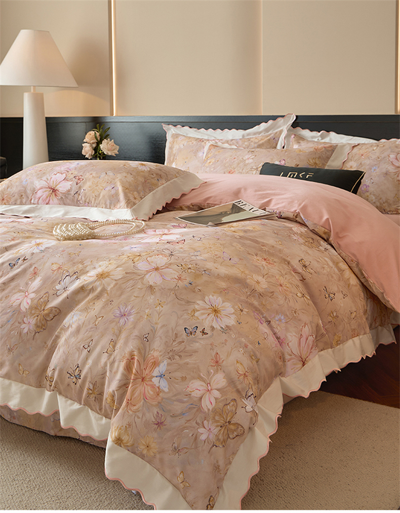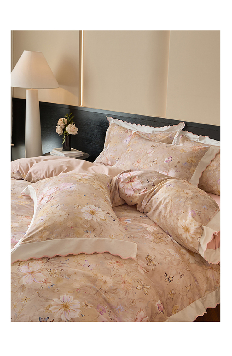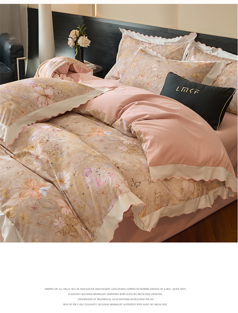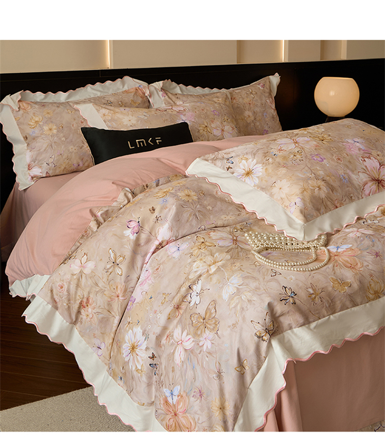 (总)蓝米卡夫 2026春季新款-60S长绒棉贡缎蝴蝶刺绣花边系列四件套-福蝶吉祥(礼盒)-拍摄风格2,福蝶吉祥-大地色,福蝶吉祥-海洋蓝,福蝶吉祥-优雅粉