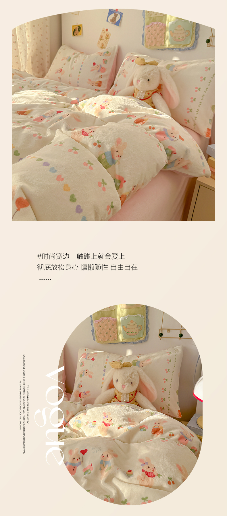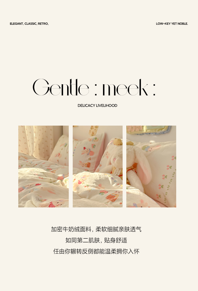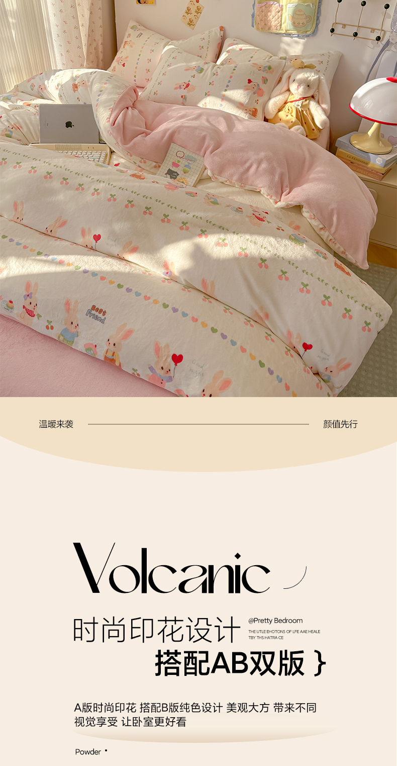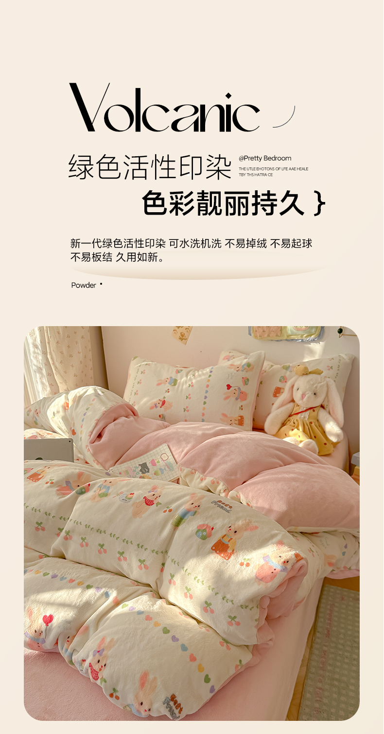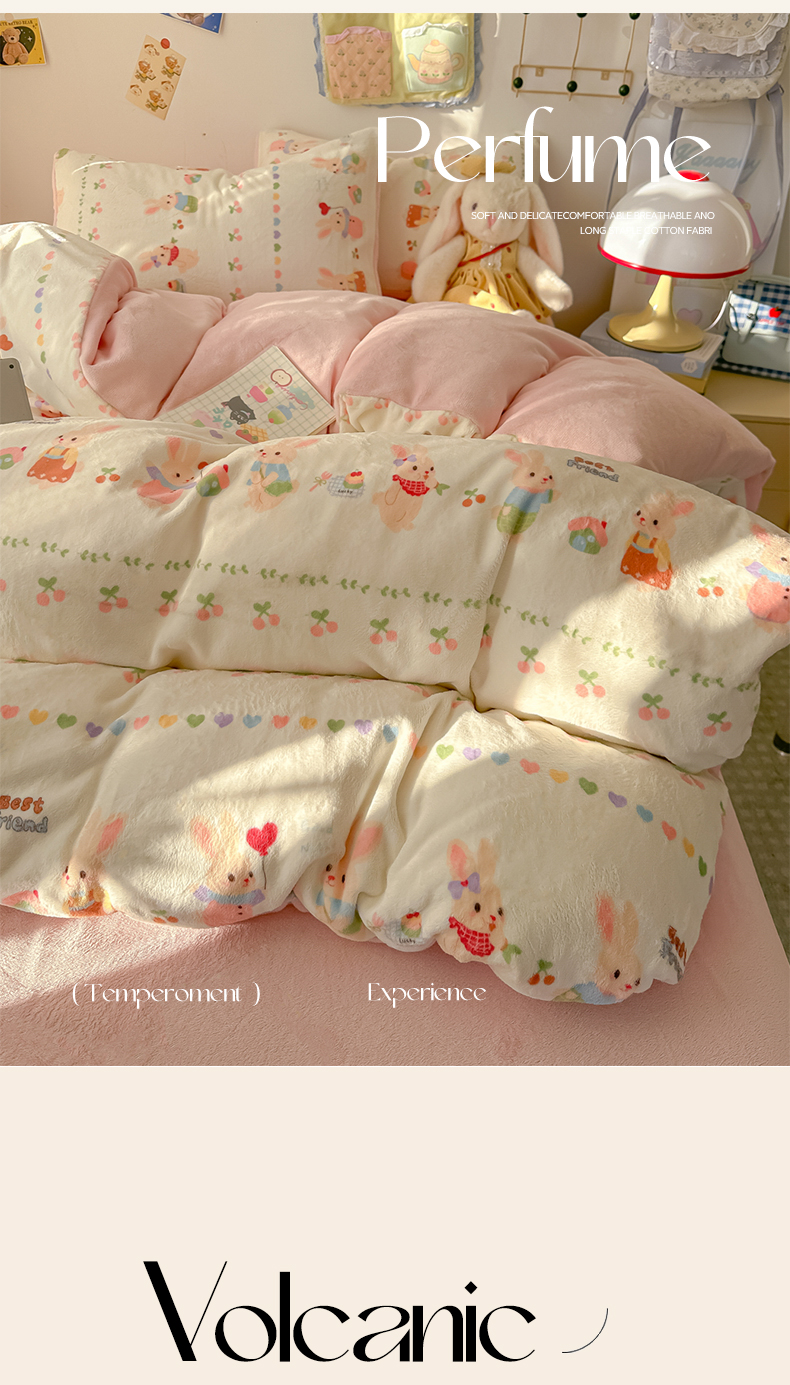 当前位置: 91家纺网 > 商品网购 > 床品套件 > 四件套 > 牛奶绒四件套 > 韩巢家纺 2025新款高克重牛奶绒四件套冬季绒床品被套床单三件套 小兔派对